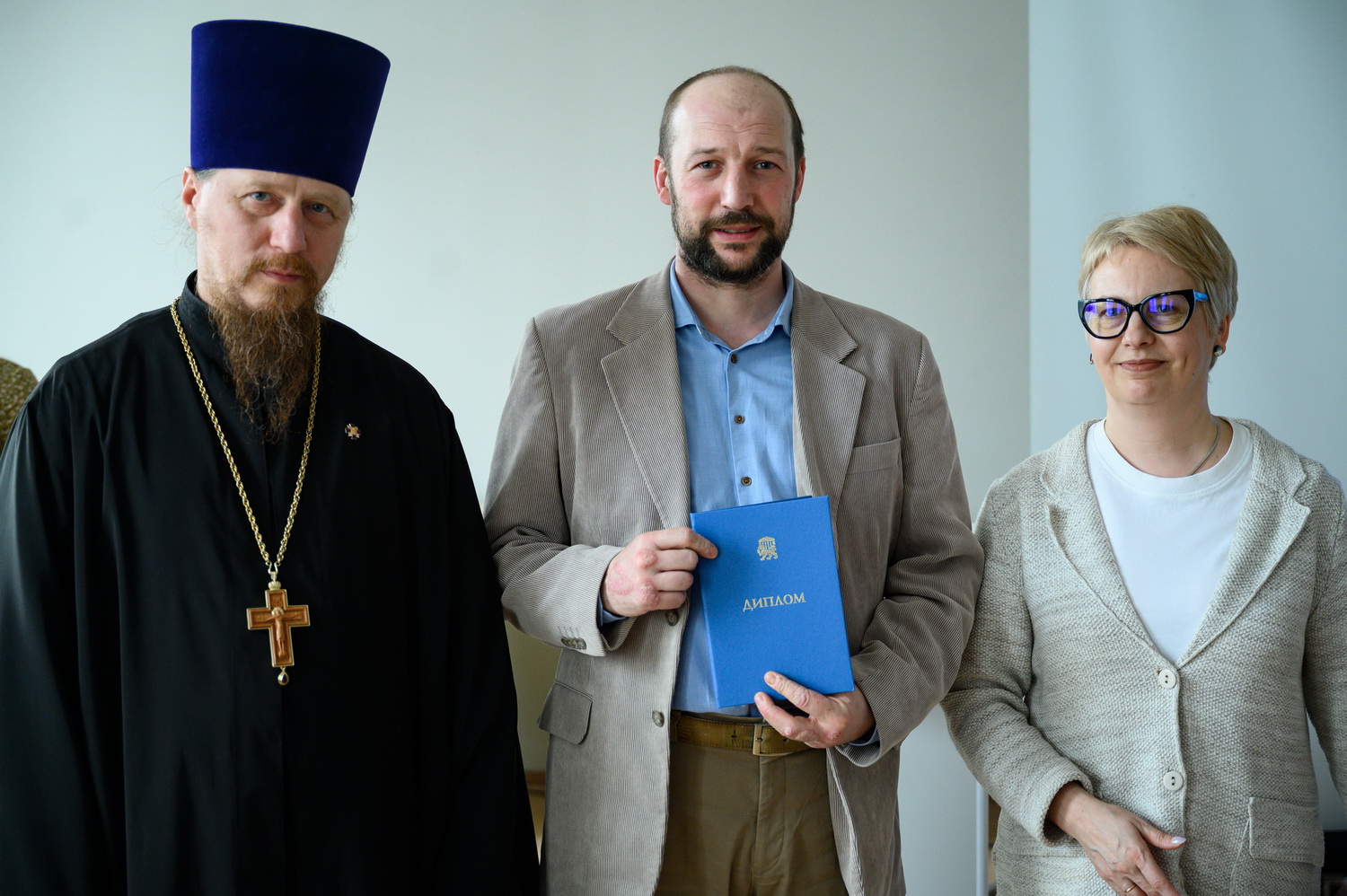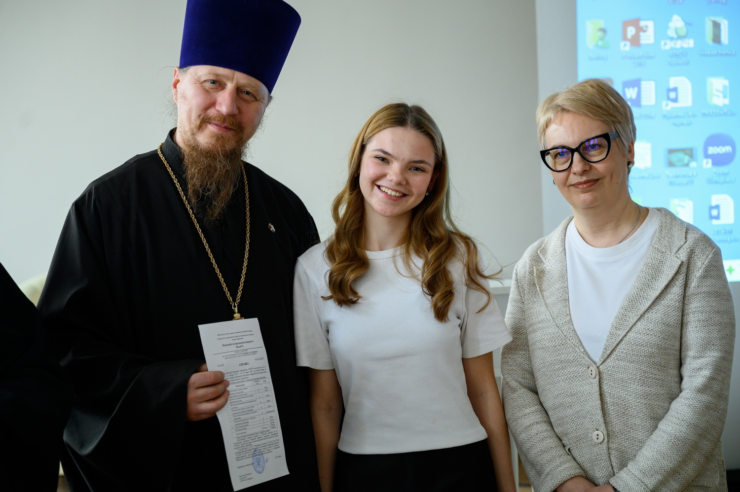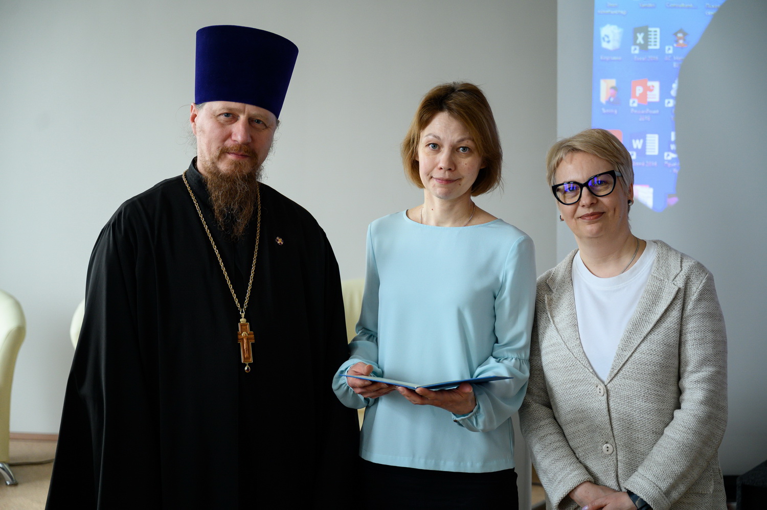 Семинар начался с приветственных слов к выпускникам третьего потока программы профессиональной переподготовки «Педагог духовно-нравственных дисциплин». Затем дипломы выпускникам вручили: директор Института гуманитарных наук и языковых коммуникаций Наталья Молчанова, руководитель Отдела религиозного образования и катехизации Псковской епархии протоиерей Роман Ледин и руководитель образовательной программы «Педагог духовно-нравственных дисциплин » Марина Манойлова.
