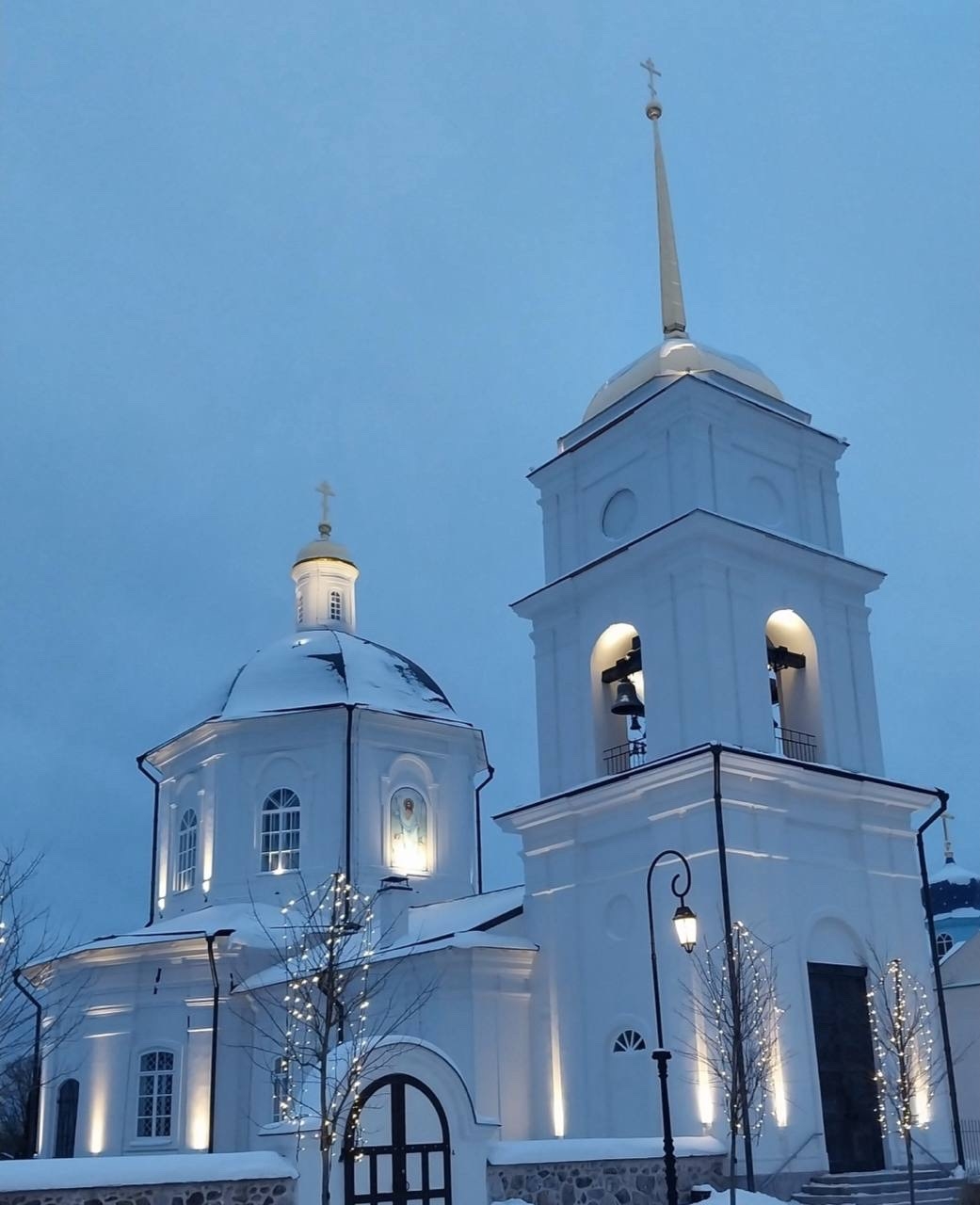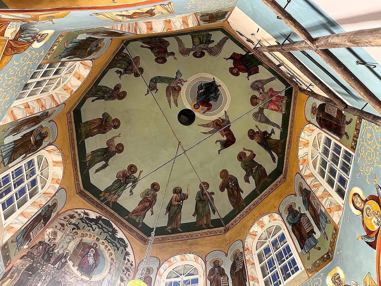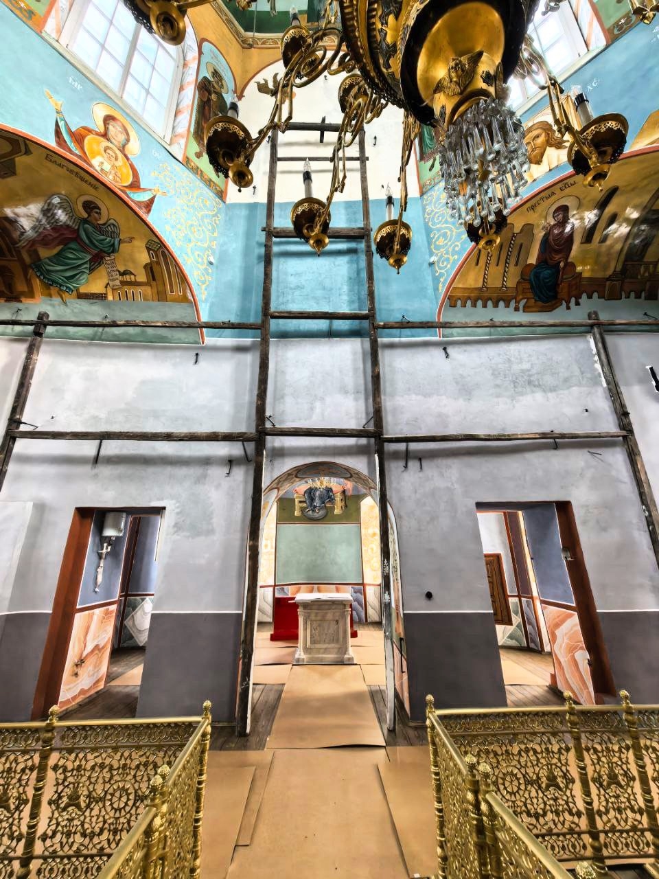 В настоящий момент смонтирована несущая конструкция. Следующим этапом станет монтаж отреставрированных резных элементов иконостаса. Покрытые сусальным золотом детали будут крепиться на горизонтальных брусьях — тяблах, которые образуют каркас. Сами тябла относятся ко времени строительства храма в 1817 году — реставраторы заменили некоторые из элементов и пропитали их антисептиком.