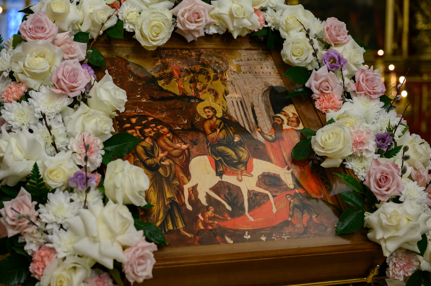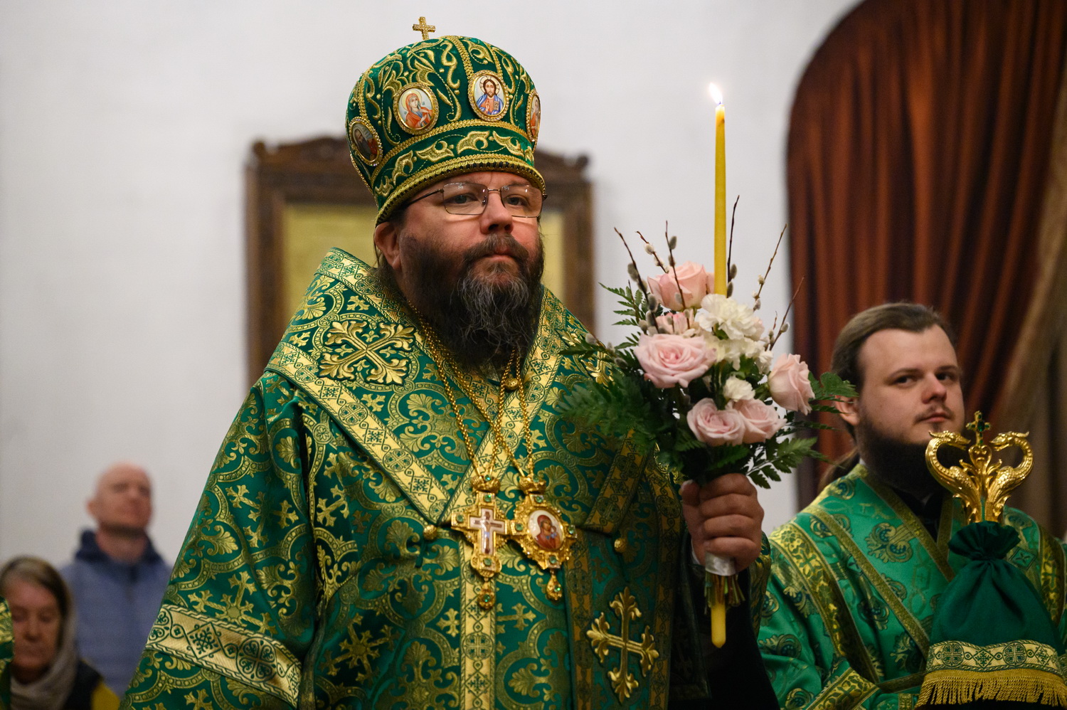 4 апреля 2026 года, в канун Недели 6-й, ваий, праздника Входа Господня в Иерусалим, митрополит Псковский и Порховский Матфей возглавил всенощное бдение в Свято-Троицком кафедральном соборе города Пскова.