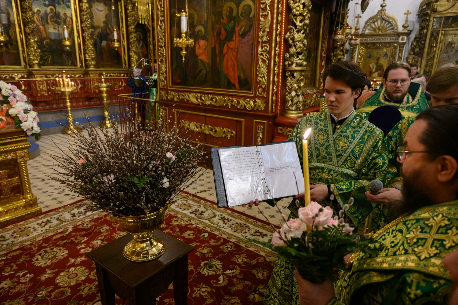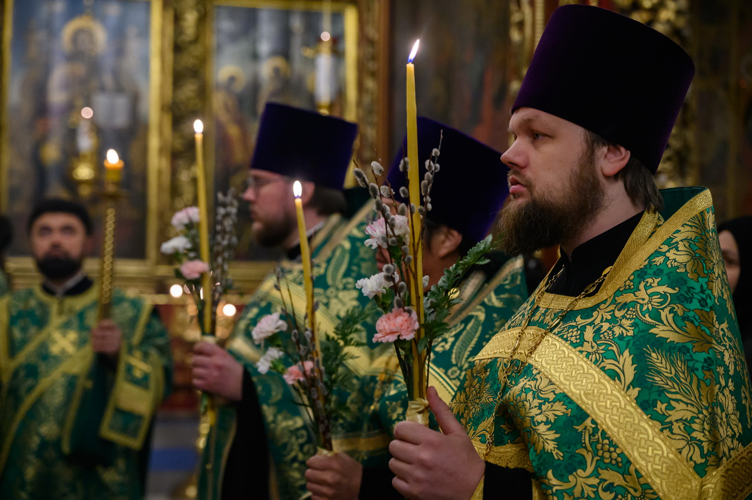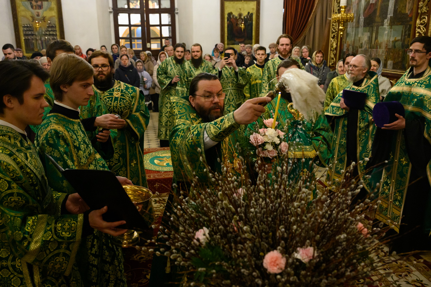После чтения Евангелия Владыка митрополит совершил традиционное освящение вербных ветвей (ваий).