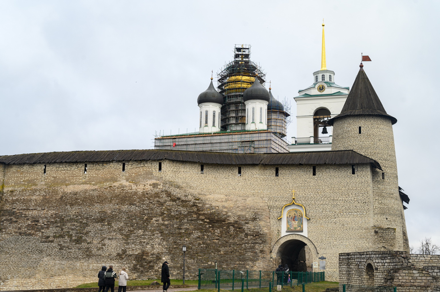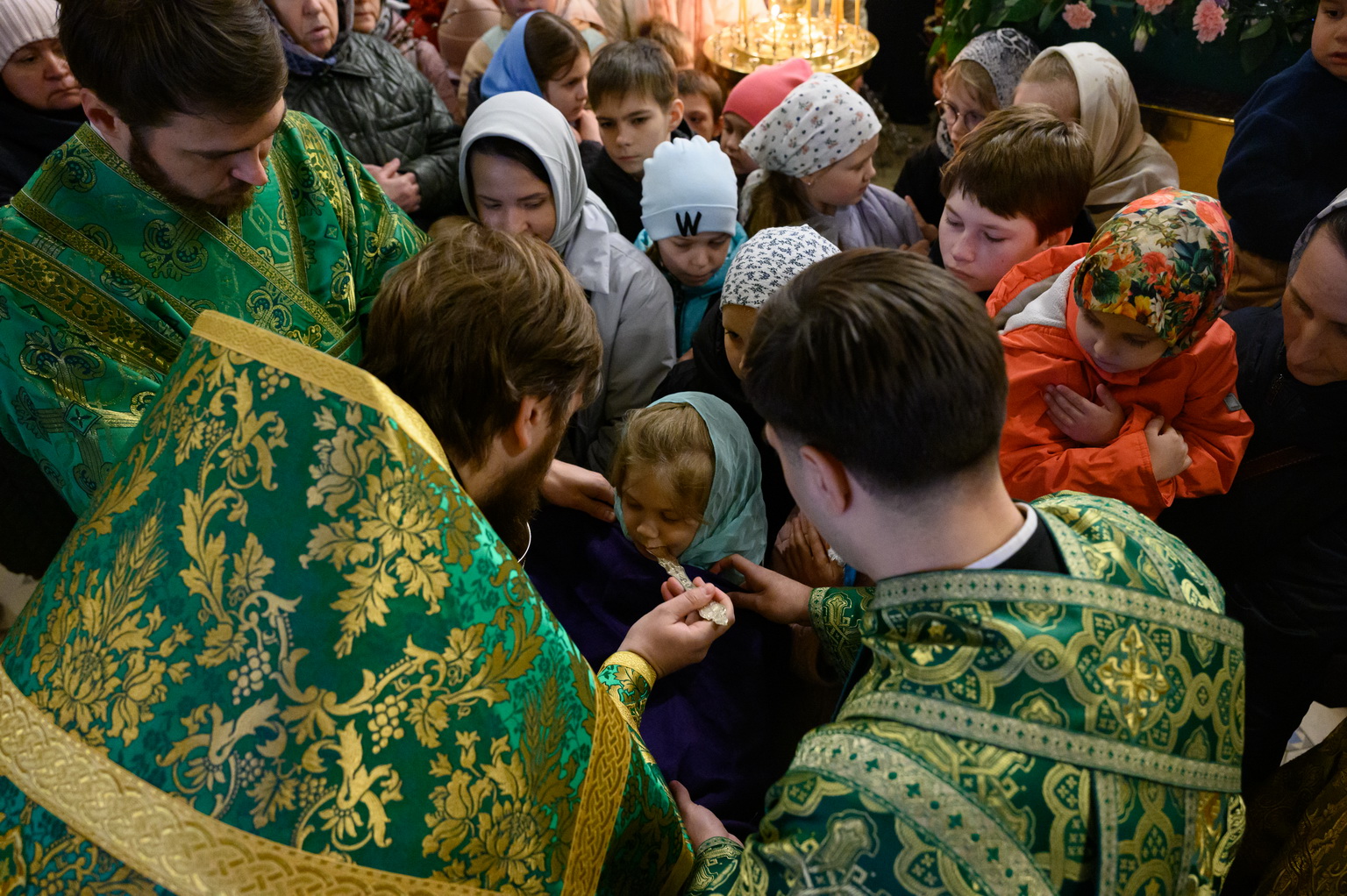Песнопения Литургии исполнил Архиерейский хор под управлением Марии Быковой. За богослужением молились прихожане собора и православные псковичи.
