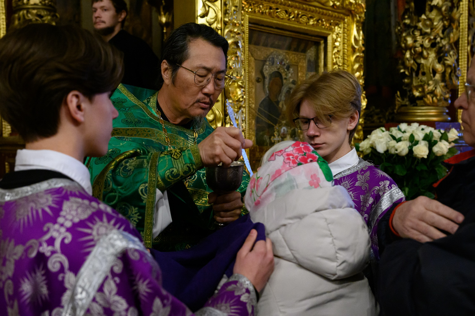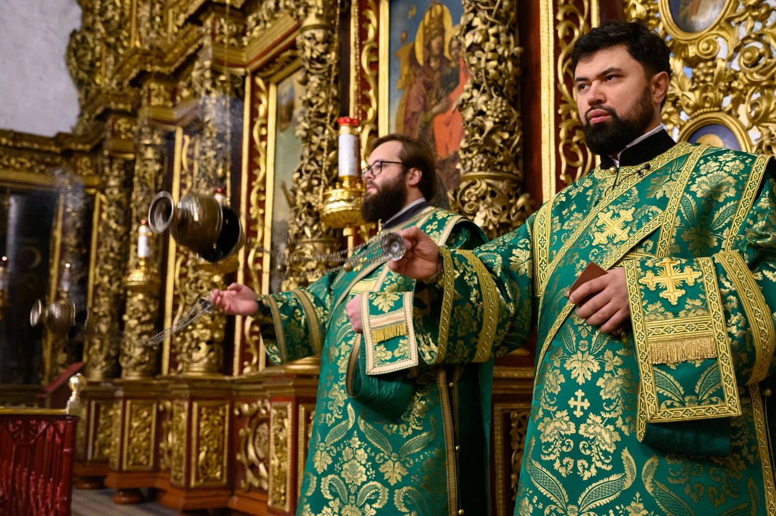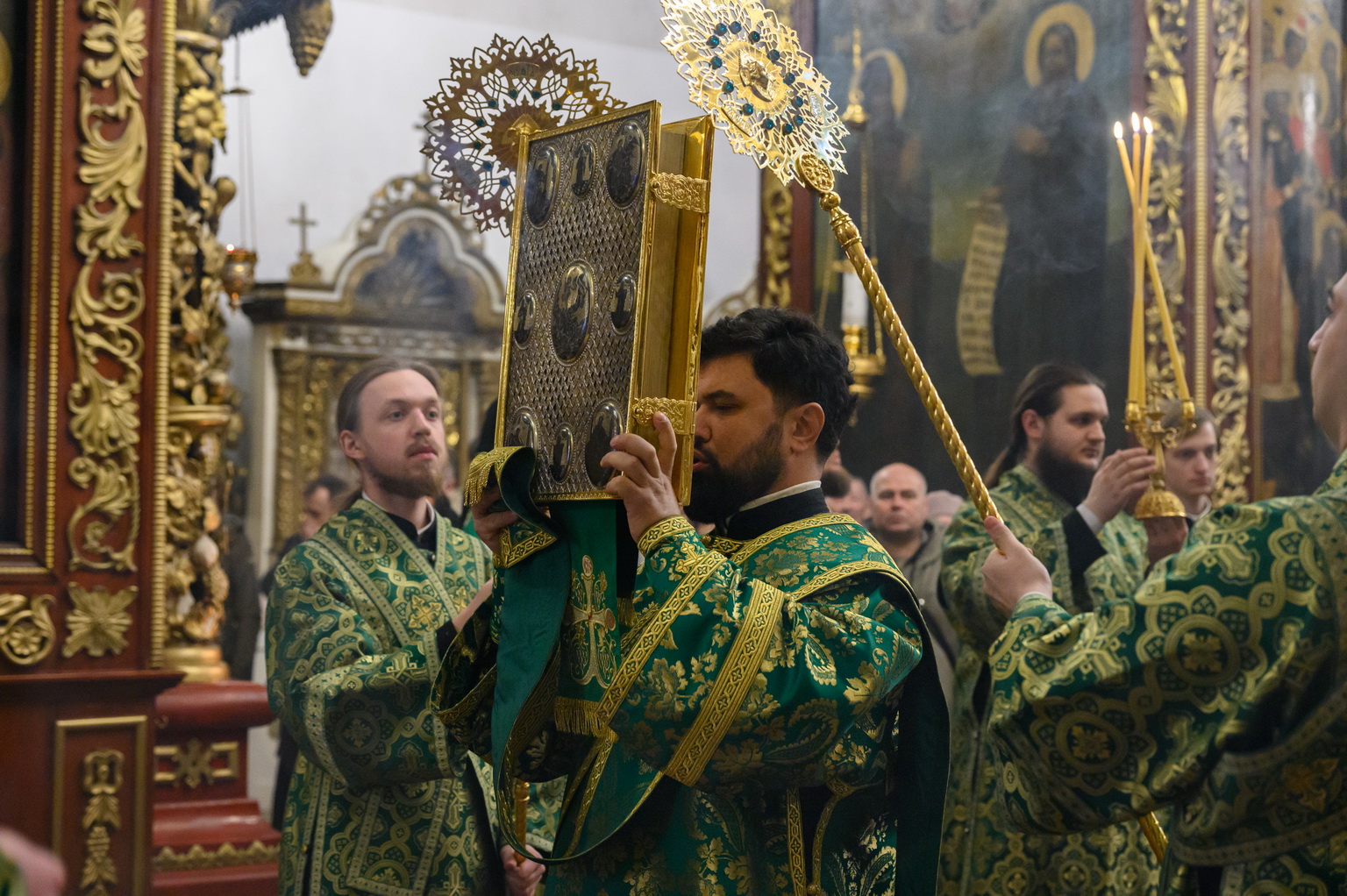 Его Высокопреосвященству сослужили: настоятель Свято-Троицкого собора иерей Александр Короплясов с соборным духовенством, клирик храма в честь иконы Божией Матери «Спорительница хлебов» Патриаршего подворья в станице Приазовской Краснодарского края иерей Роман Хан, насельники Свято-Успенского Псково-Печерского монастыря иеромонах Гавриил (Асташкин) и иеромонах Никон (Горохов).