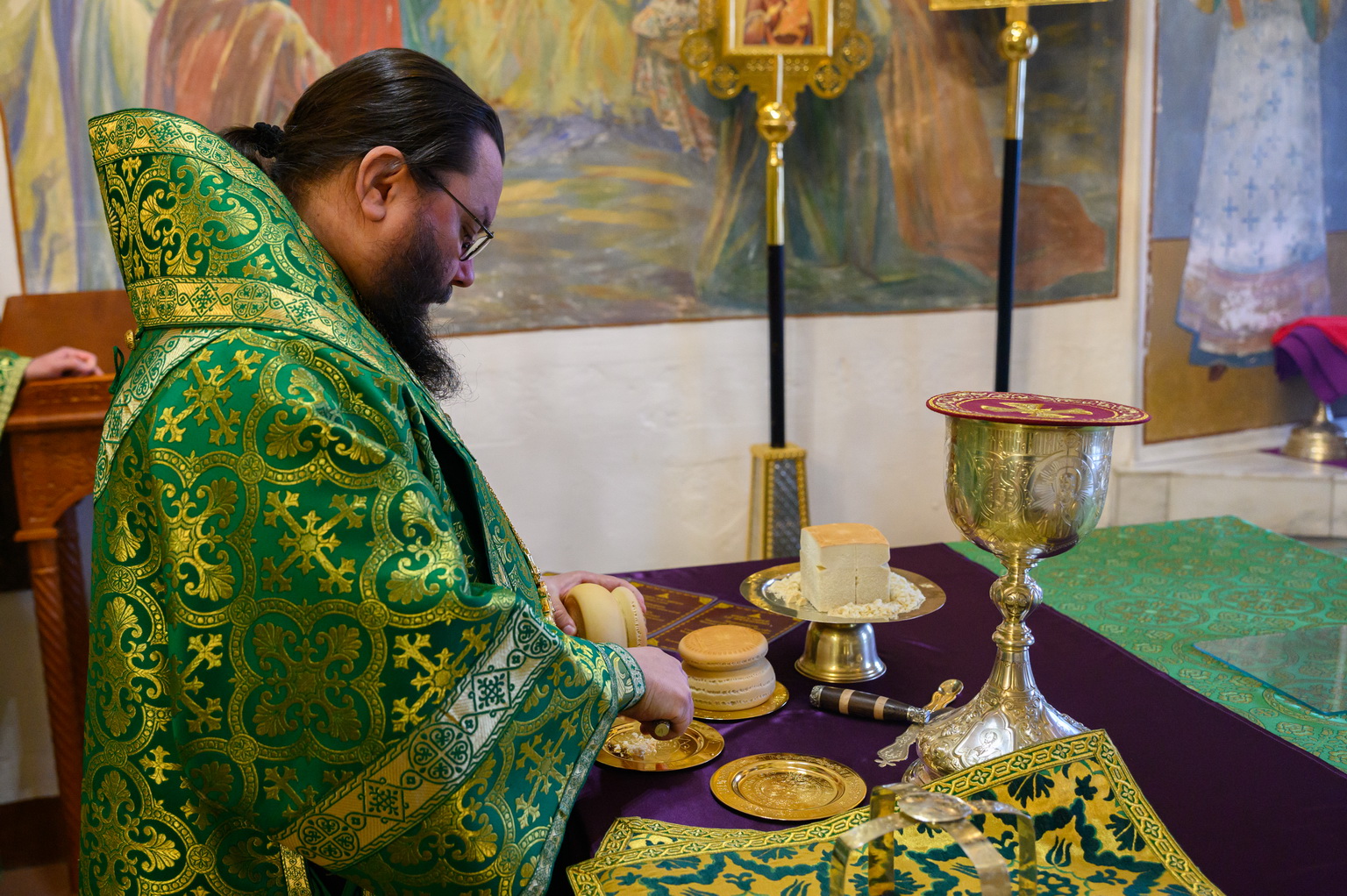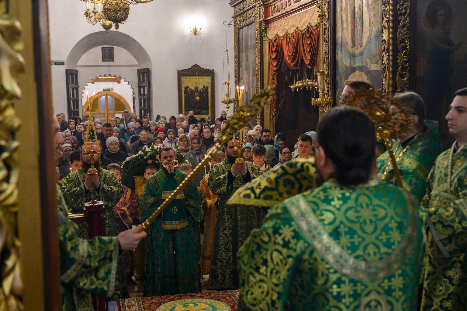 5 апреля 2026 года, в Неделю Ваий, празднование Входа Господня во Иерусалим, митрополит Псковский и Порховский Матфей совершил Божественную Литургию в Свято-Троицком кафедральном соборе города Пскова.