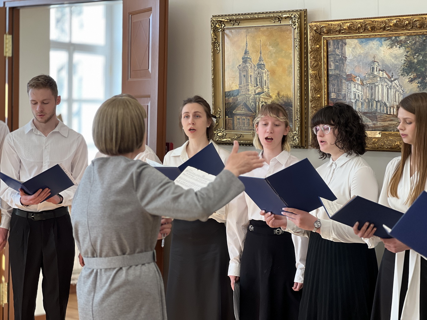Завершилось открытие выставки выступлением юных хористов храма святого благоверного великого князя Александра Невского под управлением регента Татианы Зимарской.