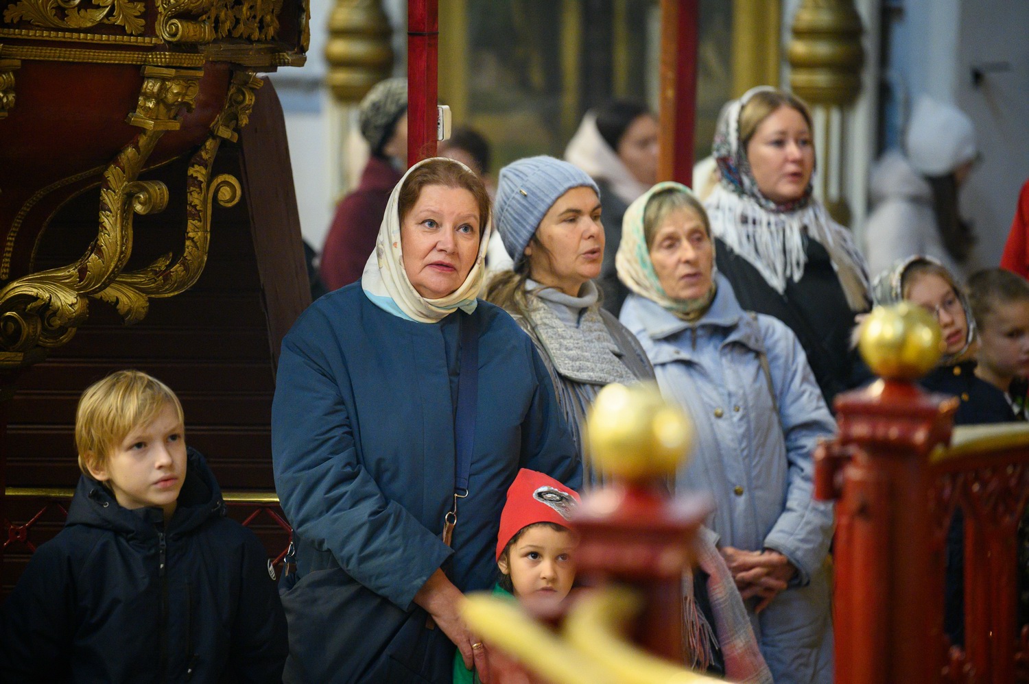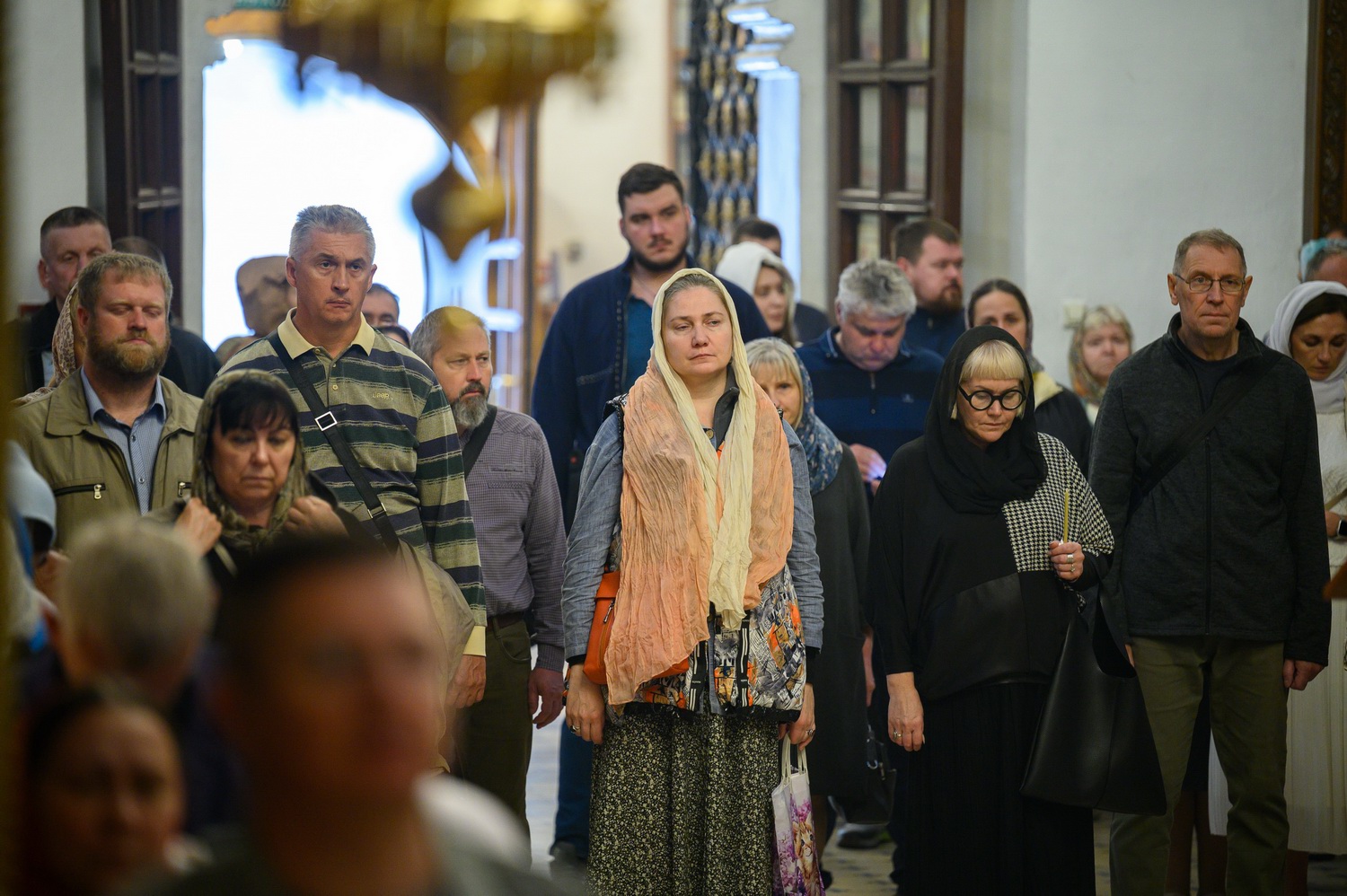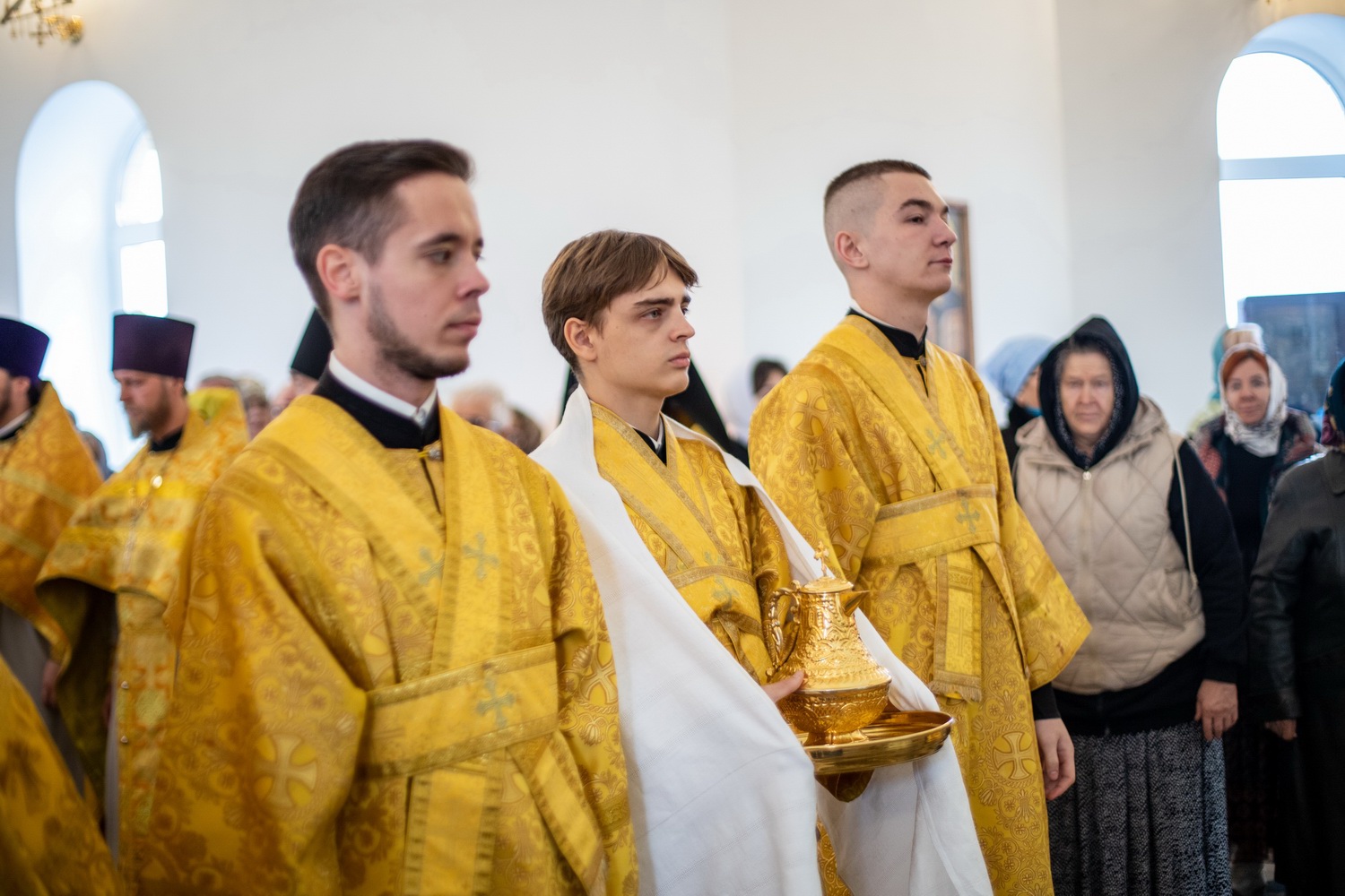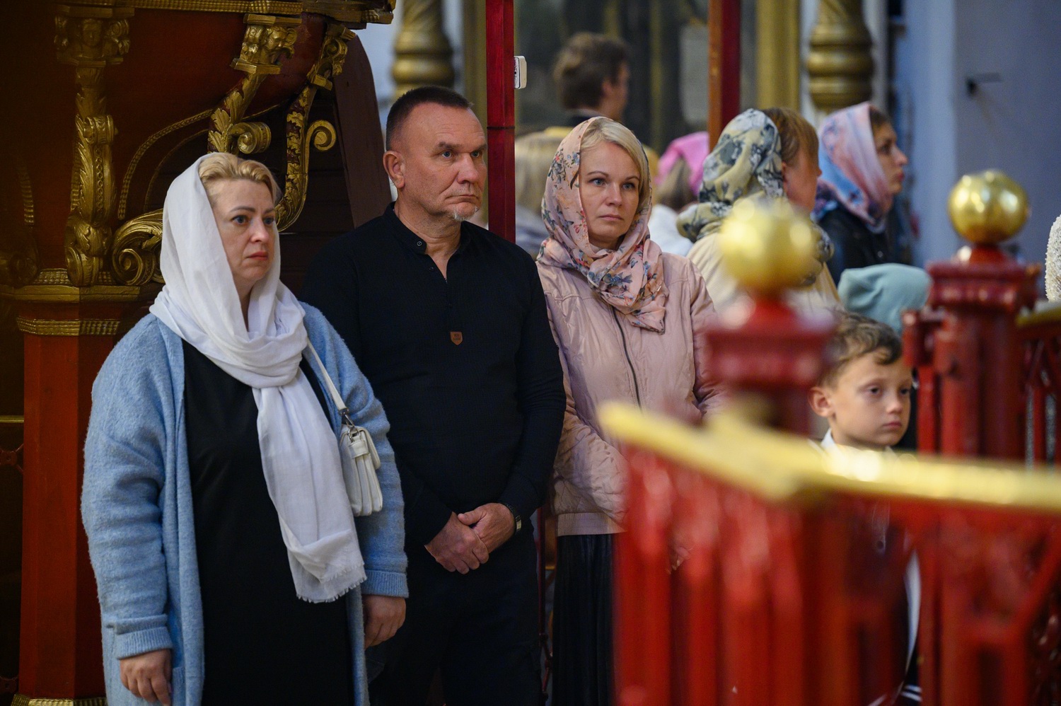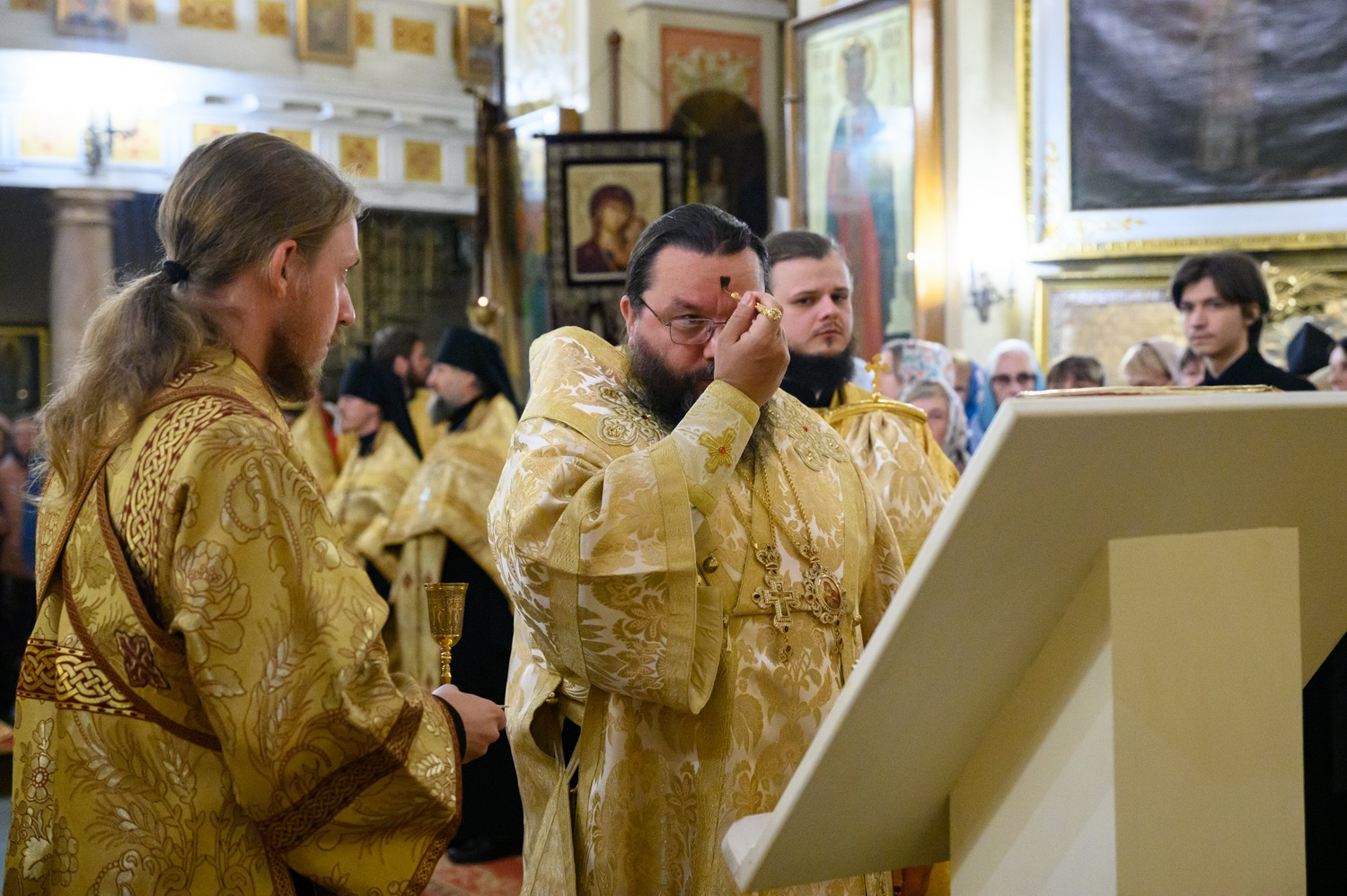 За Литургией Его Святейшеству сослужили: митрополит Воскресенский Григорий, управляющий делами Московской Патриархии, первый викарий Патриарха Московского и всея Руси по городу Москве, наместник Новоспасского ставропигиального монастыря; митрополит Владимирский и Суздальский Никандр, председатель Финансово-хозяйственного управления Московского Патриархата; митрополит Псковский и Порховский Матфей, бывший управляющий Северо-Восточным викариатством, распоряжением Святейшего Патриарха Кирилла от 2 августа 2024 года назначенный, в дополнение к несомым послушаниям, ответственным за строительство Успенского храма в Останкине; митрополит Звенигородский Арсений; епископ Раменский Алексий, личный секретарь Его Святейшества; епископ Бронницкий Иоанн, наместник Высоко-Петровского ставропигиального монастыря; протопресвитер Владимир Диваков, секретарь Патриарха Московского и всея Руси по г. Москве; протоиерей Анатолий Алефиров; протоиерей Георгий Климов; столичное духовенство.