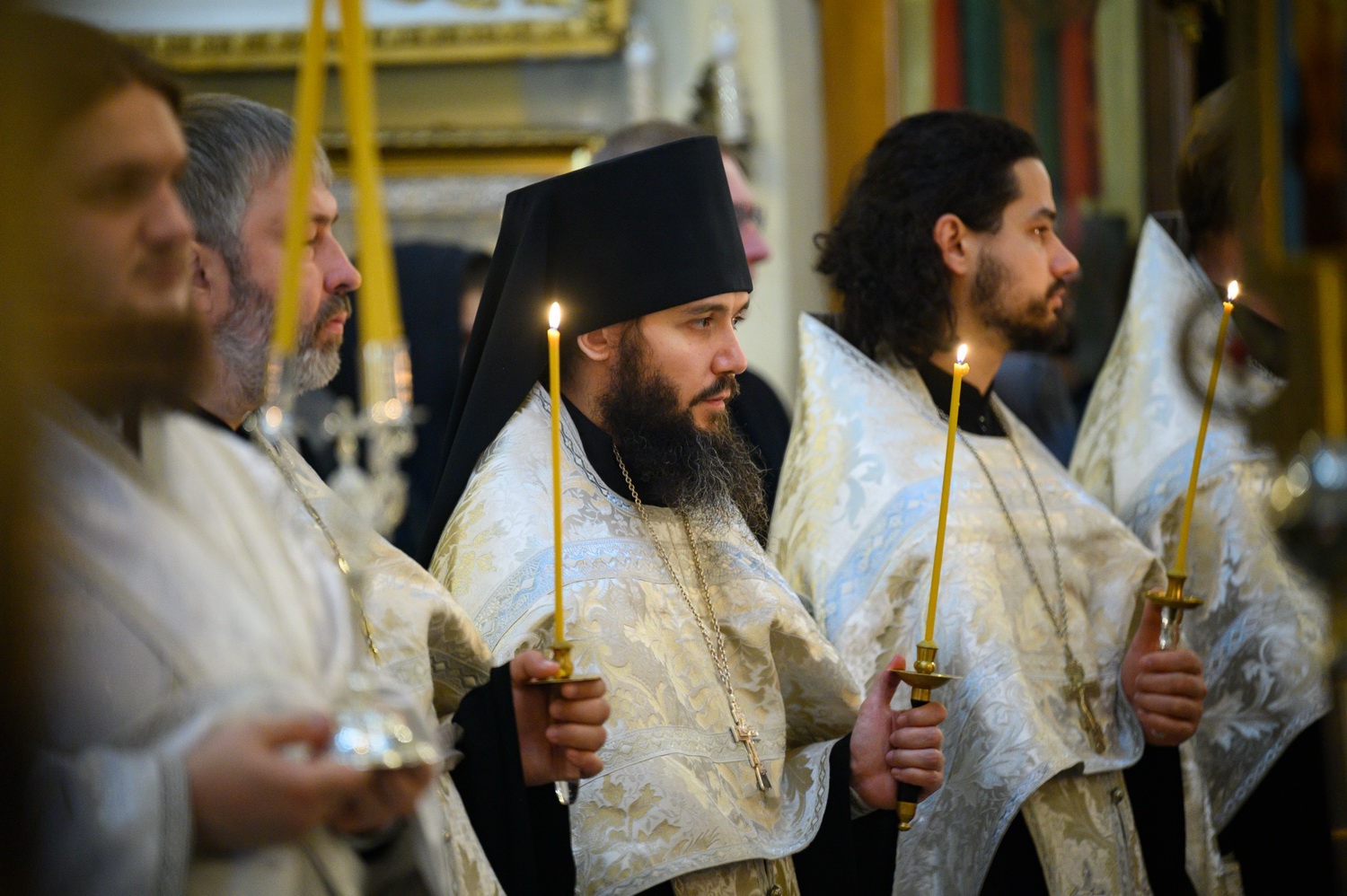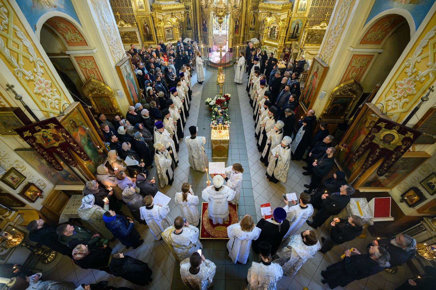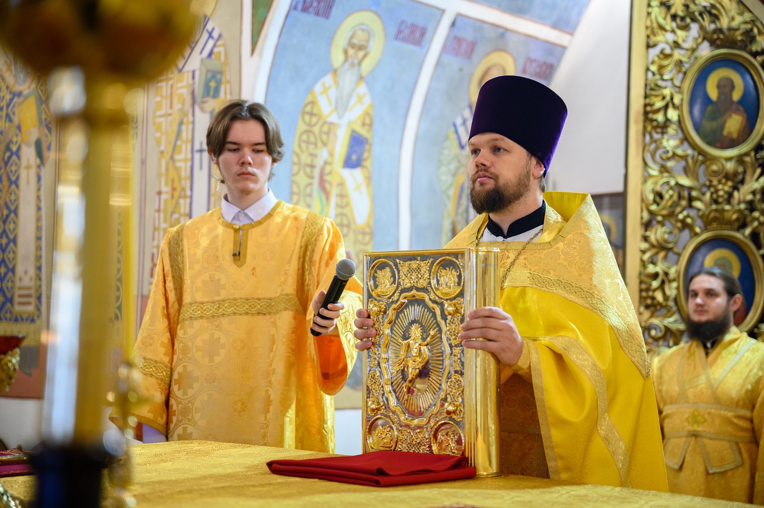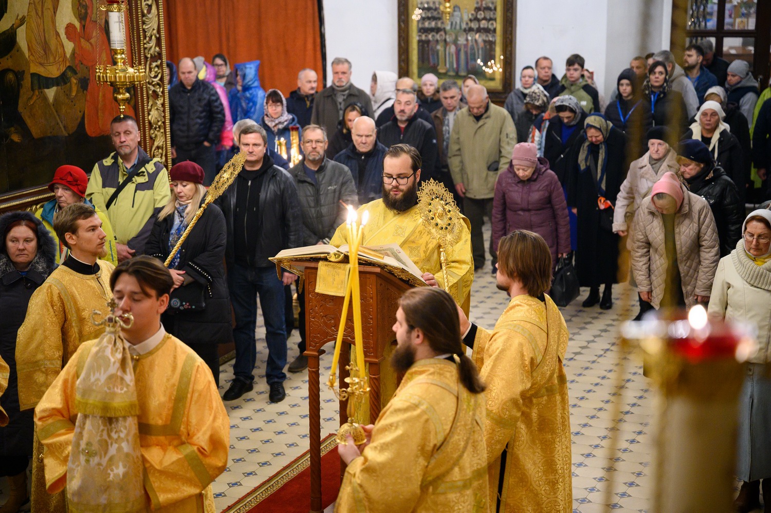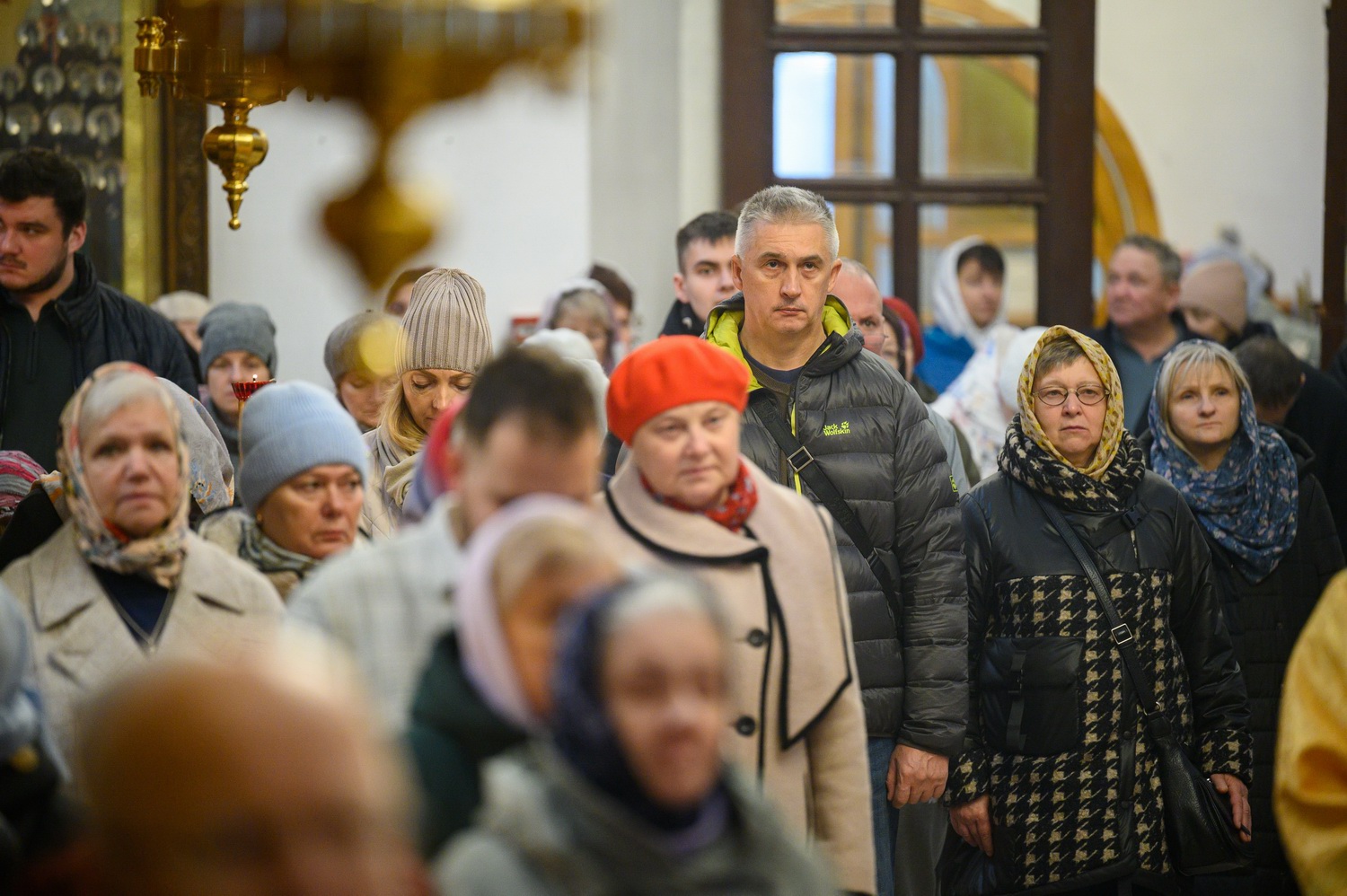 За Литургией Его Святейшеству сослужили: митрополит Воскресенский Григорий, управляющий делами Московской Патриархии, первый викарий Патриарха Московского и всея Руси по городу Москве, наместник Новоспасского ставропигиального монастыря; митрополит Владимирский и Суздальский Никандр, председатель Финансово-хозяйственного управления Московского Патриархата; митрополит Псковский и Порховский Матфей, бывший управляющий Северо-Восточным викариатством, распоряжением Святейшего Патриарха Кирилла от 2 августа 2024 года назначенный, в дополнение к несомым послушаниям, ответственным за строительство Успенского храма в Останкине; митрополит Звенигородский Арсений; епископ Раменский Алексий, личный секретарь Его Святейшества; епископ Бронницкий Иоанн, наместник Высоко-Петровского ставропигиального монастыря; протопресвитер Владимир Диваков, секретарь Патриарха Московского и всея Руси по г. Москве; протоиерей Анатолий Алефиров; протоиерей Георгий Климов; столичное духовенство.