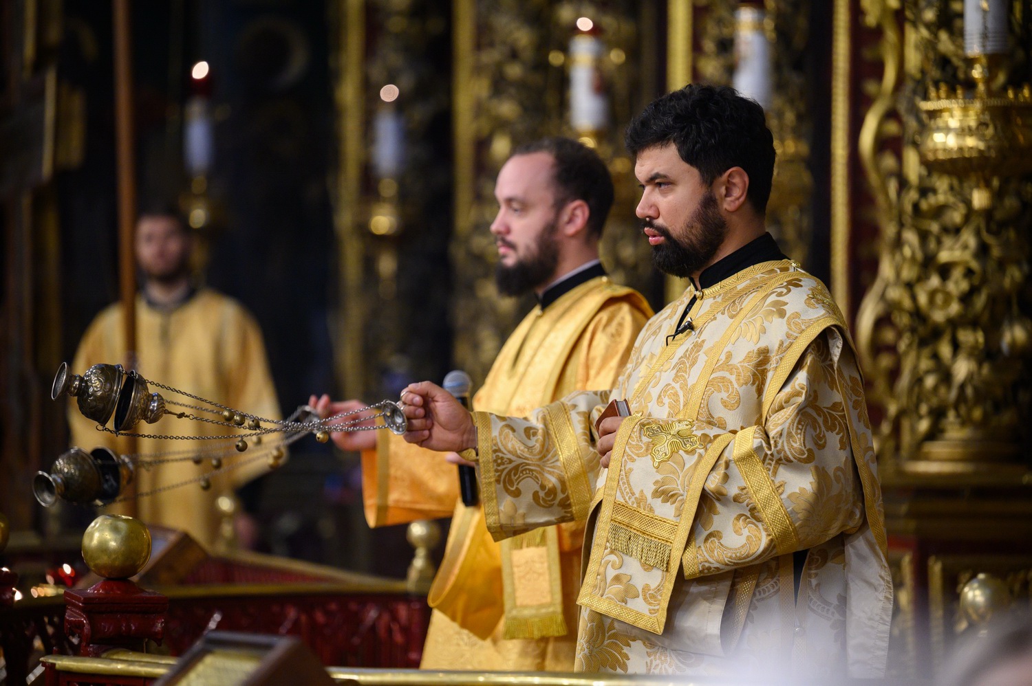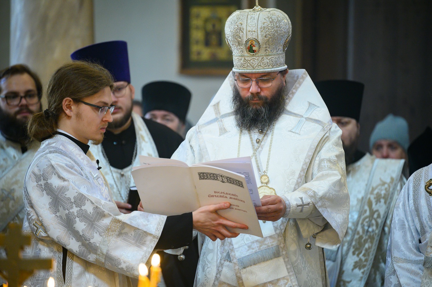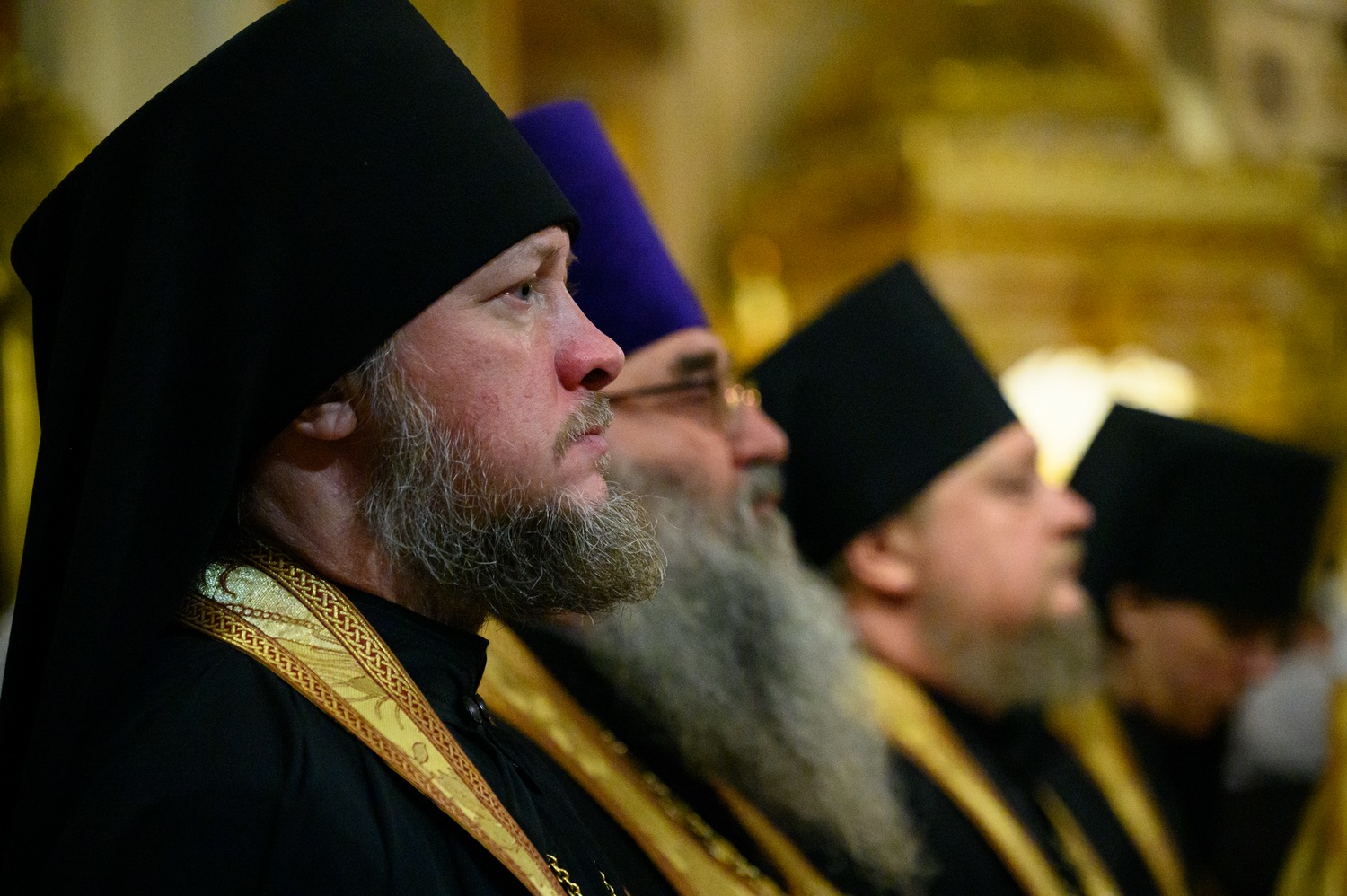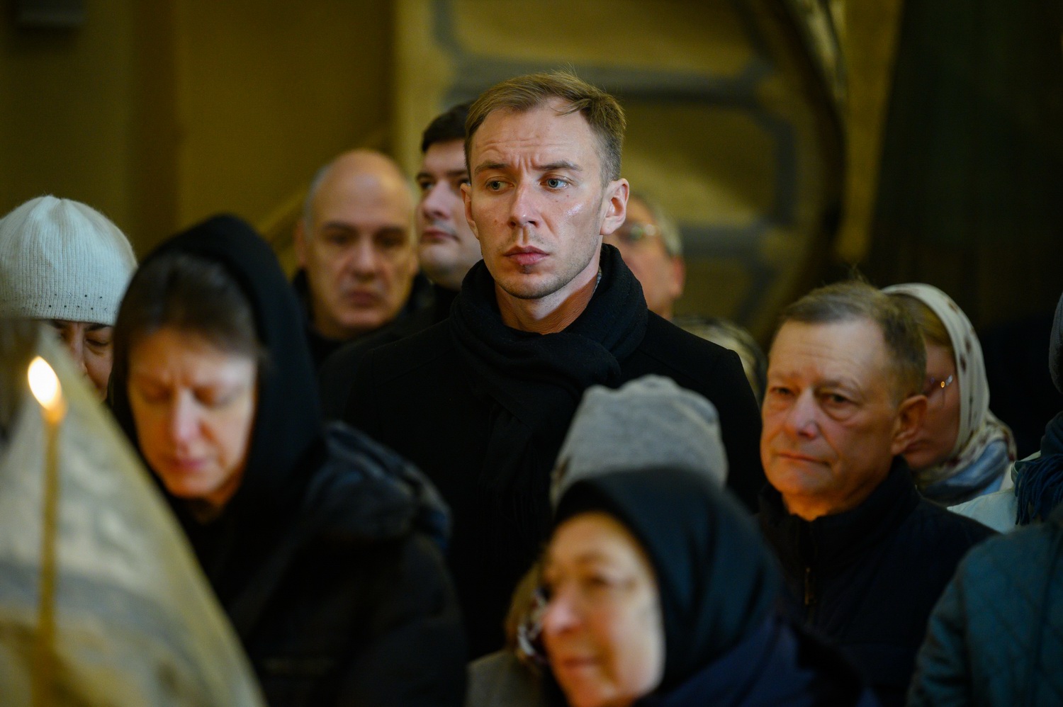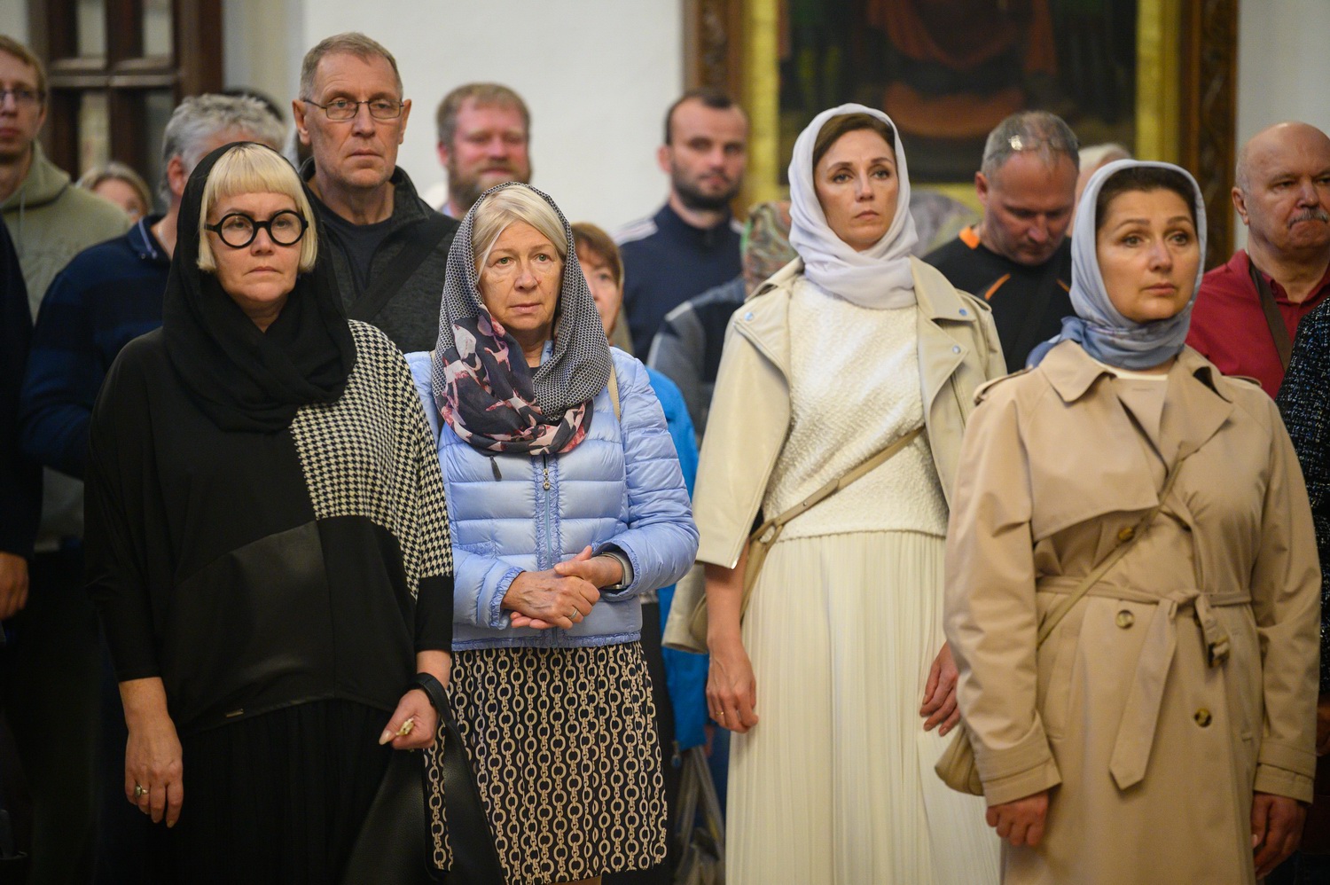 За Литургией Его Святейшеству сослужили: митрополит Воскресенский Григорий, управляющий делами Московской Патриархии, первый викарий Патриарха Московского и всея Руси по городу Москве, наместник Новоспасского ставропигиального монастыря; митрополит Владимирский и Суздальский Никандр, председатель Финансово-хозяйственного управления Московского Патриархата; митрополит Псковский и Порховский Матфей, бывший управляющий Северо-Восточным викариатством, распоряжением Святейшего Патриарха Кирилла от 2 августа 2024 года назначенный, в дополнение к несомым послушаниям, ответственным за строительство Успенского храма в Останкине; митрополит Звенигородский Арсений; епископ Раменский Алексий, личный секретарь Его Святейшества; епископ Бронницкий Иоанн, наместник Высоко-Петровского ставропигиального монастыря; протопресвитер Владимир Диваков, секретарь Патриарха Московского и всея Руси по г. Москве; протоиерей Анатолий Алефиров; протоиерей Георгий Климов; столичное духовенство.