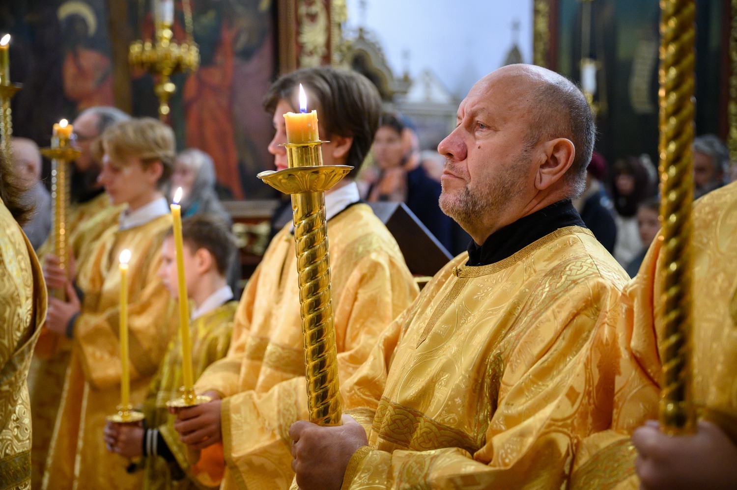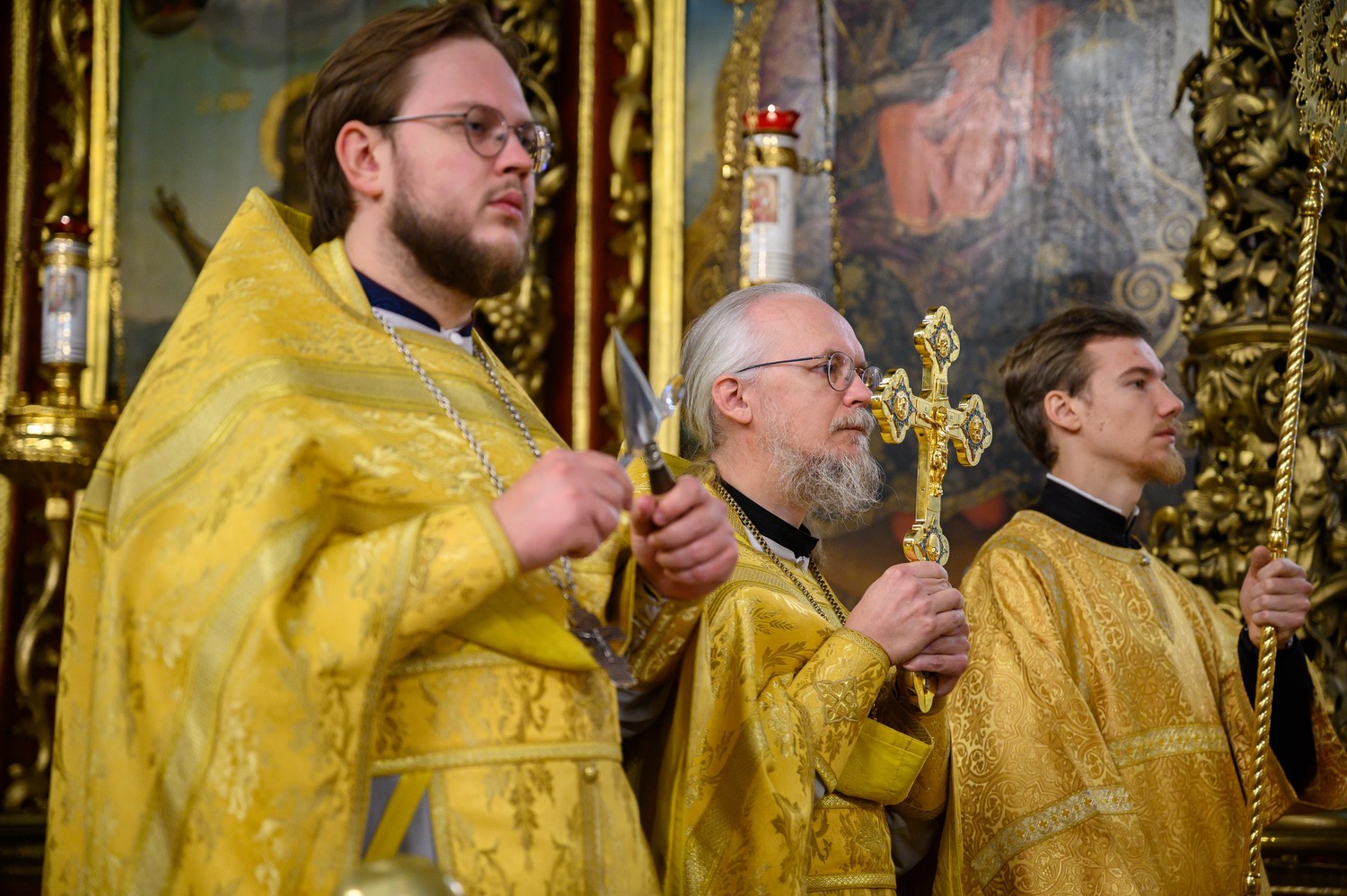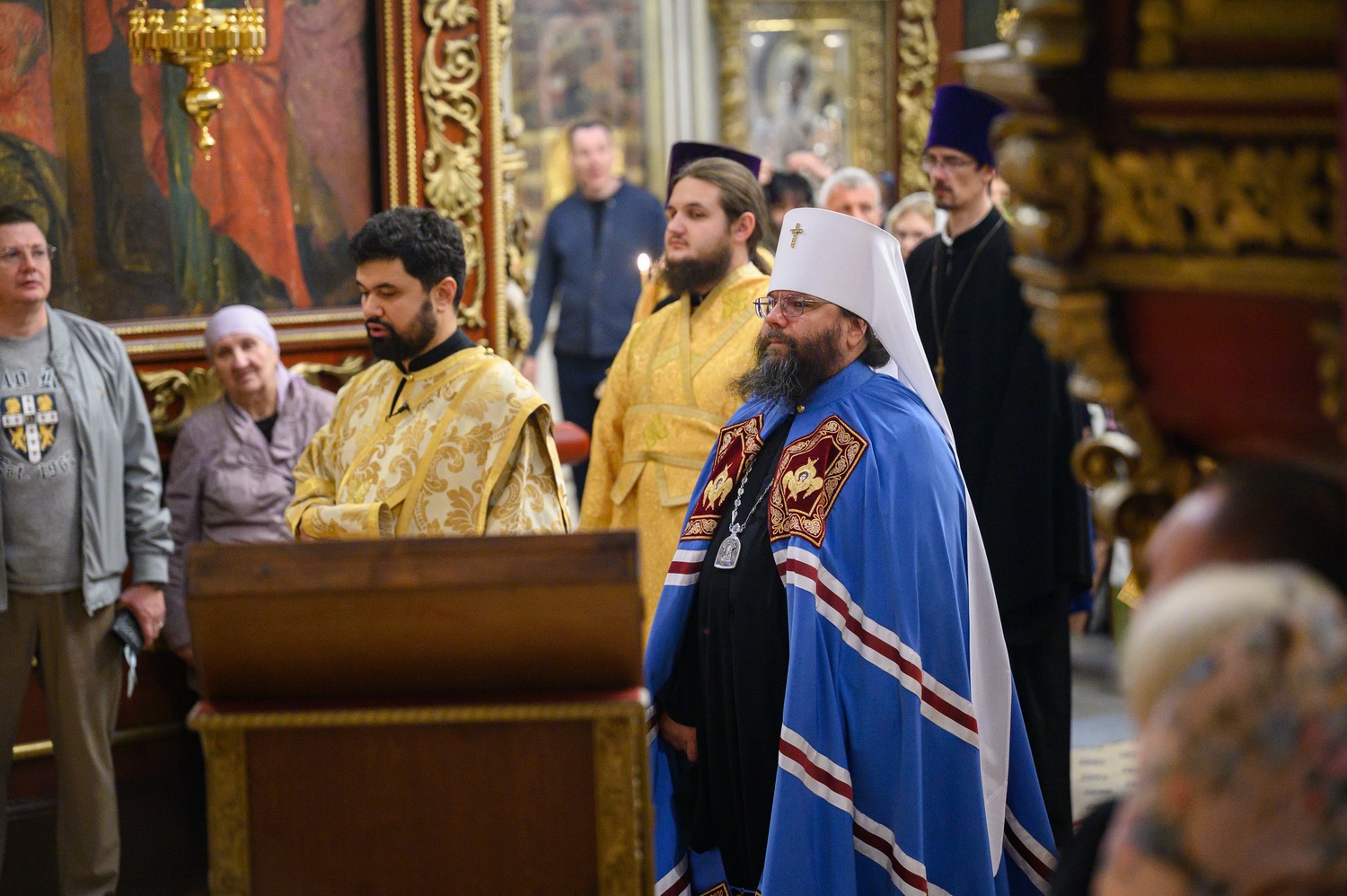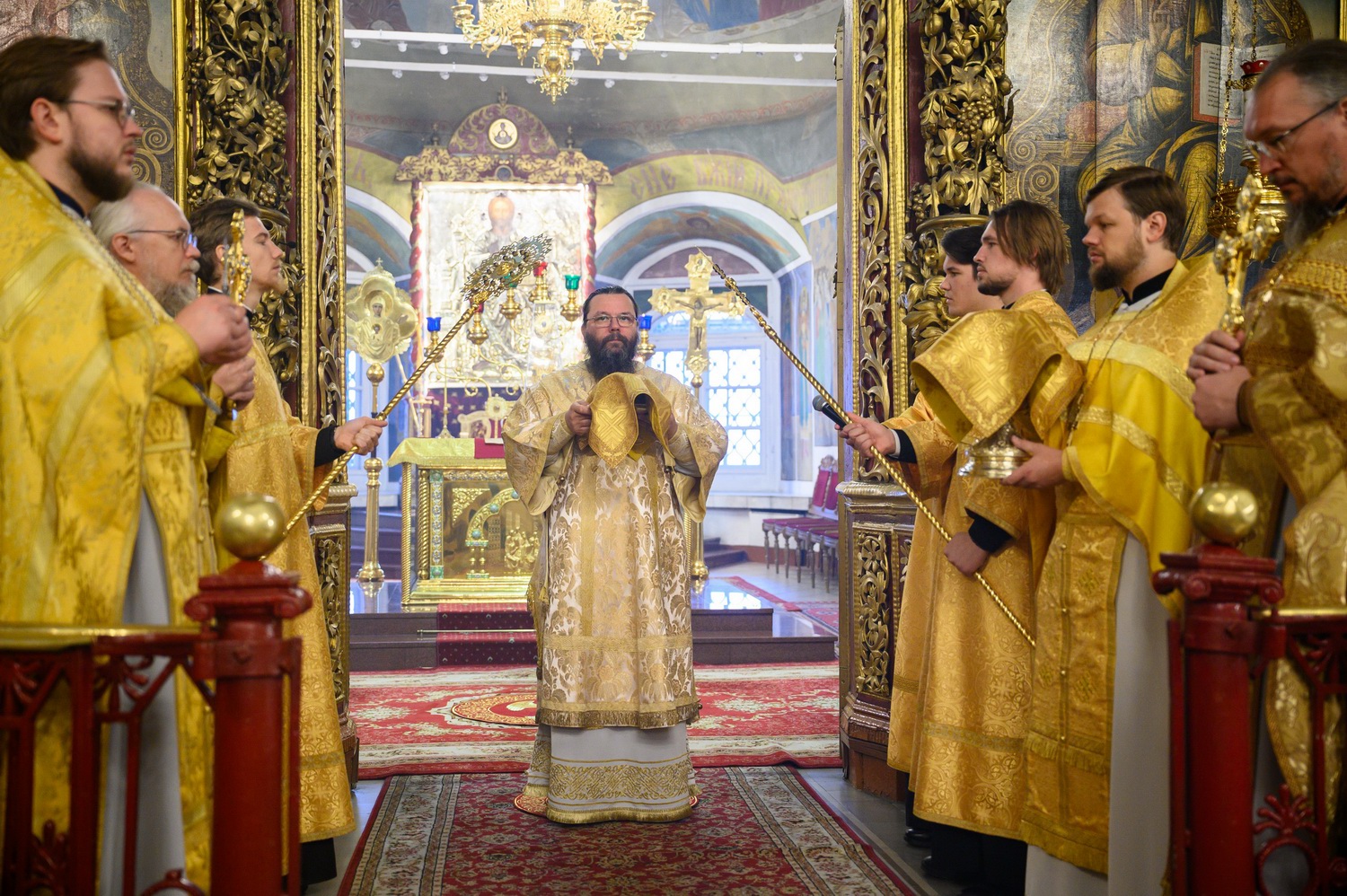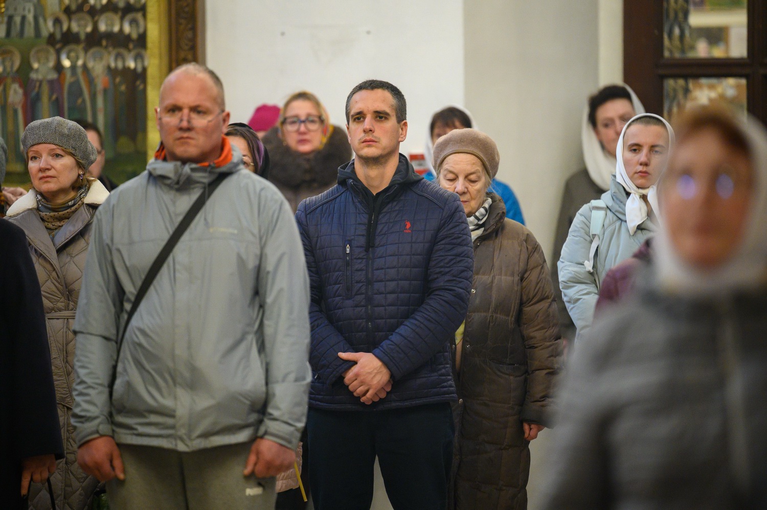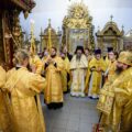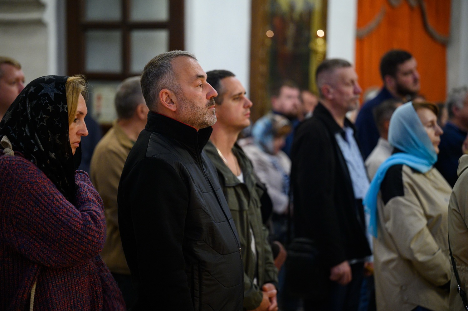 За Литургией Его Святейшеству сослужили: митрополит Воскресенский Григорий, управляющий делами Московской Патриархии, первый викарий Патриарха Московского и всея Руси по городу Москве, наместник Новоспасского ставропигиального монастыря; митрополит Владимирский и Суздальский Никандр, председатель Финансово-хозяйственного управления Московского Патриархата; митрополит Псковский и Порховский Матфей, бывший управляющий Северо-Восточным викариатством, распоряжением Святейшего Патриарха Кирилла от 2 августа 2024 года назначенный, в дополнение к несомым послушаниям, ответственным за строительство Успенского храма в Останкине; митрополит Звенигородский Арсений; епископ Раменский Алексий, личный секретарь Его Святейшества; епископ Бронницкий Иоанн, наместник Высоко-Петровского ставропигиального монастыря; протопресвитер Владимир Диваков, секретарь Патриарха Московского и всея Руси по г. Москве; протоиерей Анатолий Алефиров; протоиерей Георгий Климов; столичное духовенство.