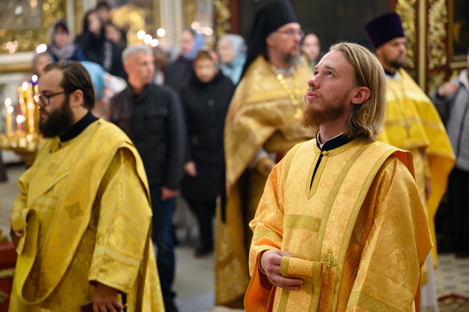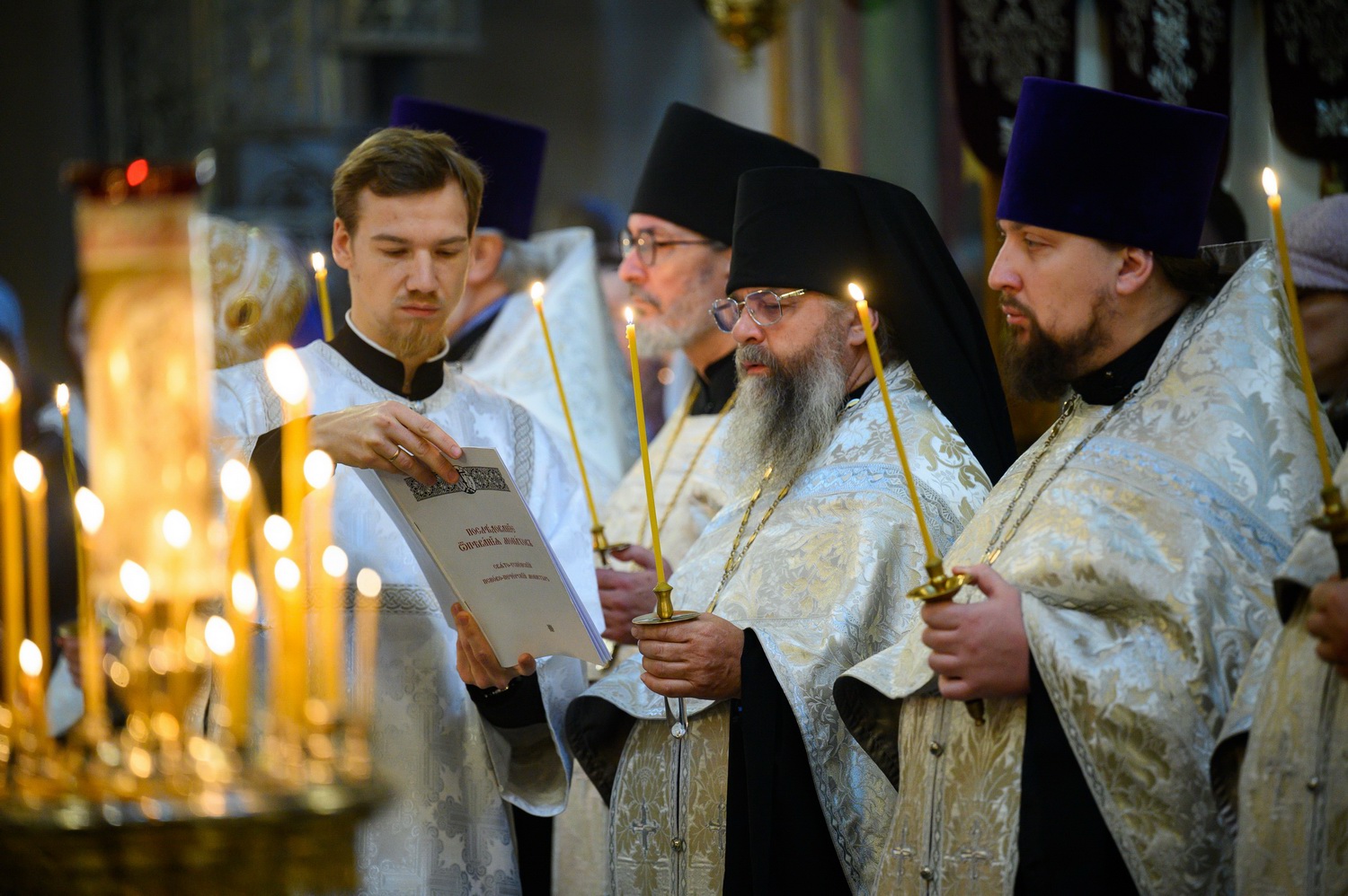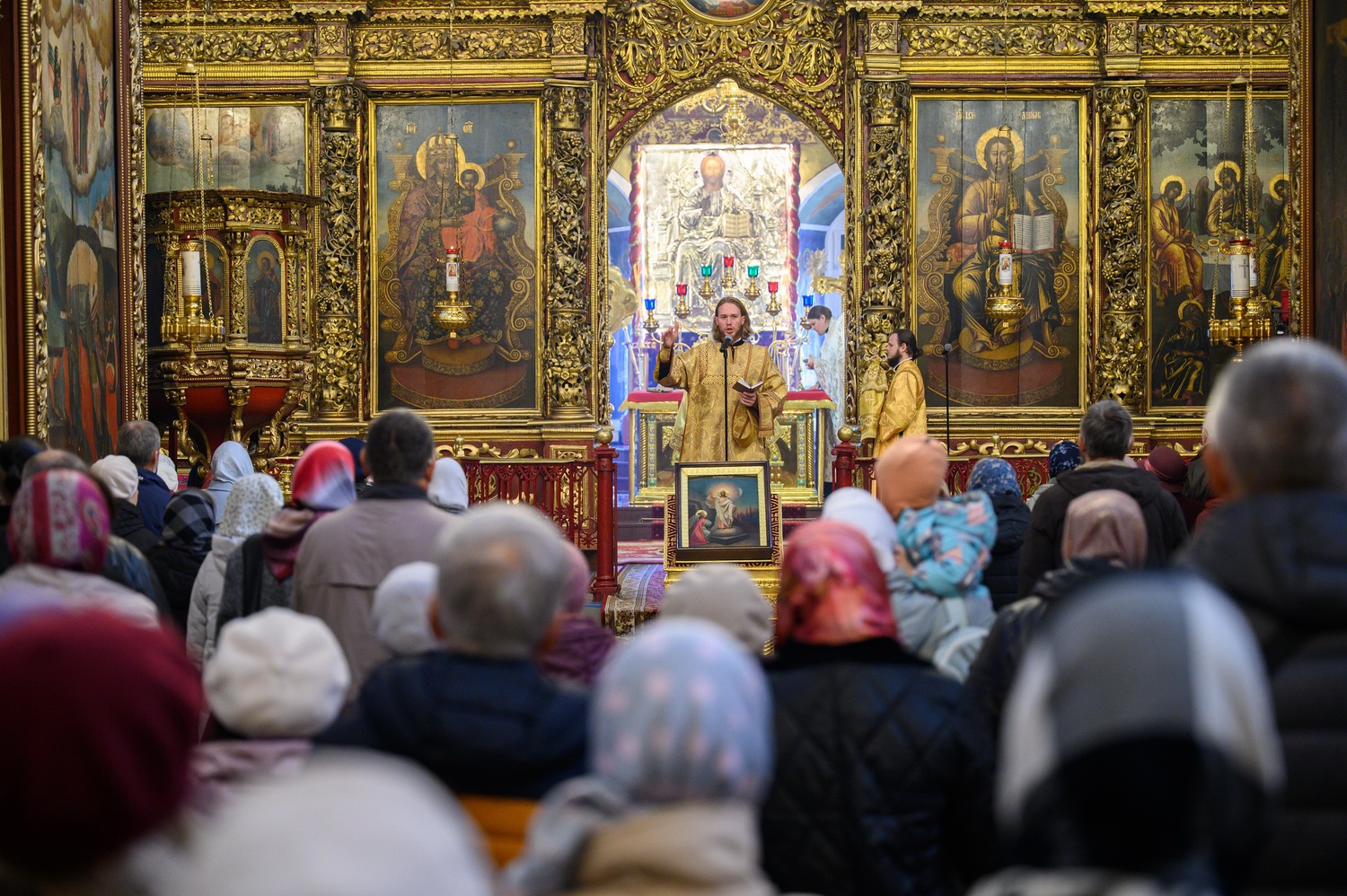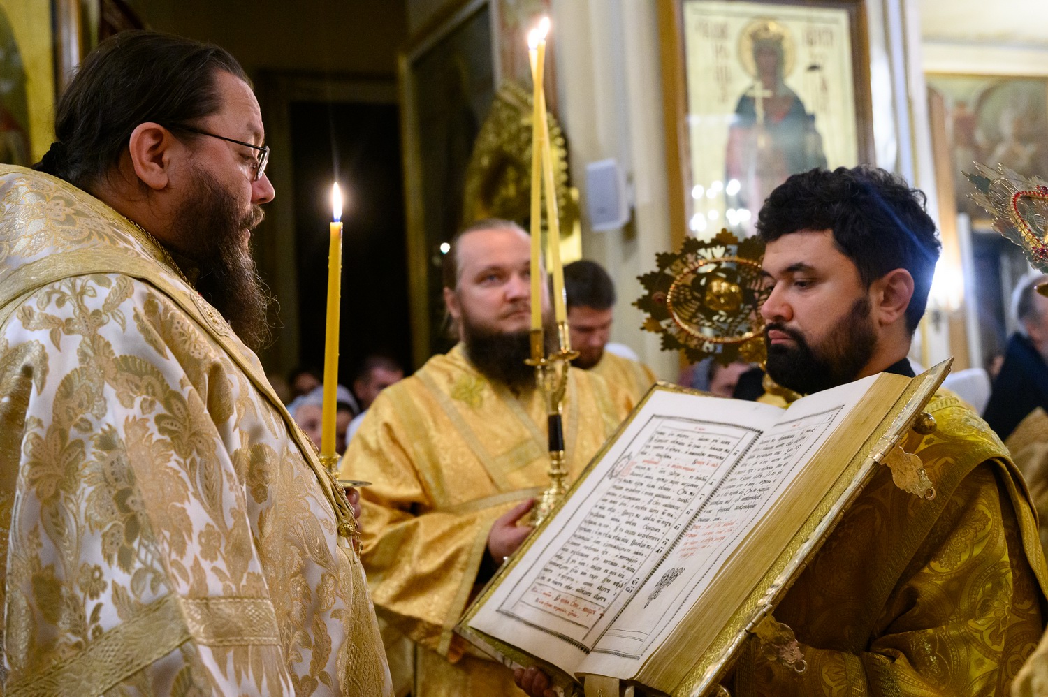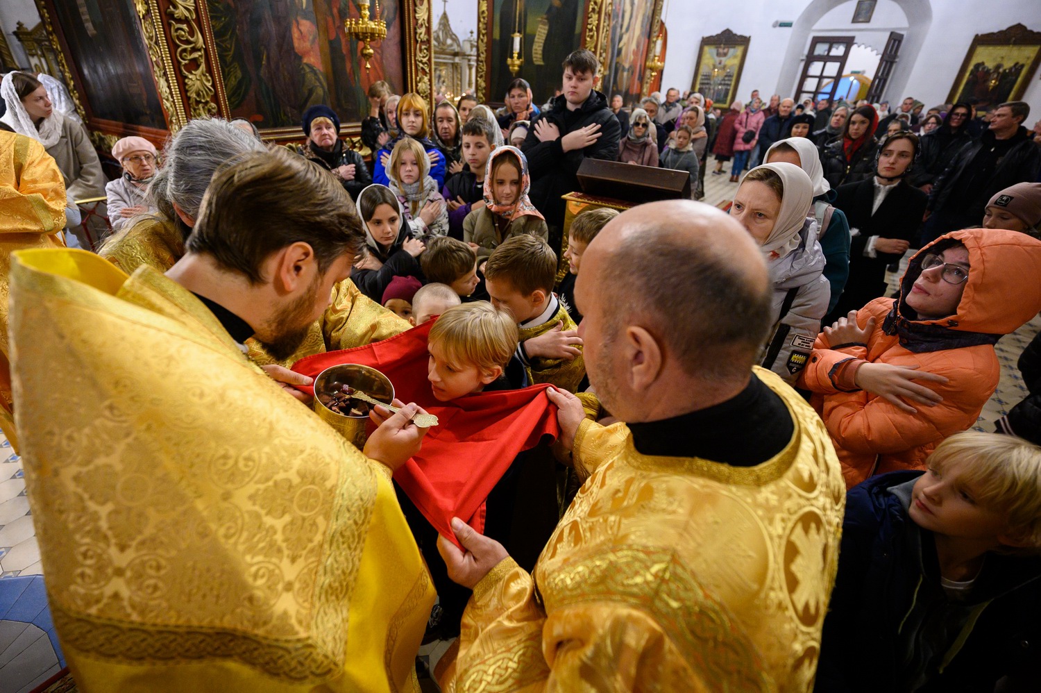 За Литургией Его Святейшеству сослужили: митрополит Воскресенский Григорий, управляющий делами Московской Патриархии, первый викарий Патриарха Московского и всея Руси по городу Москве, наместник Новоспасского ставропигиального монастыря; митрополит Владимирский и Суздальский Никандр, председатель Финансово-хозяйственного управления Московского Патриархата; митрополит Псковский и Порховский Матфей, бывший управляющий Северо-Восточным викариатством, распоряжением Святейшего Патриарха Кирилла от 2 августа 2024 года назначенный, в дополнение к несомым послушаниям, ответственным за строительство Успенского храма в Останкине; митрополит Звенигородский Арсений; епископ Раменский Алексий, личный секретарь Его Святейшества; епископ Бронницкий Иоанн, наместник Высоко-Петровского ставропигиального монастыря; протопресвитер Владимир Диваков, секретарь Патриарха Московского и всея Руси по г. Москве; протоиерей Анатолий Алефиров; протоиерей Георгий Климов; столичное духовенство.
