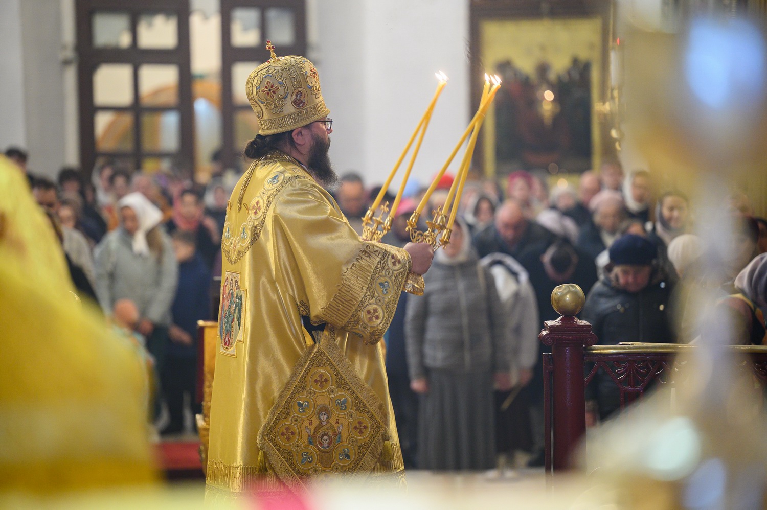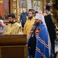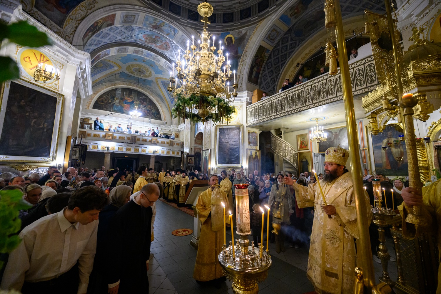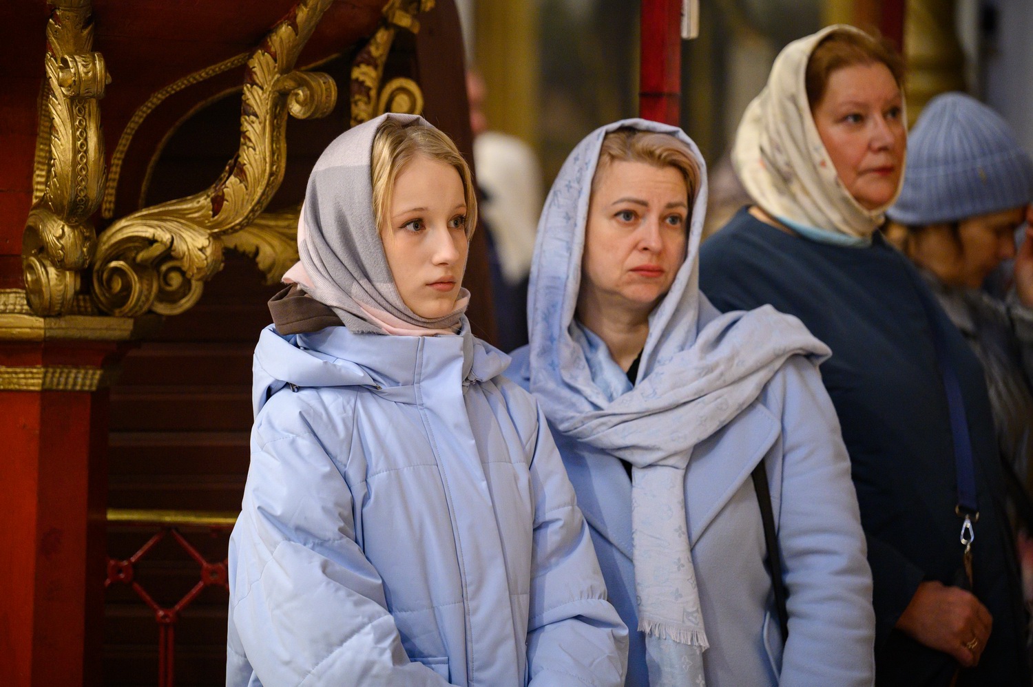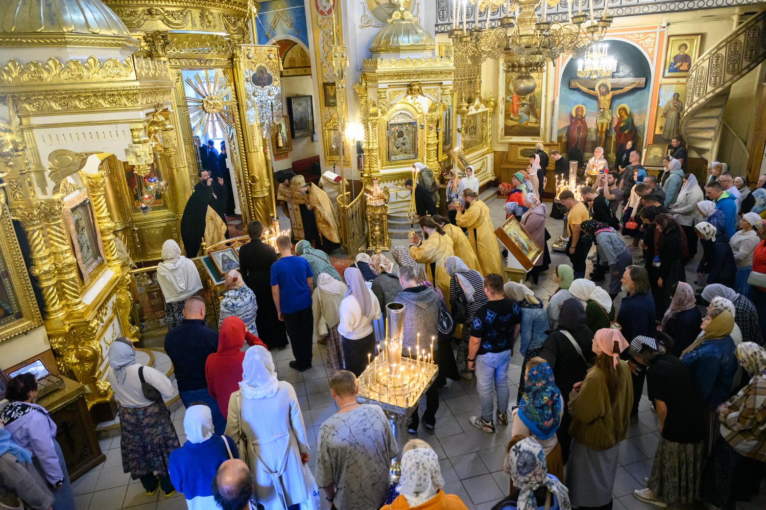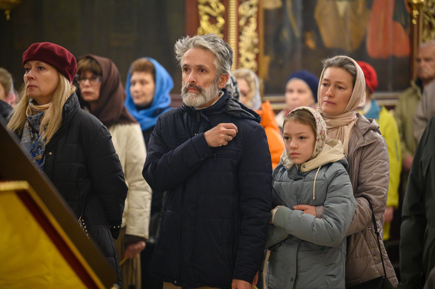 За Литургией Его Святейшеству сослужили: митрополит Воскресенский Григорий, управляющий делами Московской Патриархии, первый викарий Патриарха Московского и всея Руси по городу Москве, наместник Новоспасского ставропигиального монастыря; митрополит Владимирский и Суздальский Никандр, председатель Финансово-хозяйственного управления Московского Патриархата; митрополит Псковский и Порховский Матфей, бывший управляющий Северо-Восточным викариатством, распоряжением Святейшего Патриарха Кирилла от 2 августа 2024 года назначенный, в дополнение к несомым послушаниям, ответственным за строительство Успенского храма в Останкине; митрополит Звенигородский Арсений; епископ Раменский Алексий, личный секретарь Его Святейшества; епископ Бронницкий Иоанн, наместник Высоко-Петровского ставропигиального монастыря; протопресвитер Владимир Диваков, секретарь Патриарха Московского и всея Руси по г. Москве; протоиерей Анатолий Алефиров; протоиерей Георгий Климов; столичное духовенство.