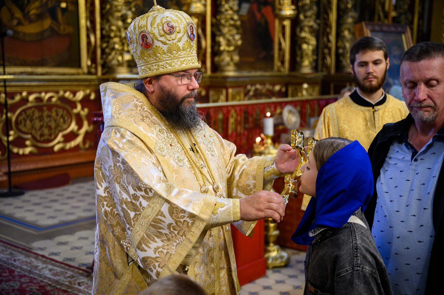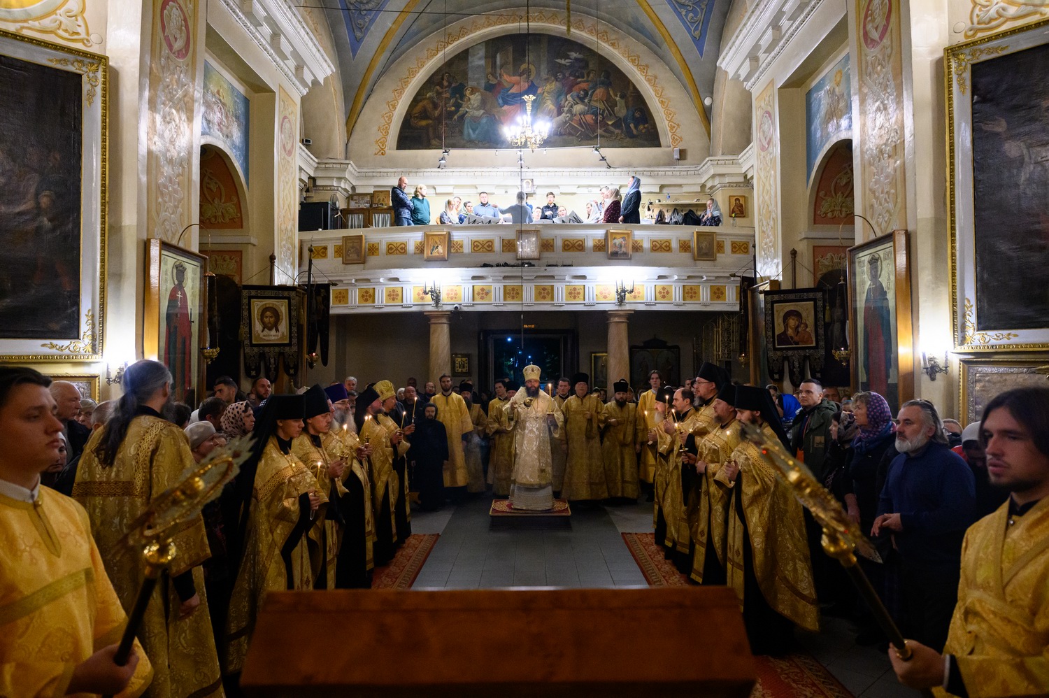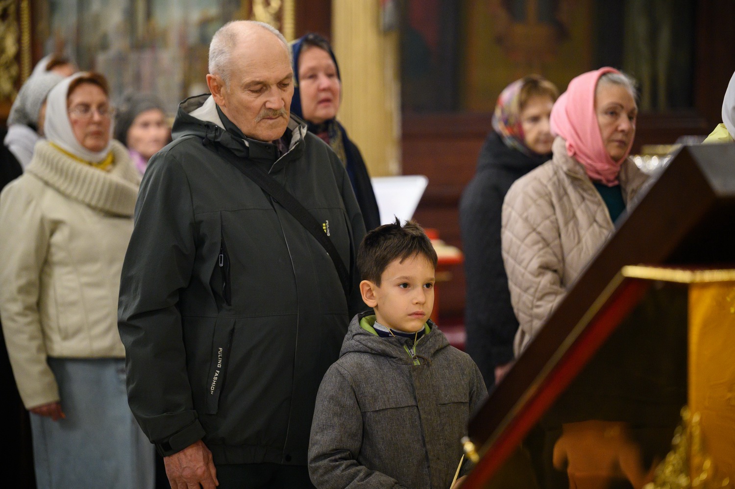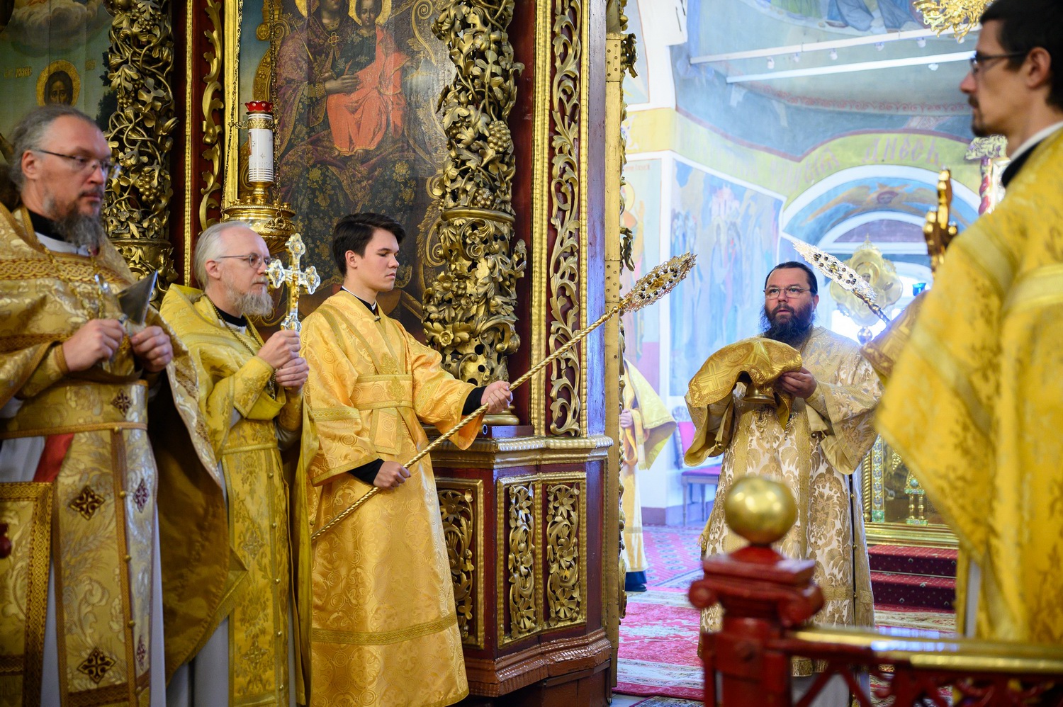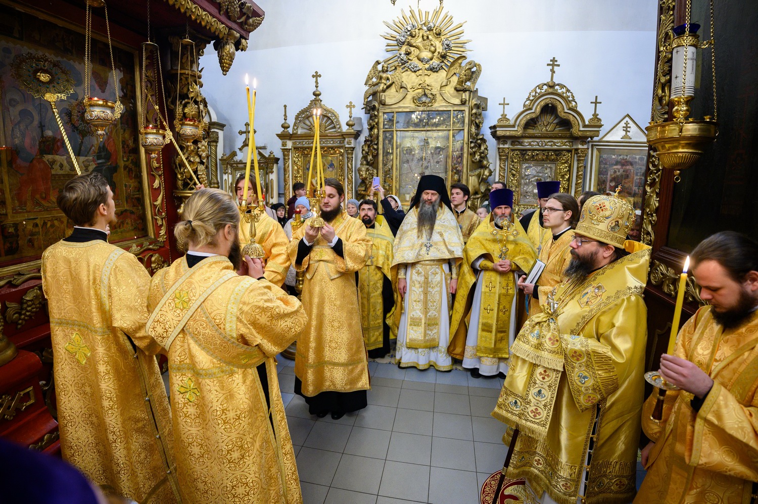 За Литургией Его Святейшеству сослужили: митрополит Воскресенский Григорий, управляющий делами Московской Патриархии, первый викарий Патриарха Московского и всея Руси по городу Москве, наместник Новоспасского ставропигиального монастыря; митрополит Владимирский и Суздальский Никандр, председатель Финансово-хозяйственного управления Московского Патриархата; митрополит Псковский и Порховский Матфей, бывший управляющий Северо-Восточным викариатством, распоряжением Святейшего Патриарха Кирилла от 2 августа 2024 года назначенный, в дополнение к несомым послушаниям, ответственным за строительство Успенского храма в Останкине; митрополит Звенигородский Арсений; епископ Раменский Алексий, личный секретарь Его Святейшества; епископ Бронницкий Иоанн, наместник Высоко-Петровского ставропигиального монастыря; протопресвитер Владимир Диваков, секретарь Патриарха Московского и всея Руси по г. Москве; протоиерей Анатолий Алефиров; протоиерей Георгий Климов; столичное духовенство.