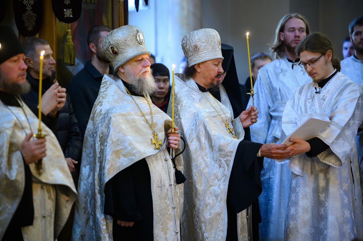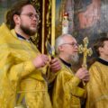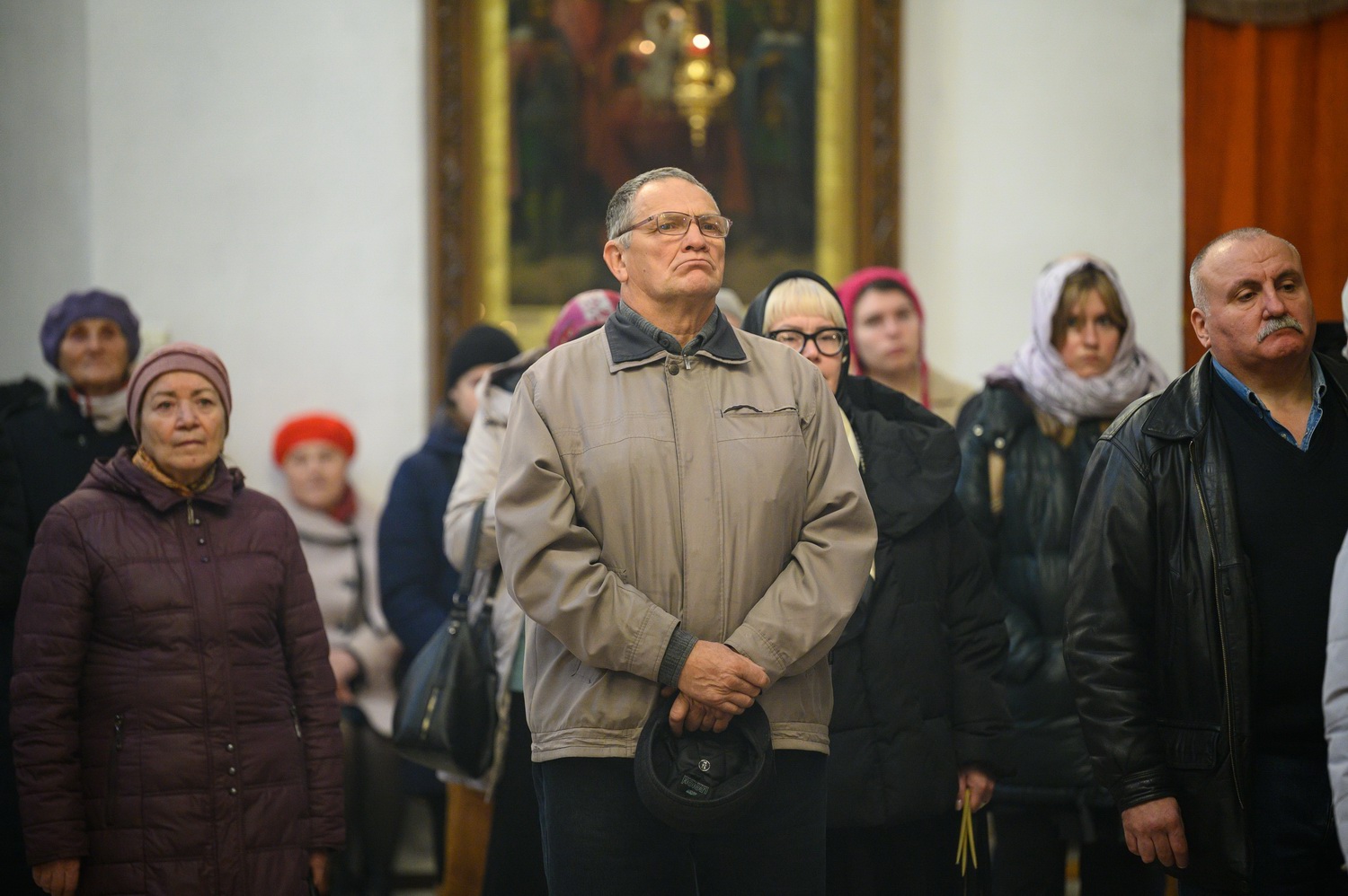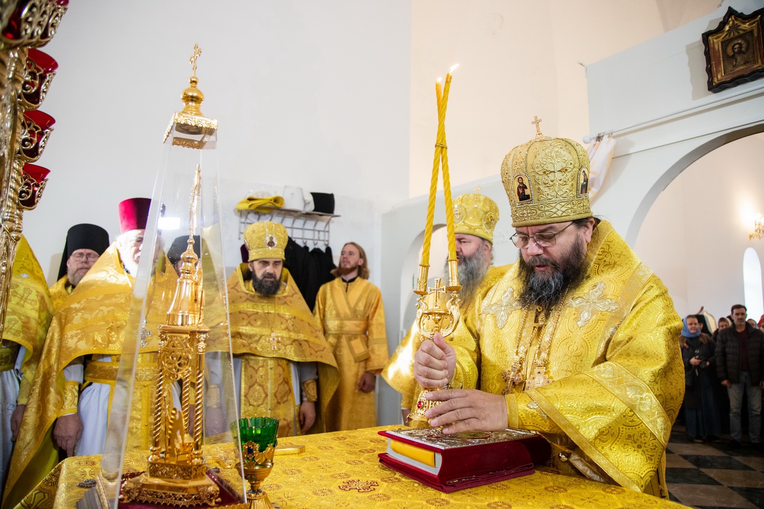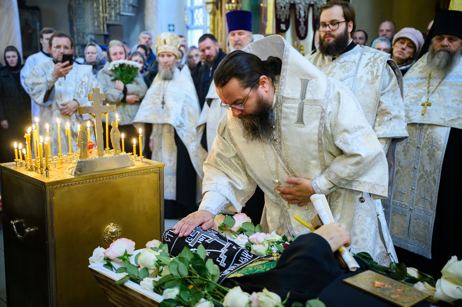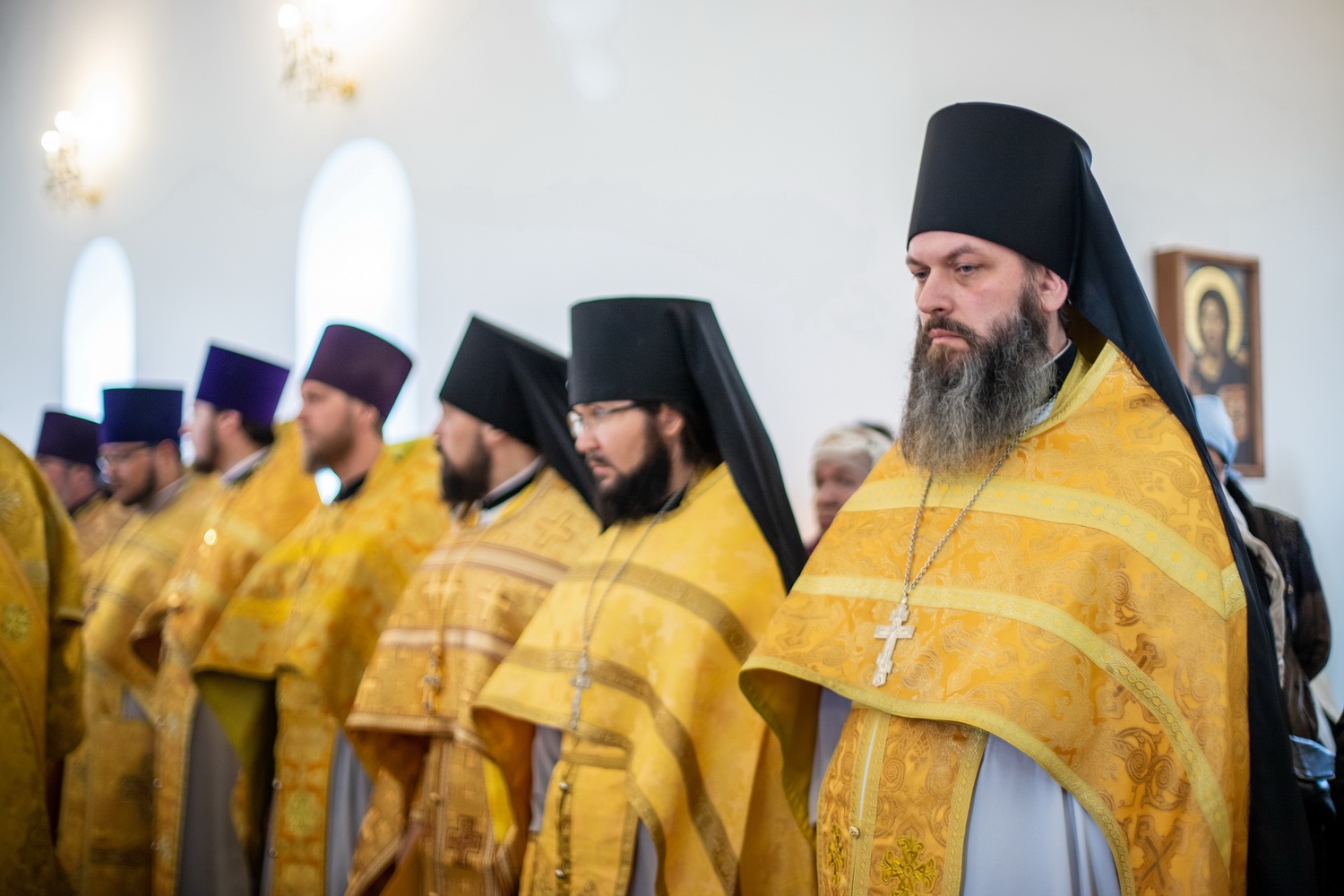 За Литургией Его Святейшеству сослужили: митрополит Воскресенский Григорий, управляющий делами Московской Патриархии, первый викарий Патриарха Московского и всея Руси по городу Москве, наместник Новоспасского ставропигиального монастыря; митрополит Владимирский и Суздальский Никандр, председатель Финансово-хозяйственного управления Московского Патриархата; митрополит Псковский и Порховский Матфей, бывший управляющий Северо-Восточным викариатством, распоряжением Святейшего Патриарха Кирилла от 2 августа 2024 года назначенный, в дополнение к несомым послушаниям, ответственным за строительство Успенского храма в Останкине; митрополит Звенигородский Арсений; епископ Раменский Алексий, личный секретарь Его Святейшества; епископ Бронницкий Иоанн, наместник Высоко-Петровского ставропигиального монастыря; протопресвитер Владимир Диваков, секретарь Патриарха Московского и всея Руси по г. Москве; протоиерей Анатолий Алефиров; протоиерей Георгий Климов; столичное духовенство.