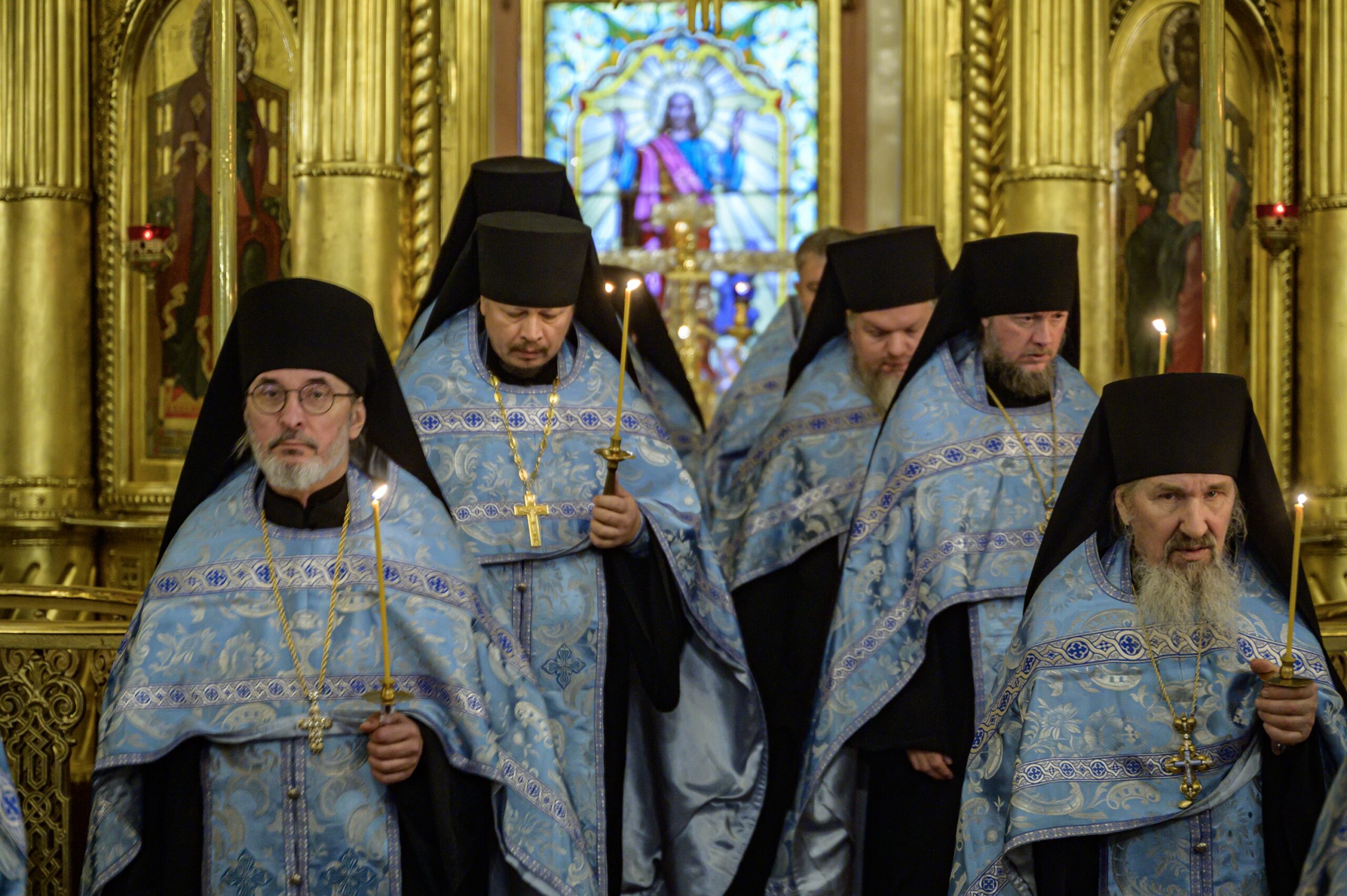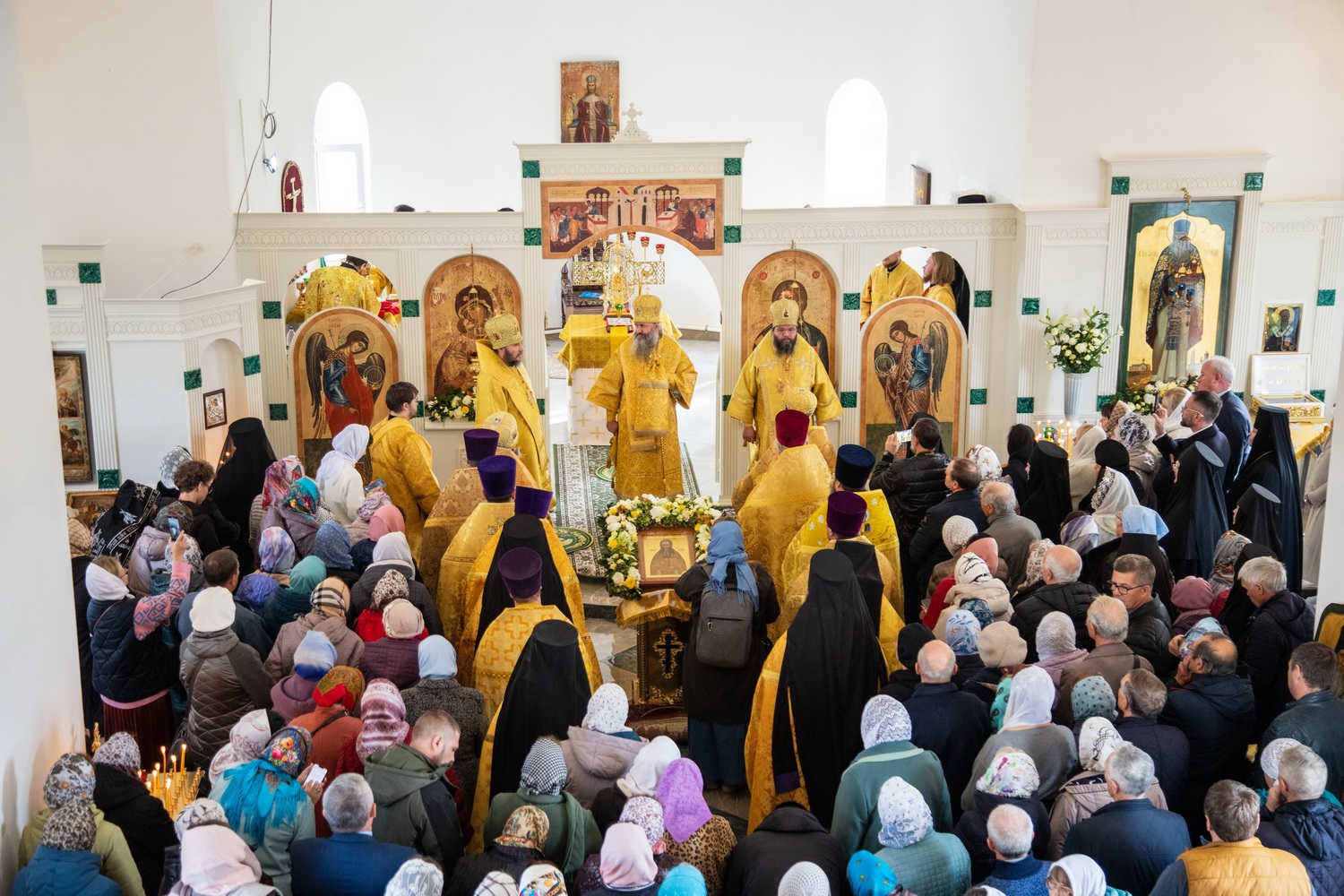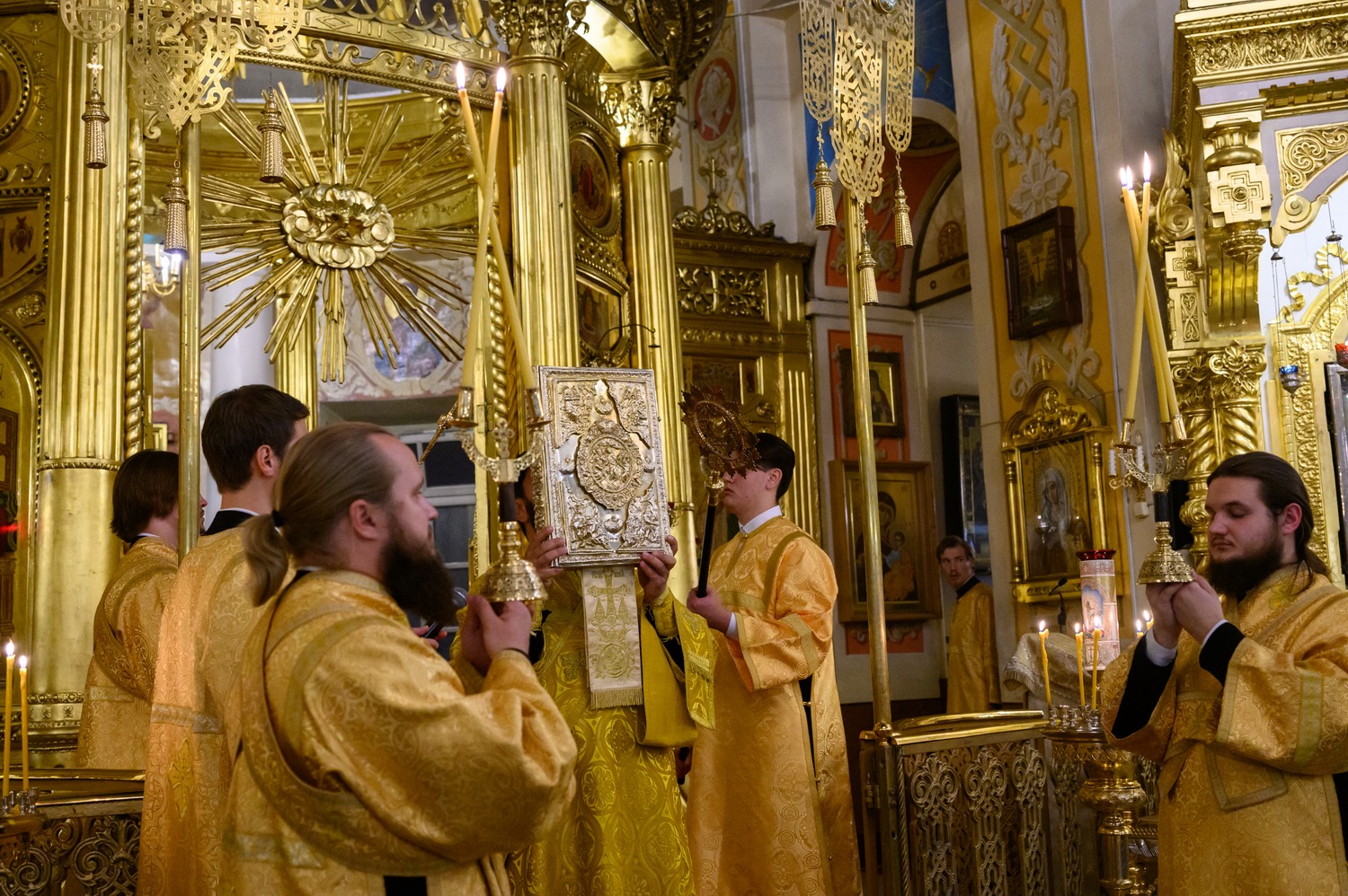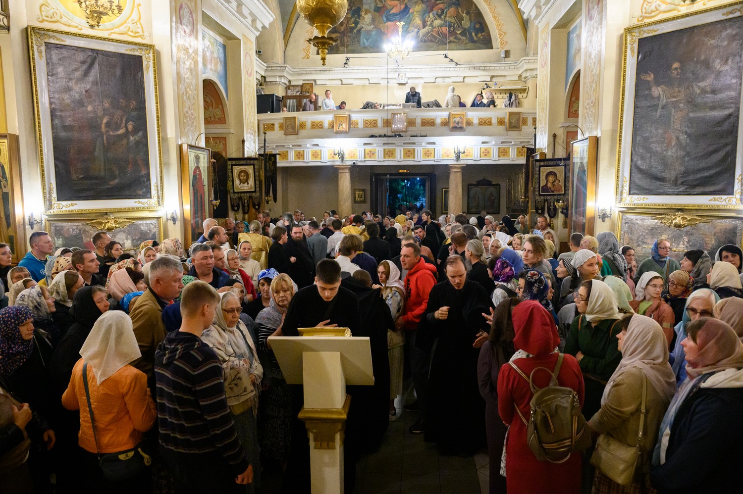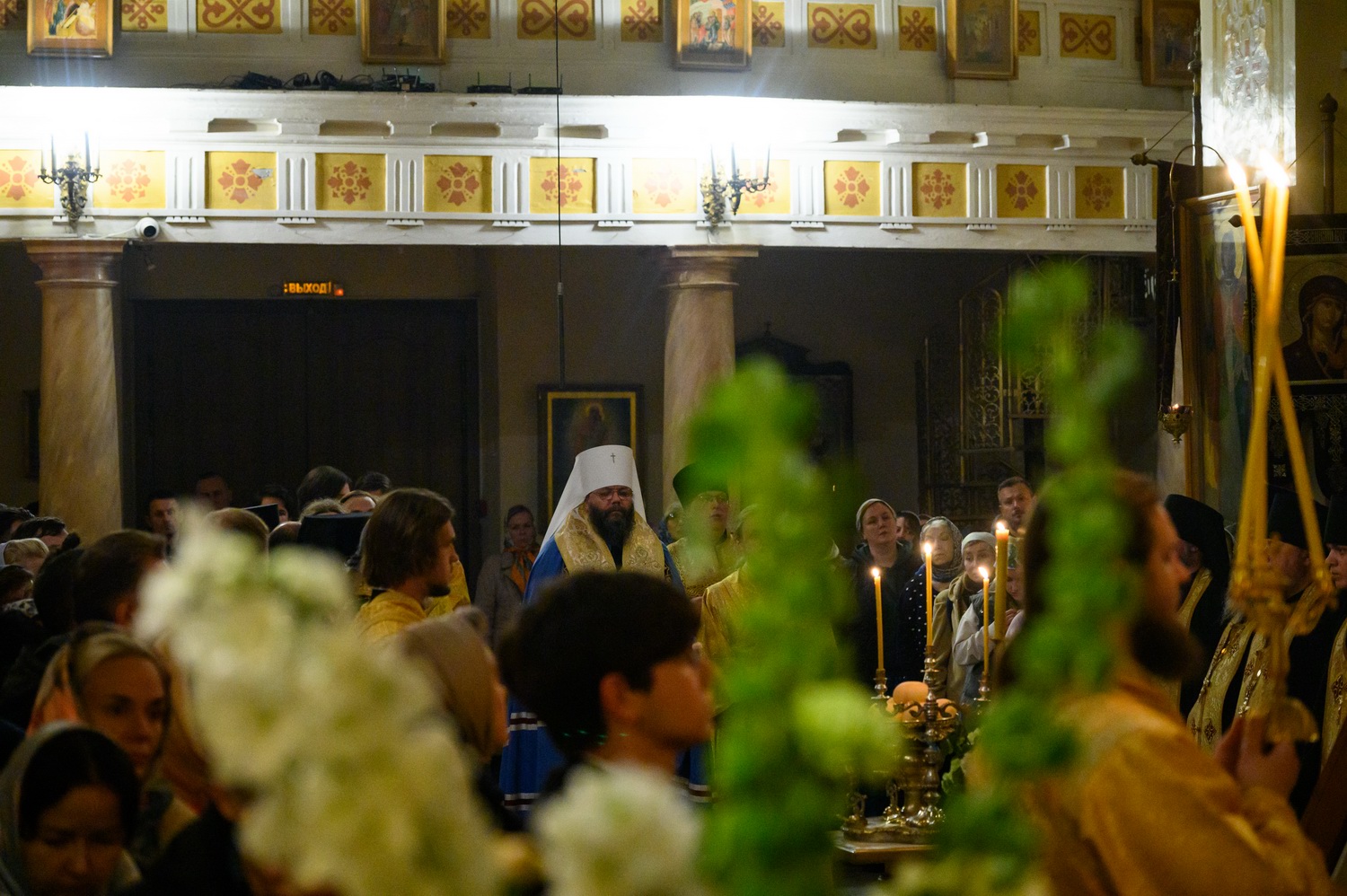 За Литургией Его Святейшеству сослужили: митрополит Воскресенский Григорий, управляющий делами Московской Патриархии, первый викарий Патриарха Московского и всея Руси по городу Москве, наместник Новоспасского ставропигиального монастыря; митрополит Владимирский и Суздальский Никандр, председатель Финансово-хозяйственного управления Московского Патриархата; митрополит Псковский и Порховский Матфей, бывший управляющий Северо-Восточным викариатством, распоряжением Святейшего Патриарха Кирилла от 2 августа 2024 года назначенный, в дополнение к несомым послушаниям, ответственным за строительство Успенского храма в Останкине; митрополит Звенигородский Арсений; епископ Раменский Алексий, личный секретарь Его Святейшества; епископ Бронницкий Иоанн, наместник Высоко-Петровского ставропигиального монастыря; протопресвитер Владимир Диваков, секретарь Патриарха Московского и всея Руси по г. Москве; протоиерей Анатолий Алефиров; протоиерей Георгий Климов; столичное духовенство.