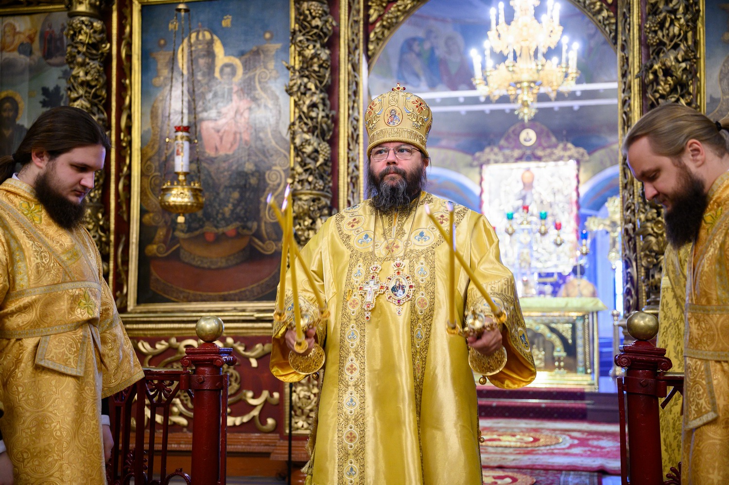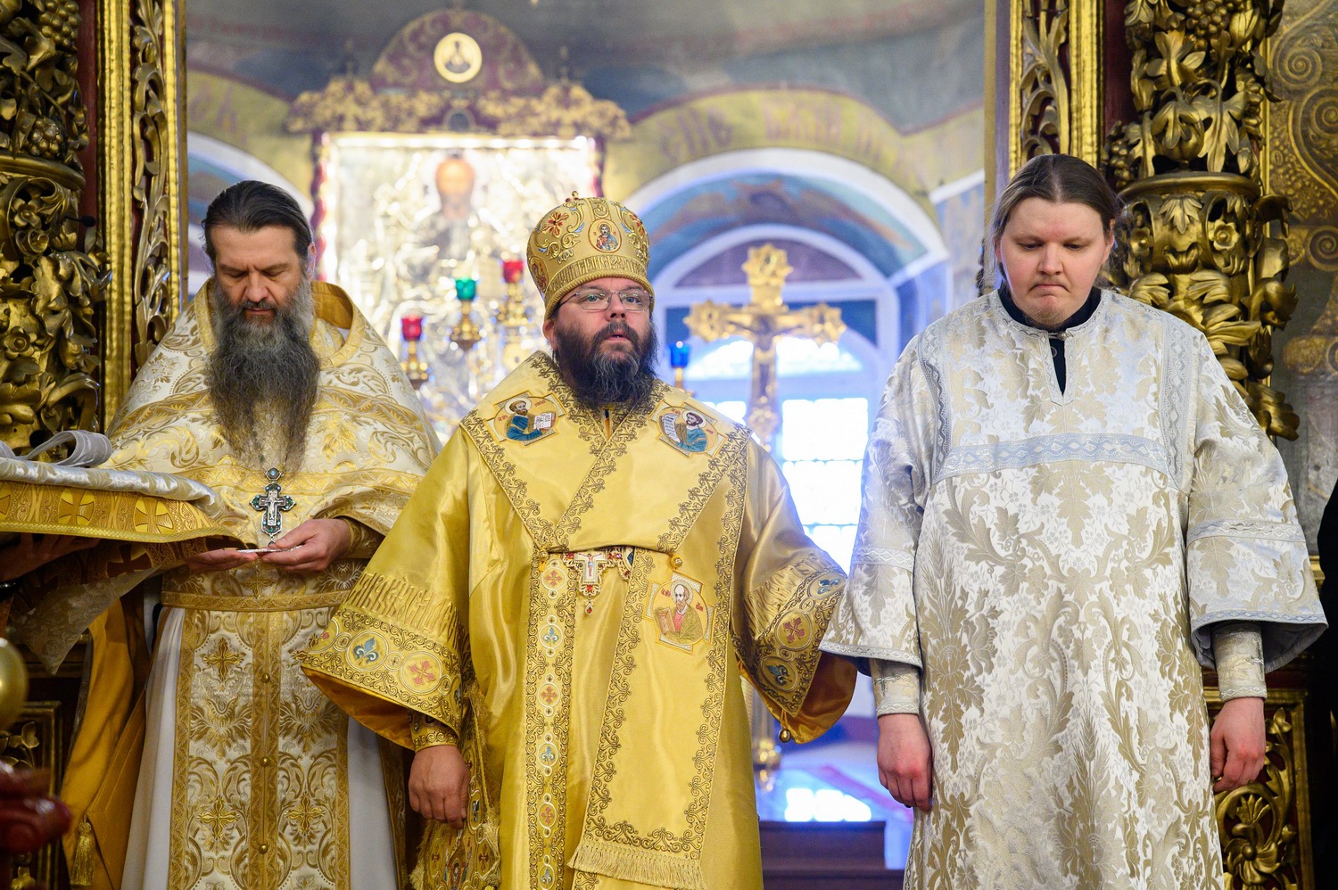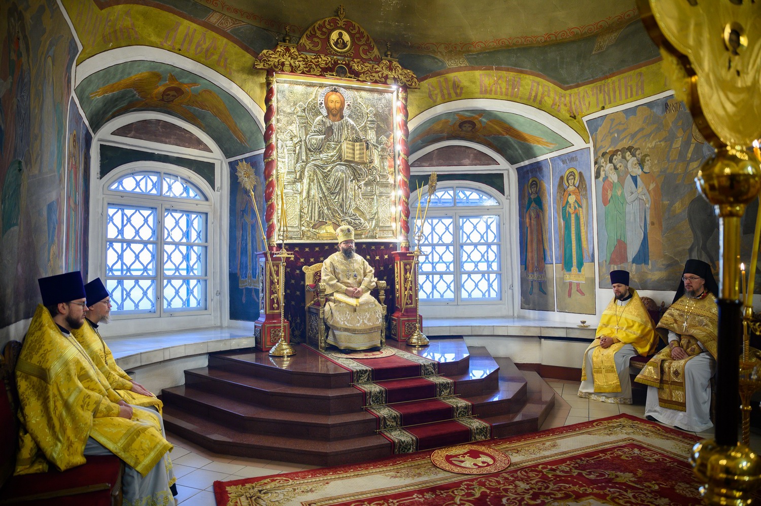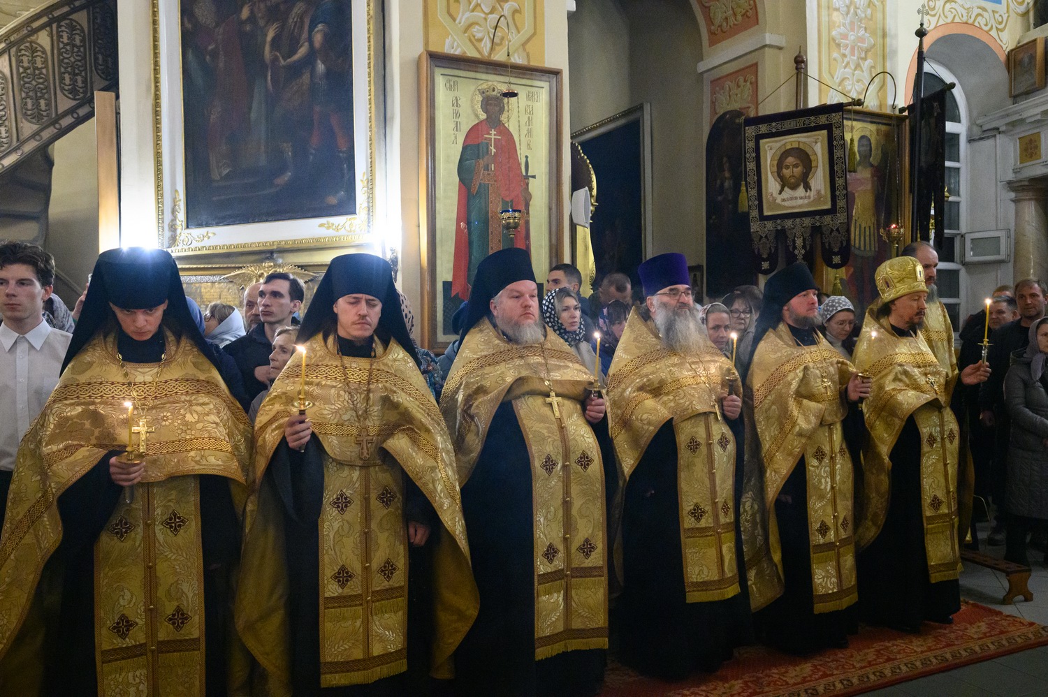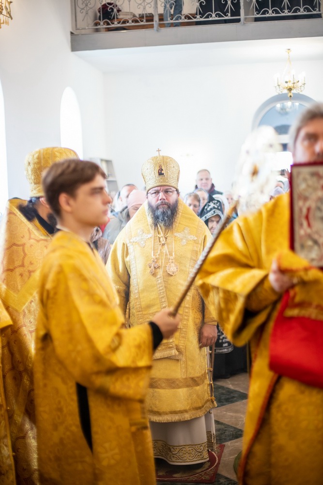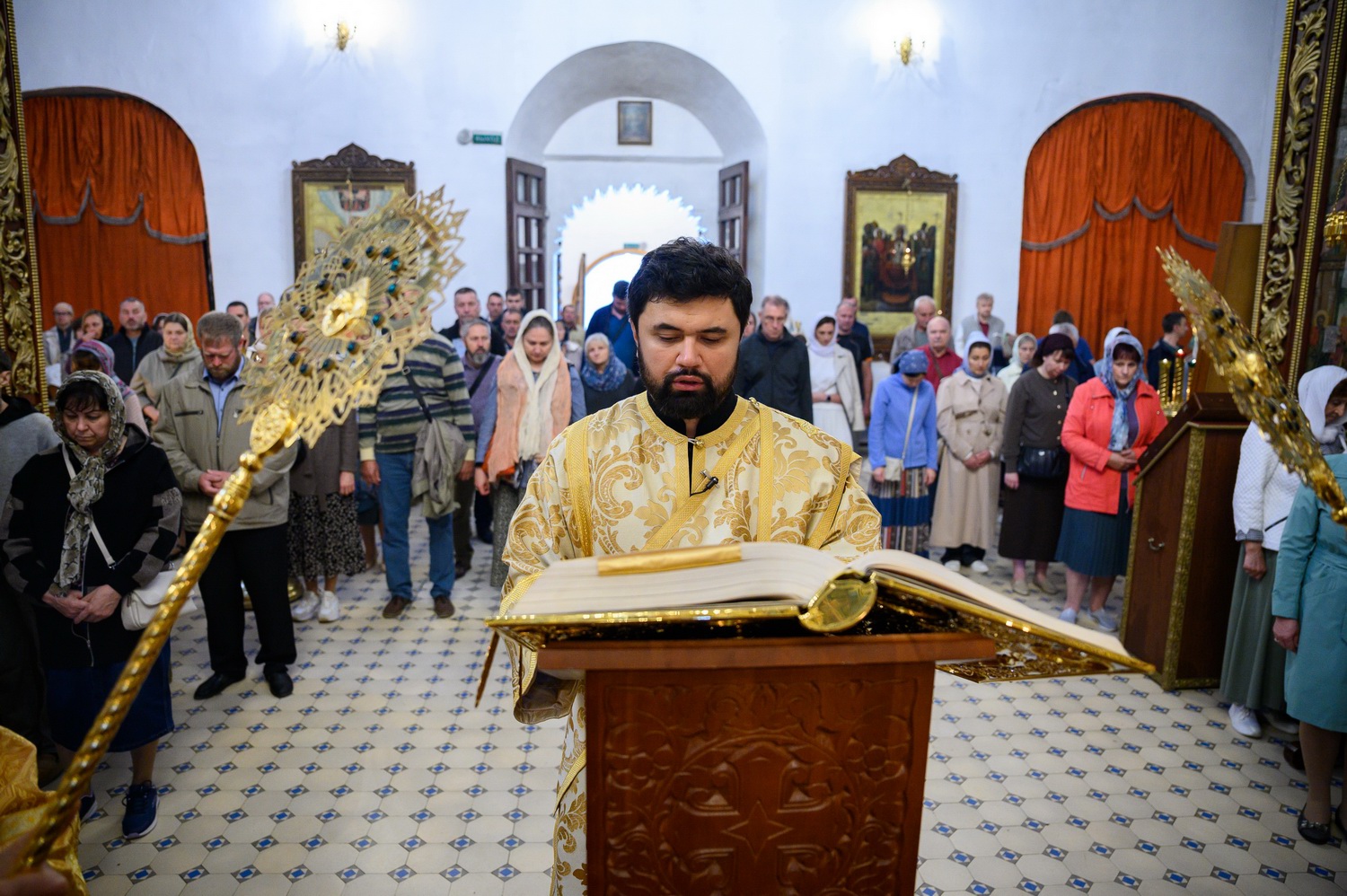 За Литургией Его Святейшеству сослужили: митрополит Воскресенский Григорий, управляющий делами Московской Патриархии, первый викарий Патриарха Московского и всея Руси по городу Москве, наместник Новоспасского ставропигиального монастыря; митрополит Владимирский и Суздальский Никандр, председатель Финансово-хозяйственного управления Московского Патриархата; митрополит Псковский и Порховский Матфей, бывший управляющий Северо-Восточным викариатством, распоряжением Святейшего Патриарха Кирилла от 2 августа 2024 года назначенный, в дополнение к несомым послушаниям, ответственным за строительство Успенского храма в Останкине; митрополит Звенигородский Арсений; епископ Раменский Алексий, личный секретарь Его Святейшества; епископ Бронницкий Иоанн, наместник Высоко-Петровского ставропигиального монастыря; протопресвитер Владимир Диваков, секретарь Патриарха Московского и всея Руси по г. Москве; протоиерей Анатолий Алефиров; протоиерей Георгий Климов; столичное духовенство.