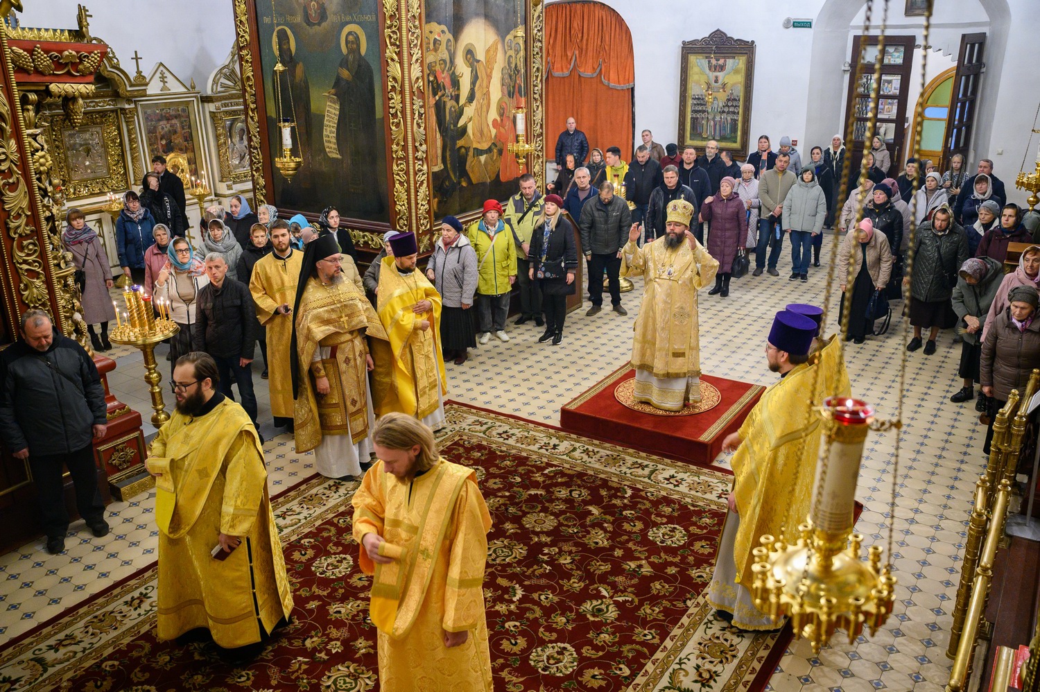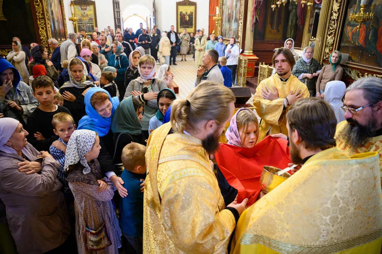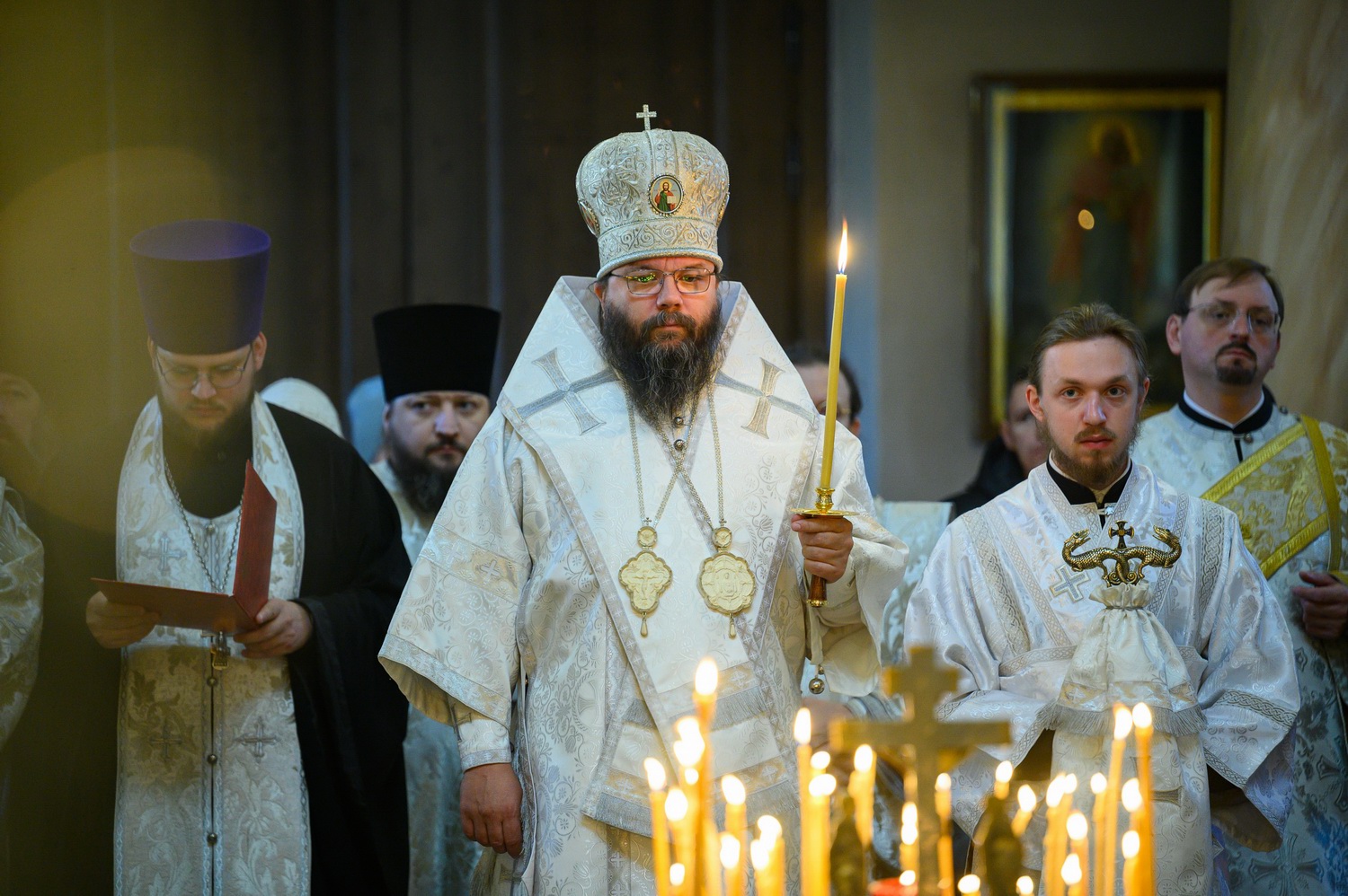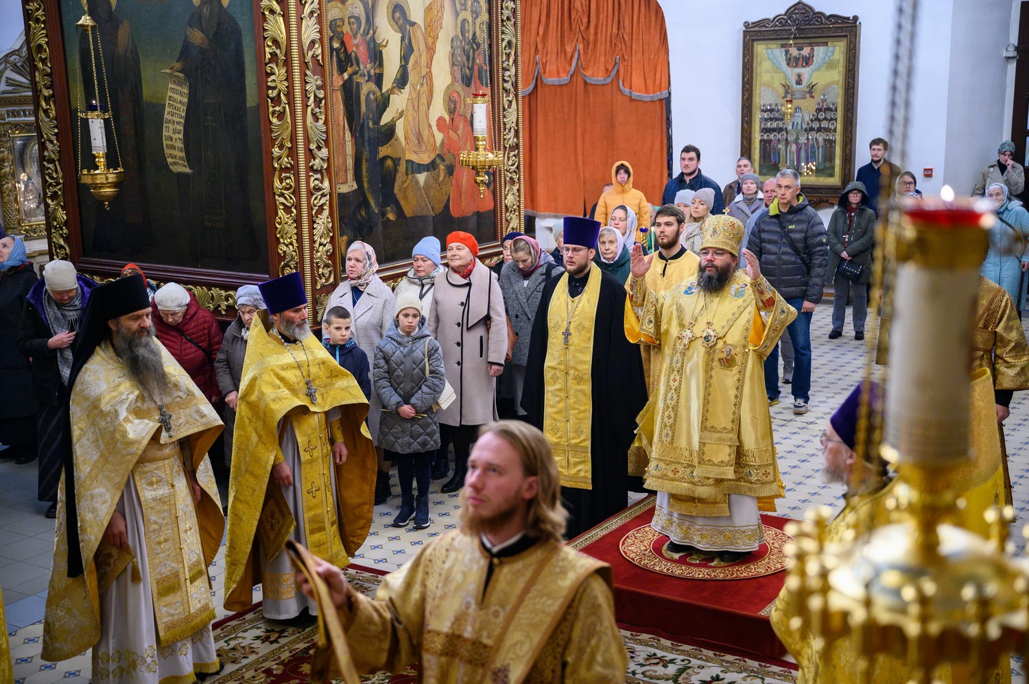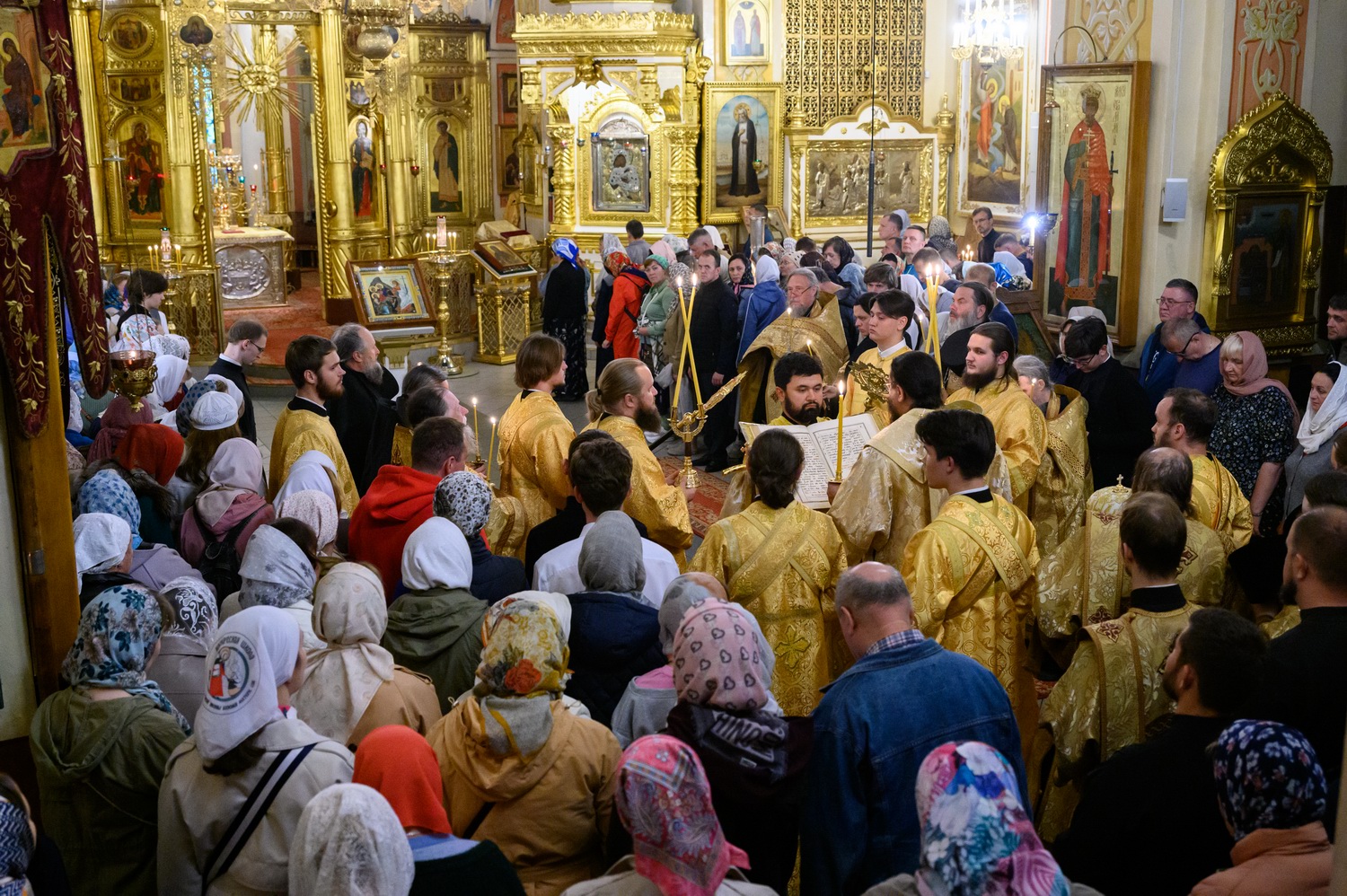 За Литургией Его Святейшеству сослужили: митрополит Воскресенский Григорий, управляющий делами Московской Патриархии, первый викарий Патриарха Московского и всея Руси по городу Москве, наместник Новоспасского ставропигиального монастыря; митрополит Владимирский и Суздальский Никандр, председатель Финансово-хозяйственного управления Московского Патриархата; митрополит Псковский и Порховский Матфей, бывший управляющий Северо-Восточным викариатством, распоряжением Святейшего Патриарха Кирилла от 2 августа 2024 года назначенный, в дополнение к несомым послушаниям, ответственным за строительство Успенского храма в Останкине; митрополит Звенигородский Арсений; епископ Раменский Алексий, личный секретарь Его Святейшества; епископ Бронницкий Иоанн, наместник Высоко-Петровского ставропигиального монастыря; протопресвитер Владимир Диваков, секретарь Патриарха Московского и всея Руси по г. Москве; протоиерей Анатолий Алефиров; протоиерей Георгий Климов; столичное духовенство.