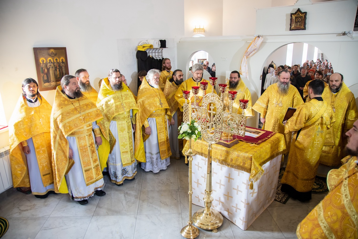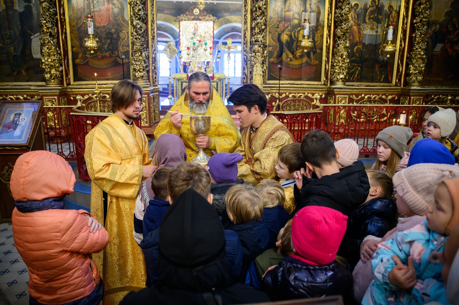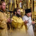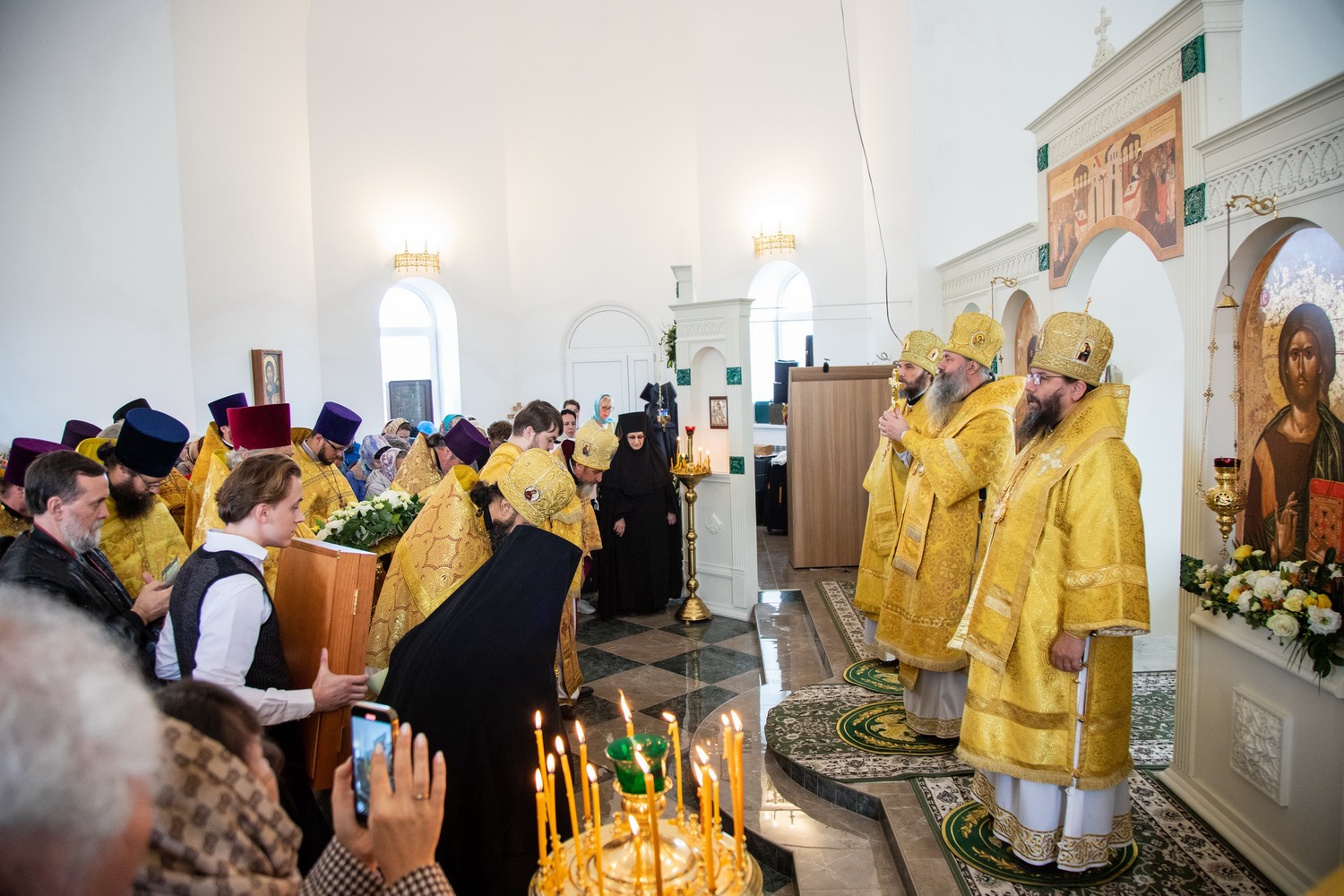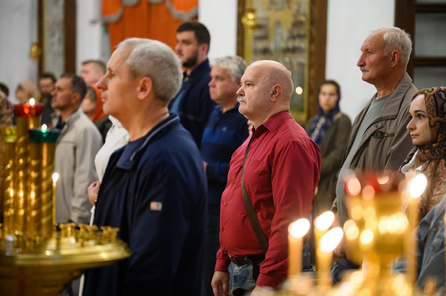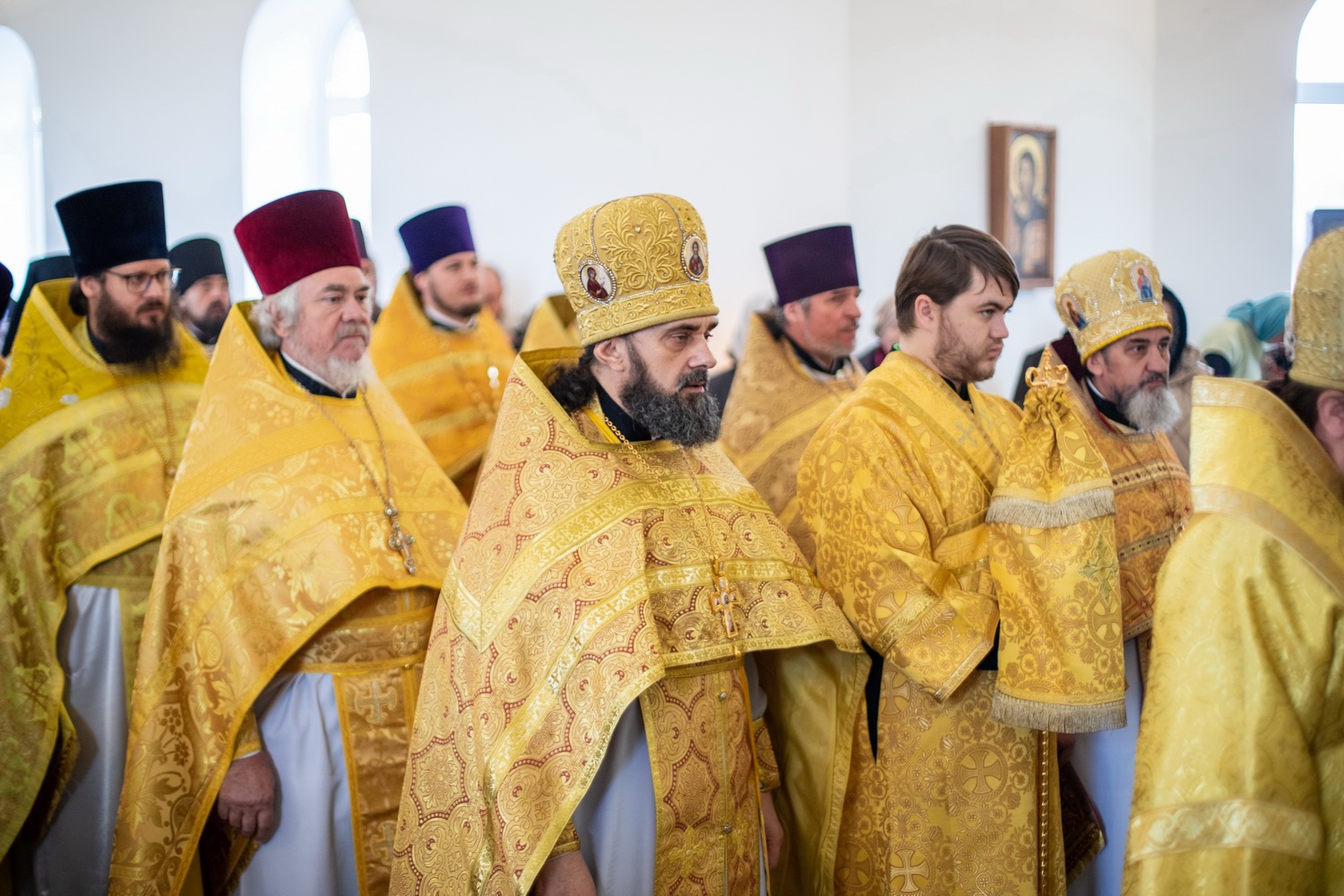 За Литургией Его Святейшеству сослужили: митрополит Воскресенский Григорий, управляющий делами Московской Патриархии, первый викарий Патриарха Московского и всея Руси по городу Москве, наместник Новоспасского ставропигиального монастыря; митрополит Владимирский и Суздальский Никандр, председатель Финансово-хозяйственного управления Московского Патриархата; митрополит Псковский и Порховский Матфей, бывший управляющий Северо-Восточным викариатством, распоряжением Святейшего Патриарха Кирилла от 2 августа 2024 года назначенный, в дополнение к несомым послушаниям, ответственным за строительство Успенского храма в Останкине; митрополит Звенигородский Арсений; епископ Раменский Алексий, личный секретарь Его Святейшества; епископ Бронницкий Иоанн, наместник Высоко-Петровского ставропигиального монастыря; протопресвитер Владимир Диваков, секретарь Патриарха Московского и всея Руси по г. Москве; протоиерей Анатолий Алефиров; протоиерей Георгий Климов; столичное духовенство.