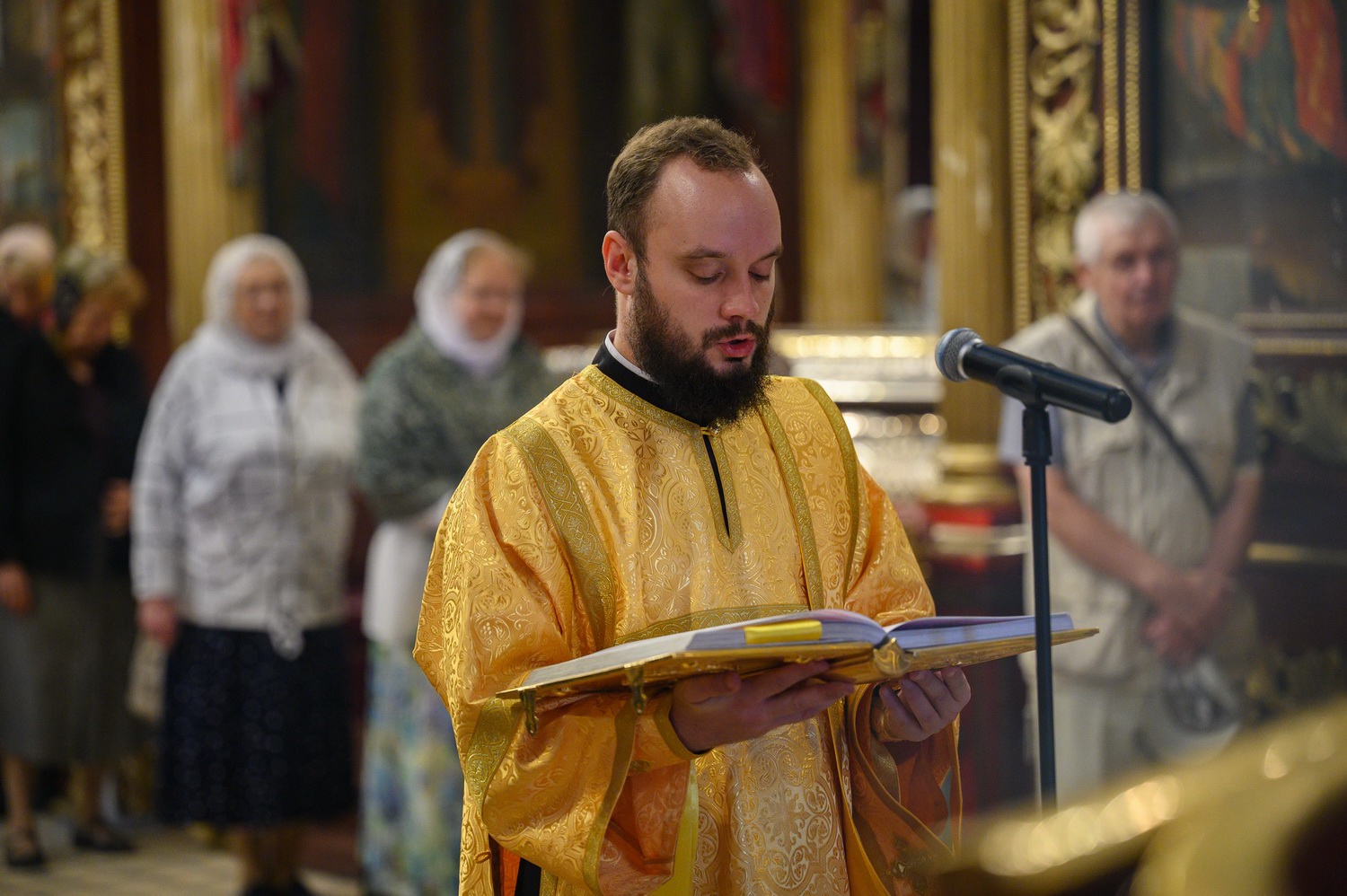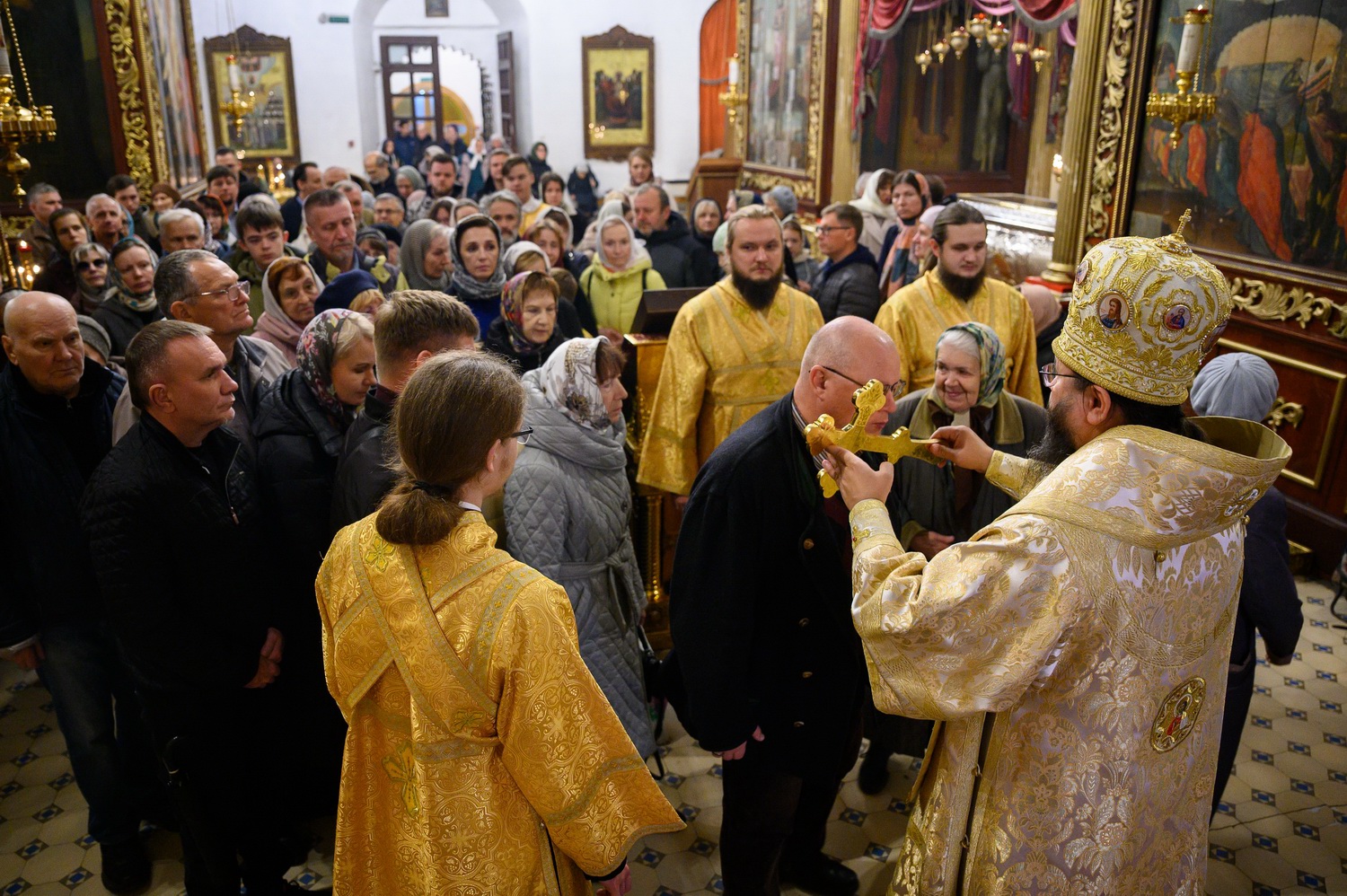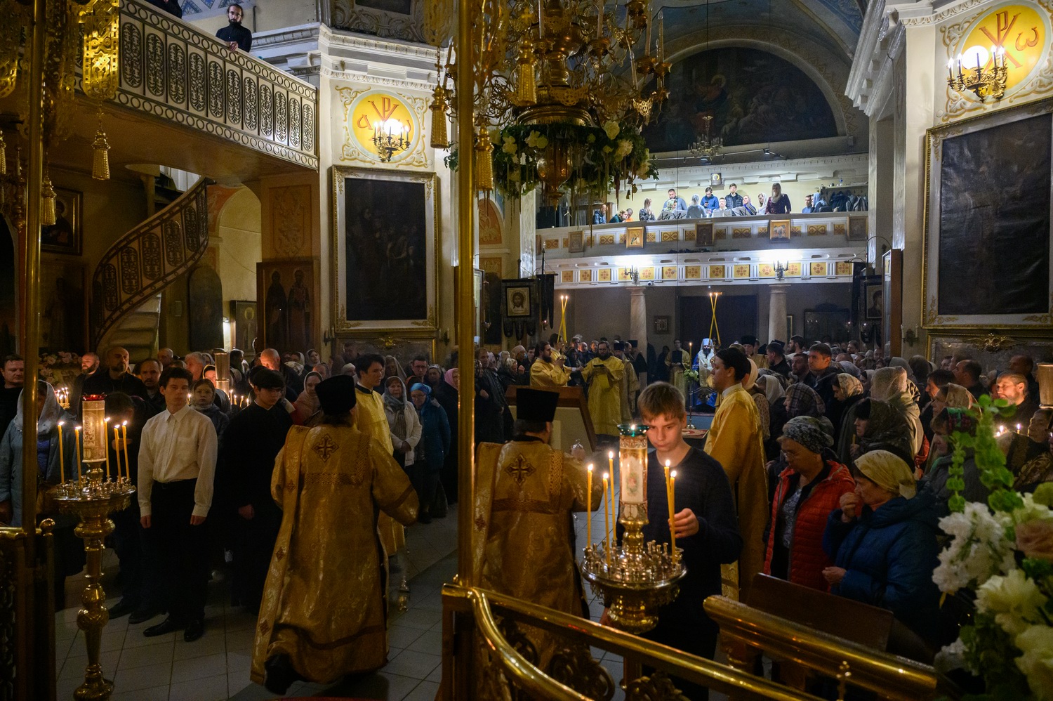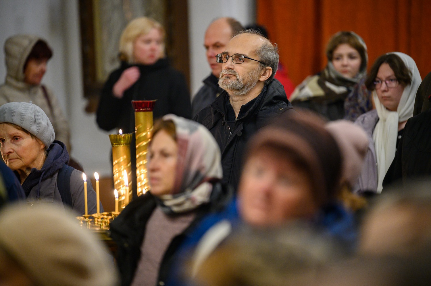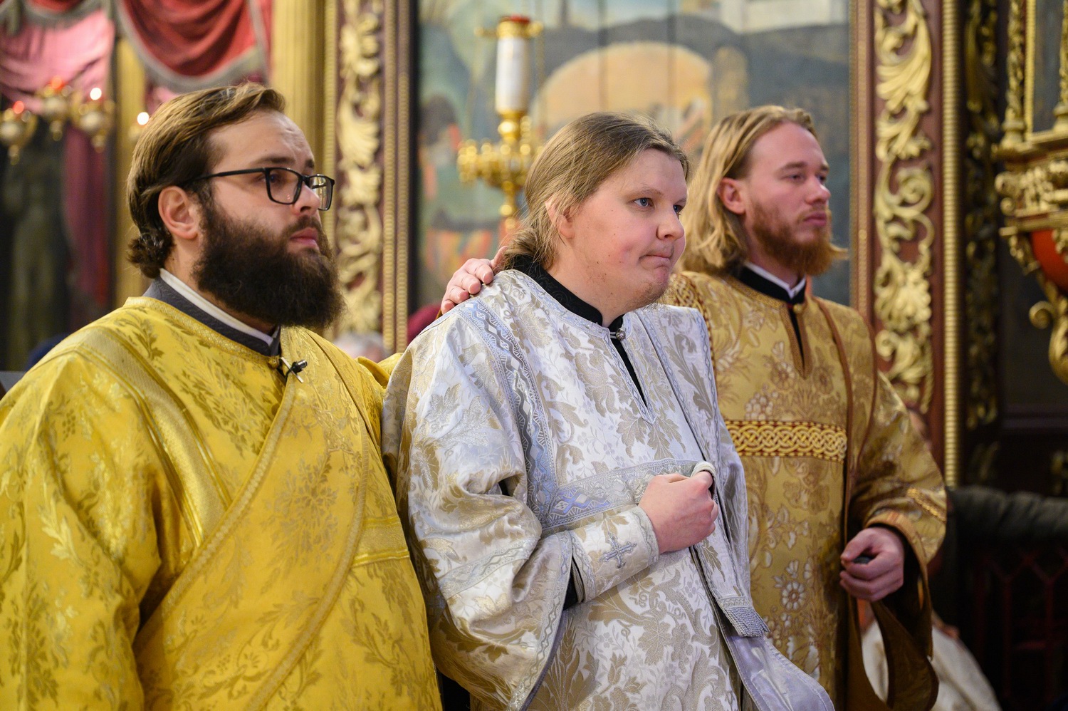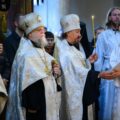 За Литургией Его Святейшеству сослужили: митрополит Воскресенский Григорий, управляющий делами Московской Патриархии, первый викарий Патриарха Московского и всея Руси по городу Москве, наместник Новоспасского ставропигиального монастыря; митрополит Владимирский и Суздальский Никандр, председатель Финансово-хозяйственного управления Московского Патриархата; митрополит Псковский и Порховский Матфей, бывший управляющий Северо-Восточным викариатством, распоряжением Святейшего Патриарха Кирилла от 2 августа 2024 года назначенный, в дополнение к несомым послушаниям, ответственным за строительство Успенского храма в Останкине; митрополит Звенигородский Арсений; епископ Раменский Алексий, личный секретарь Его Святейшества; епископ Бронницкий Иоанн, наместник Высоко-Петровского ставропигиального монастыря; протопресвитер Владимир Диваков, секретарь Патриарха Московского и всея Руси по г. Москве; протоиерей Анатолий Алефиров; протоиерей Георгий Климов; столичное духовенство.