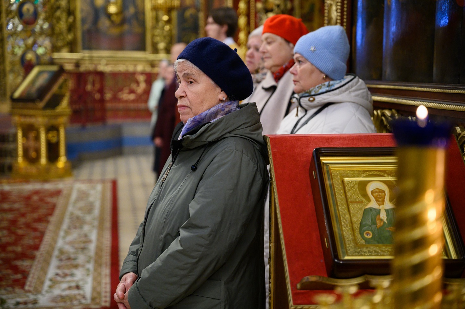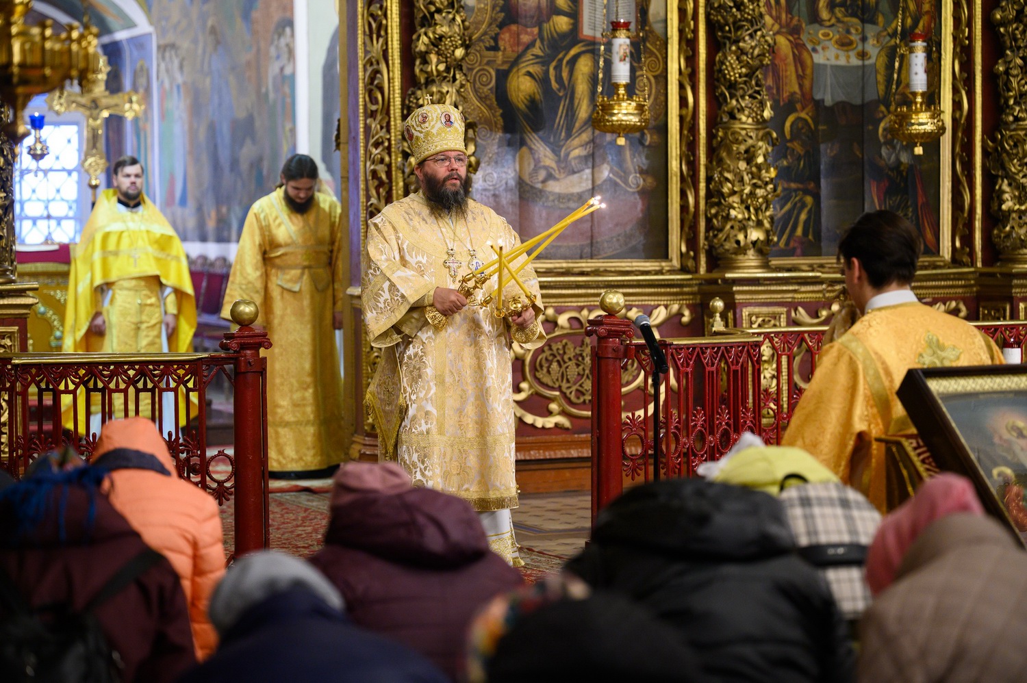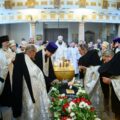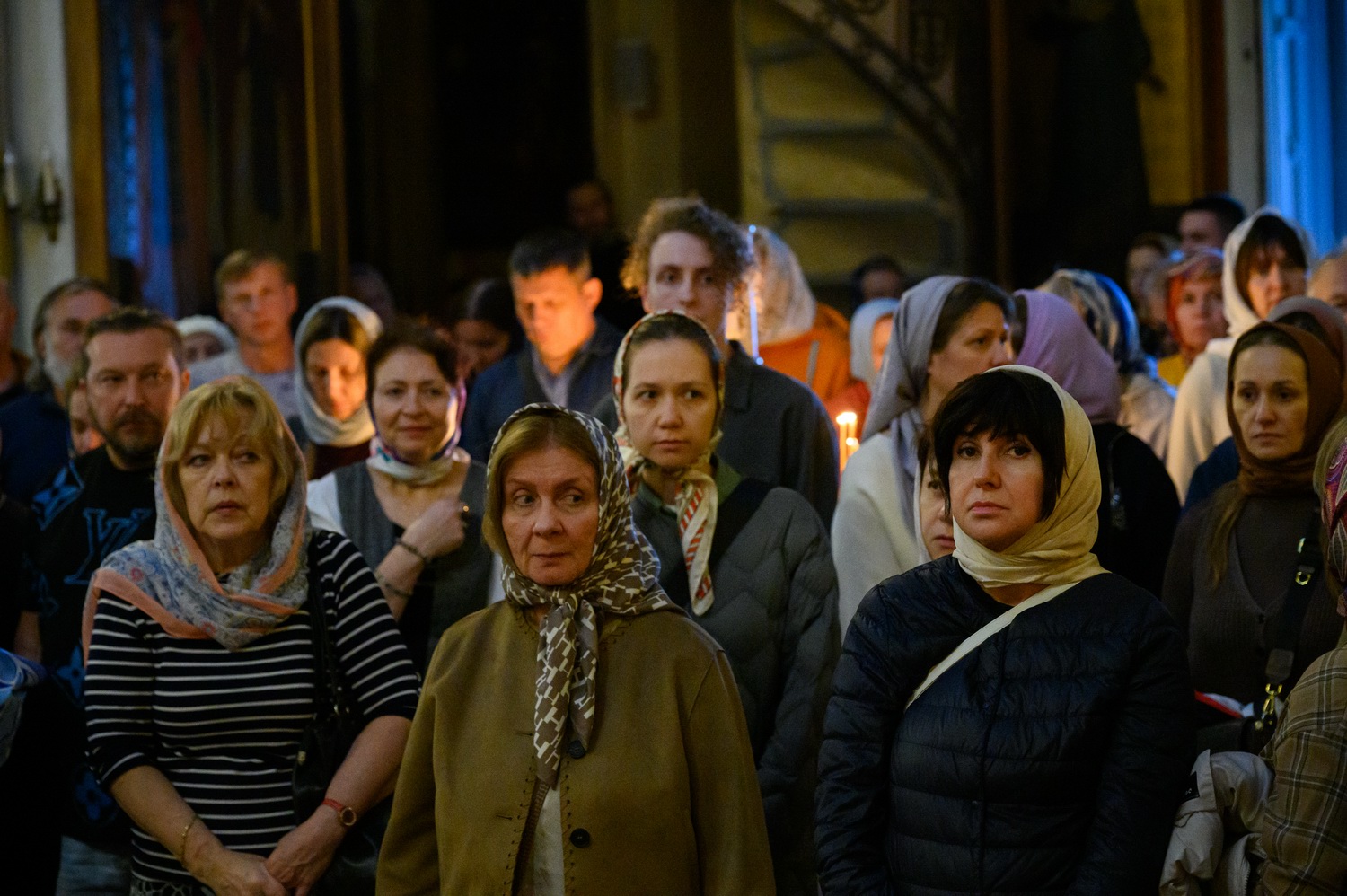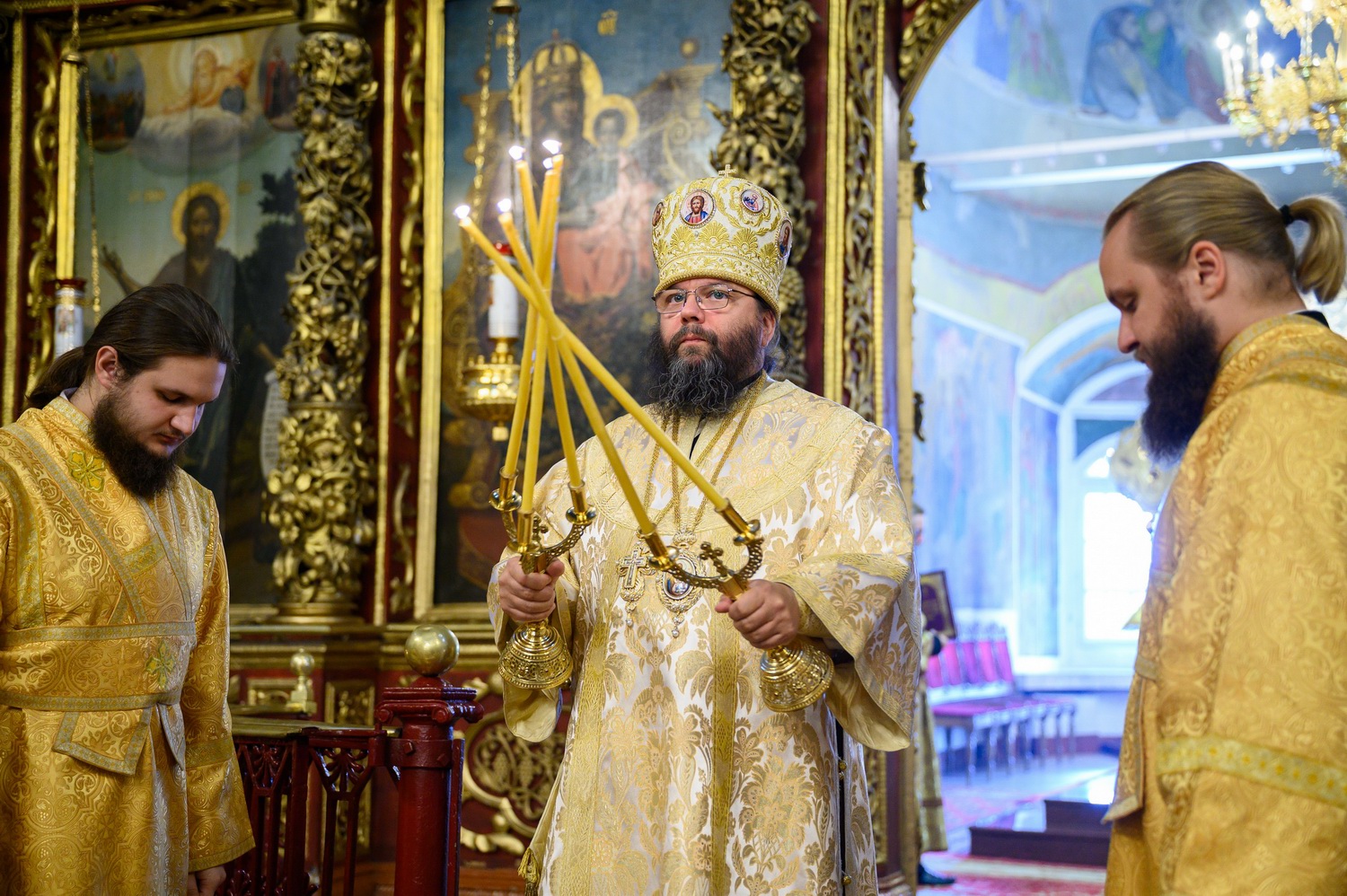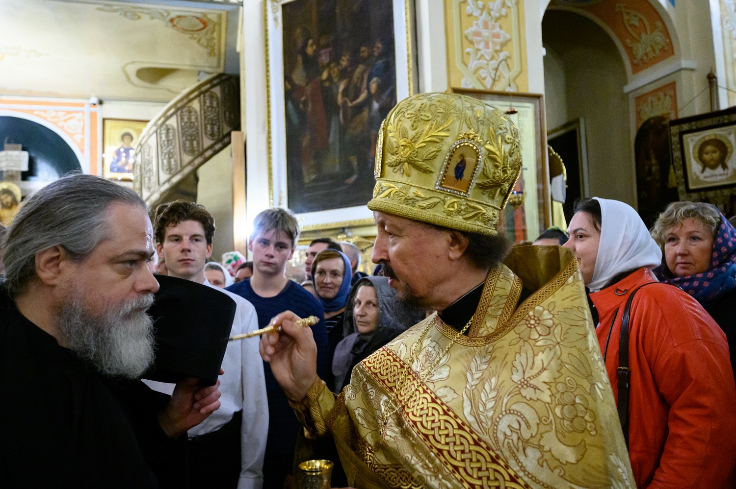 За Литургией Его Святейшеству сослужили: митрополит Воскресенский Григорий, управляющий делами Московской Патриархии, первый викарий Патриарха Московского и всея Руси по городу Москве, наместник Новоспасского ставропигиального монастыря; митрополит Владимирский и Суздальский Никандр, председатель Финансово-хозяйственного управления Московского Патриархата; митрополит Псковский и Порховский Матфей, бывший управляющий Северо-Восточным викариатством, распоряжением Святейшего Патриарха Кирилла от 2 августа 2024 года назначенный, в дополнение к несомым послушаниям, ответственным за строительство Успенского храма в Останкине; митрополит Звенигородский Арсений; епископ Раменский Алексий, личный секретарь Его Святейшества; епископ Бронницкий Иоанн, наместник Высоко-Петровского ставропигиального монастыря; протопресвитер Владимир Диваков, секретарь Патриарха Московского и всея Руси по г. Москве; протоиерей Анатолий Алефиров; протоиерей Георгий Климов; столичное духовенство.