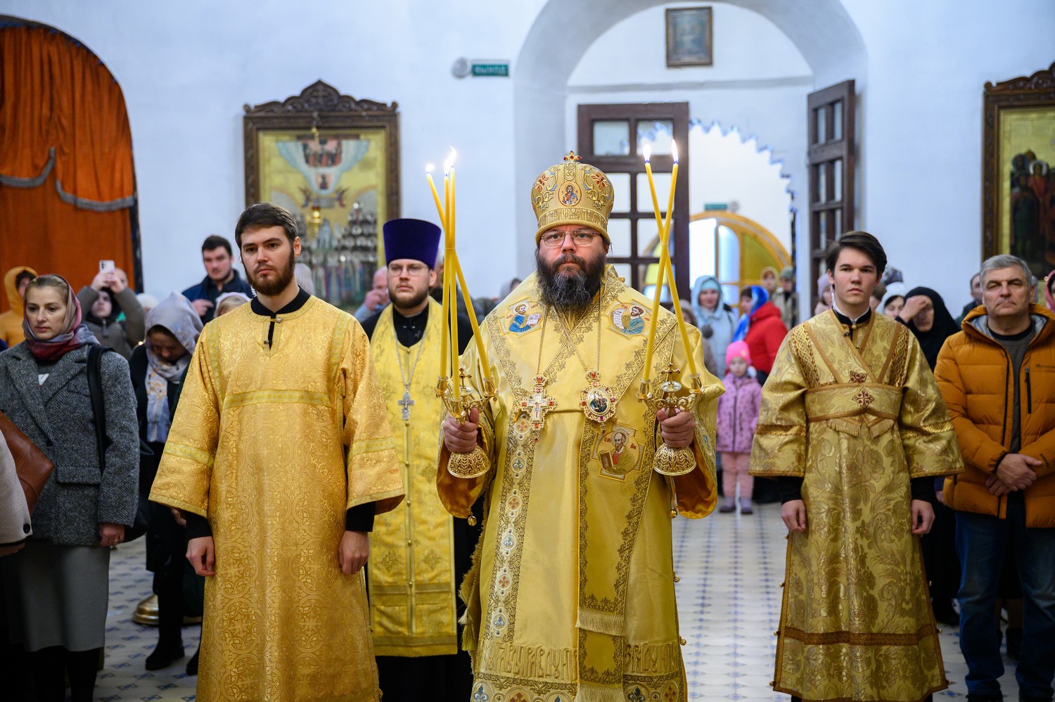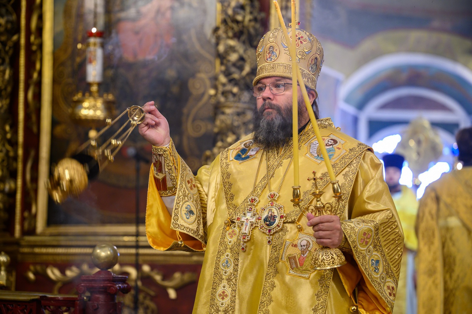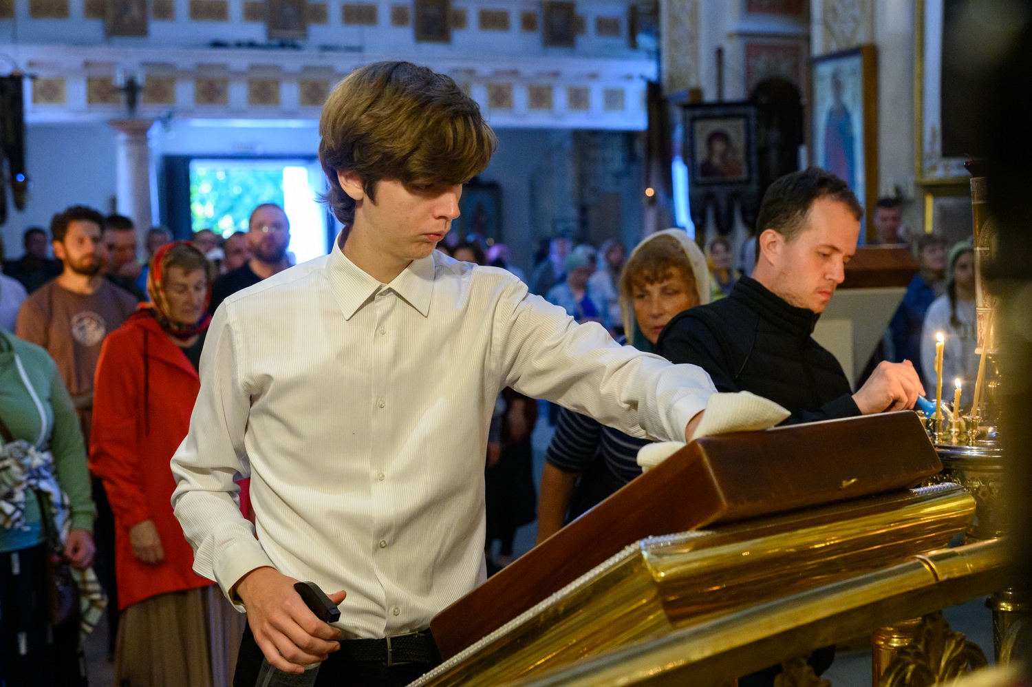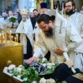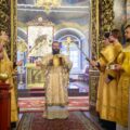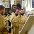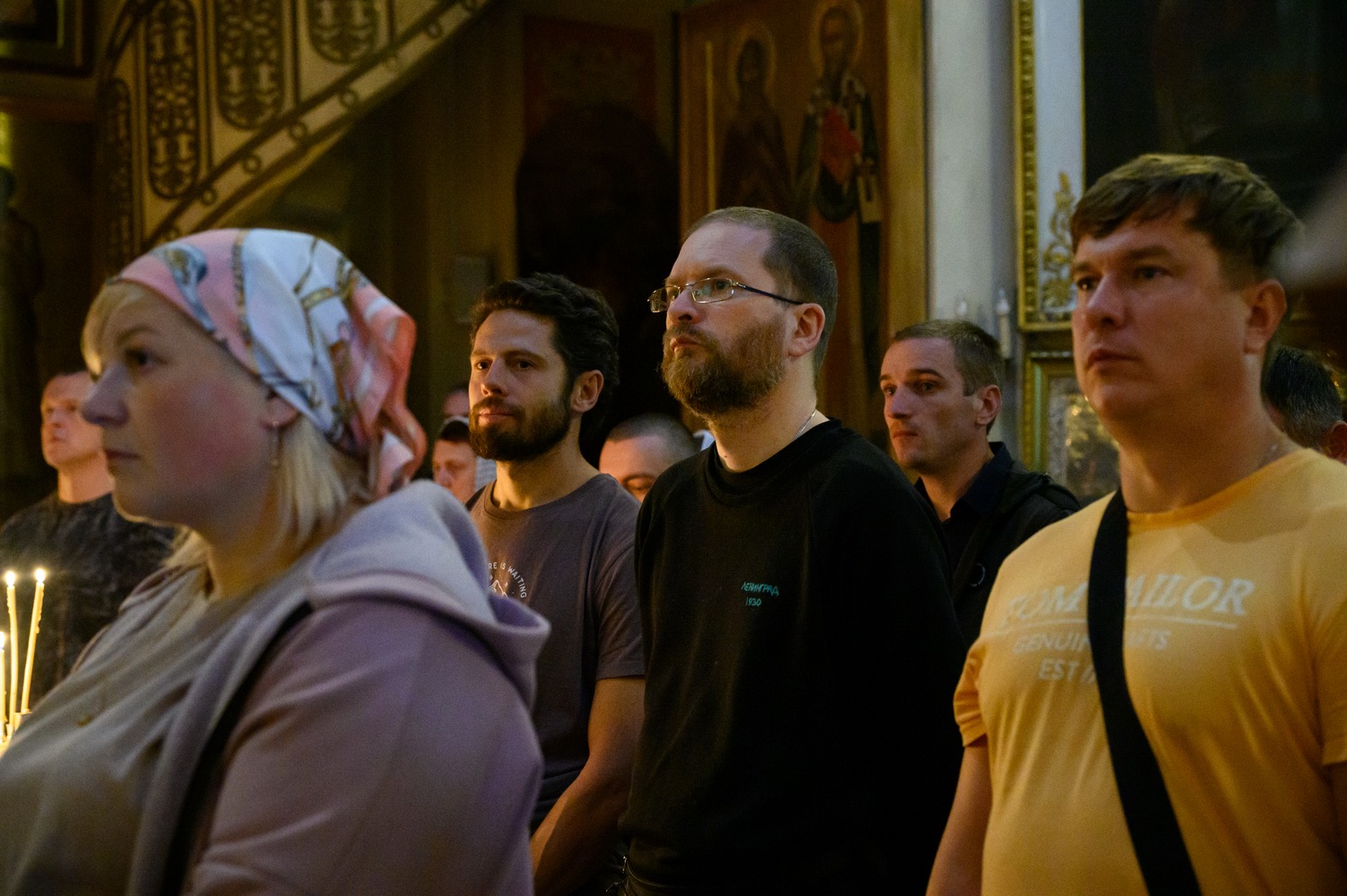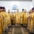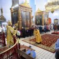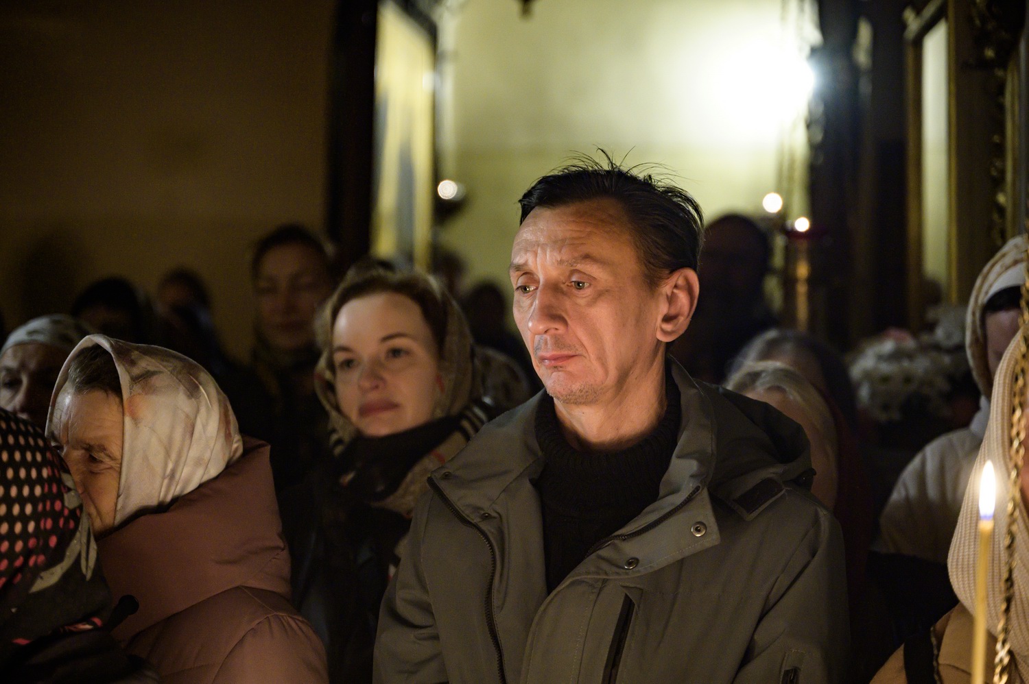 За Литургией Его Святейшеству сослужили: митрополит Воскресенский Григорий, управляющий делами Московской Патриархии, первый викарий Патриарха Московского и всея Руси по городу Москве, наместник Новоспасского ставропигиального монастыря; митрополит Владимирский и Суздальский Никандр, председатель Финансово-хозяйственного управления Московского Патриархата; митрополит Псковский и Порховский Матфей, бывший управляющий Северо-Восточным викариатством, распоряжением Святейшего Патриарха Кирилла от 2 августа 2024 года назначенный, в дополнение к несомым послушаниям, ответственным за строительство Успенского храма в Останкине; митрополит Звенигородский Арсений; епископ Раменский Алексий, личный секретарь Его Святейшества; епископ Бронницкий Иоанн, наместник Высоко-Петровского ставропигиального монастыря; протопресвитер Владимир Диваков, секретарь Патриарха Московского и всея Руси по г. Москве; протоиерей Анатолий Алефиров; протоиерей Георгий Климов; столичное духовенство.
