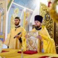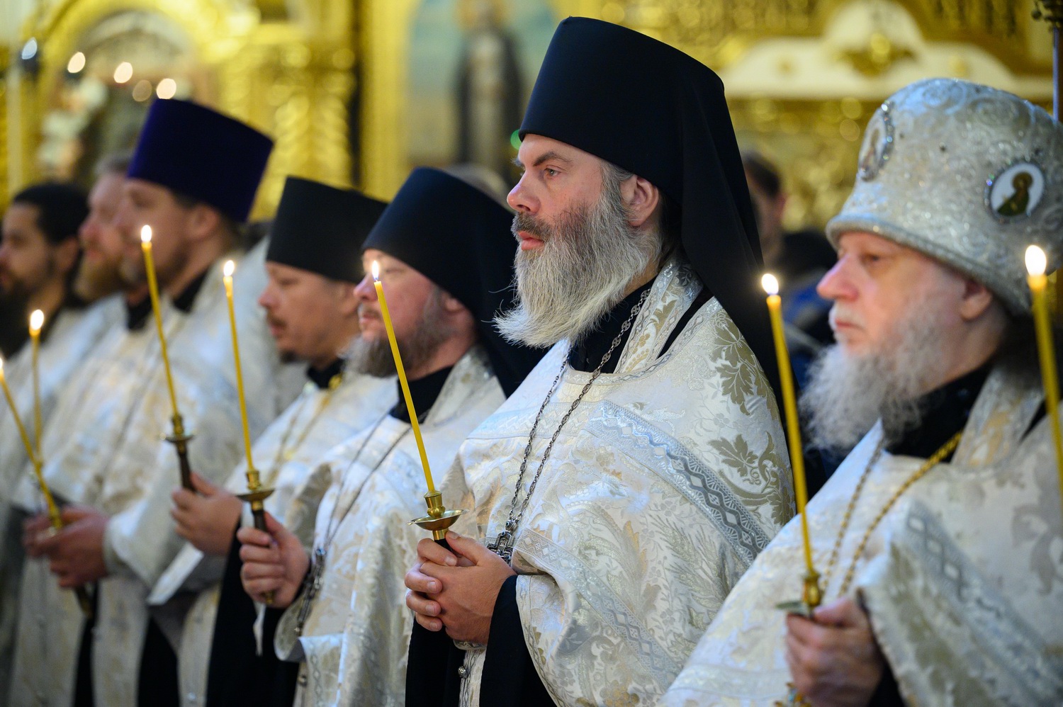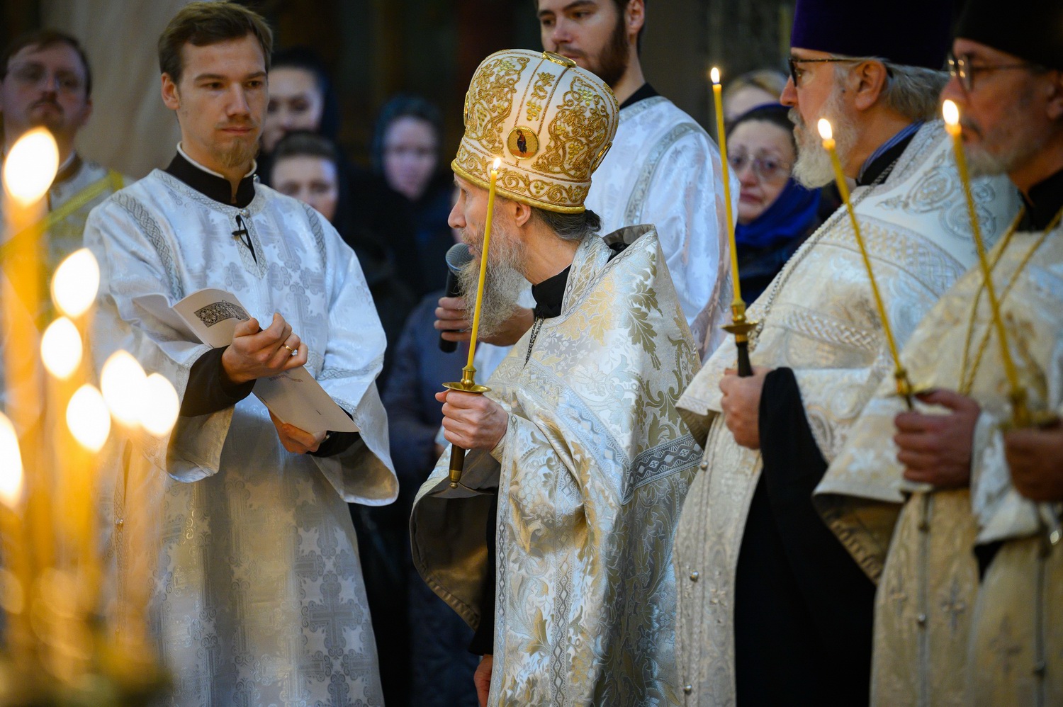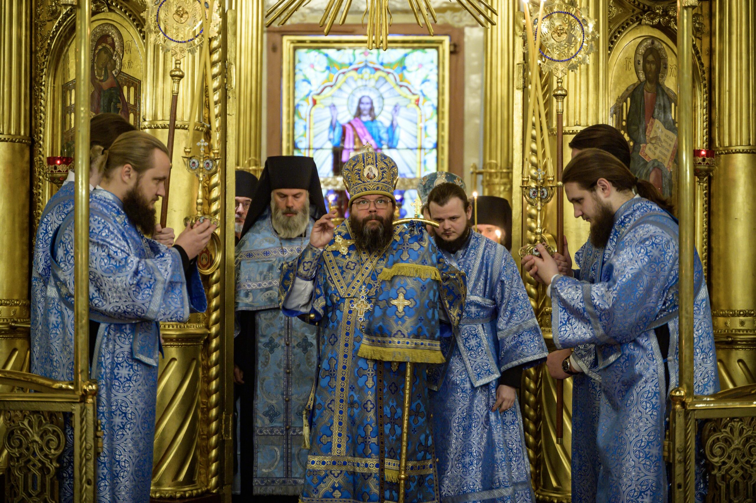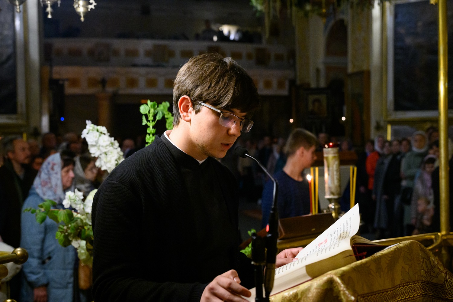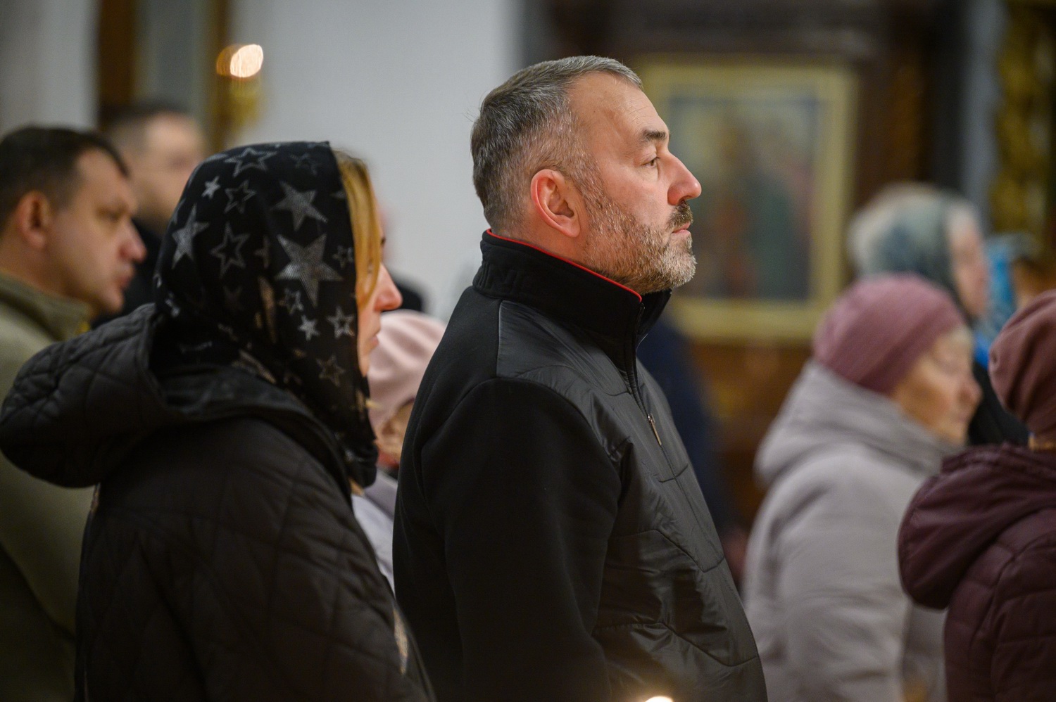 За Литургией Его Святейшеству сослужили: митрополит Воскресенский Григорий, управляющий делами Московской Патриархии, первый викарий Патриарха Московского и всея Руси по городу Москве, наместник Новоспасского ставропигиального монастыря; митрополит Владимирский и Суздальский Никандр, председатель Финансово-хозяйственного управления Московского Патриархата; митрополит Псковский и Порховский Матфей, бывший управляющий Северо-Восточным викариатством, распоряжением Святейшего Патриарха Кирилла от 2 августа 2024 года назначенный, в дополнение к несомым послушаниям, ответственным за строительство Успенского храма в Останкине; митрополит Звенигородский Арсений; епископ Раменский Алексий, личный секретарь Его Святейшества; епископ Бронницкий Иоанн, наместник Высоко-Петровского ставропигиального монастыря; протопресвитер Владимир Диваков, секретарь Патриарха Московского и всея Руси по г. Москве; протоиерей Анатолий Алефиров; протоиерей Георгий Климов; столичное духовенство.