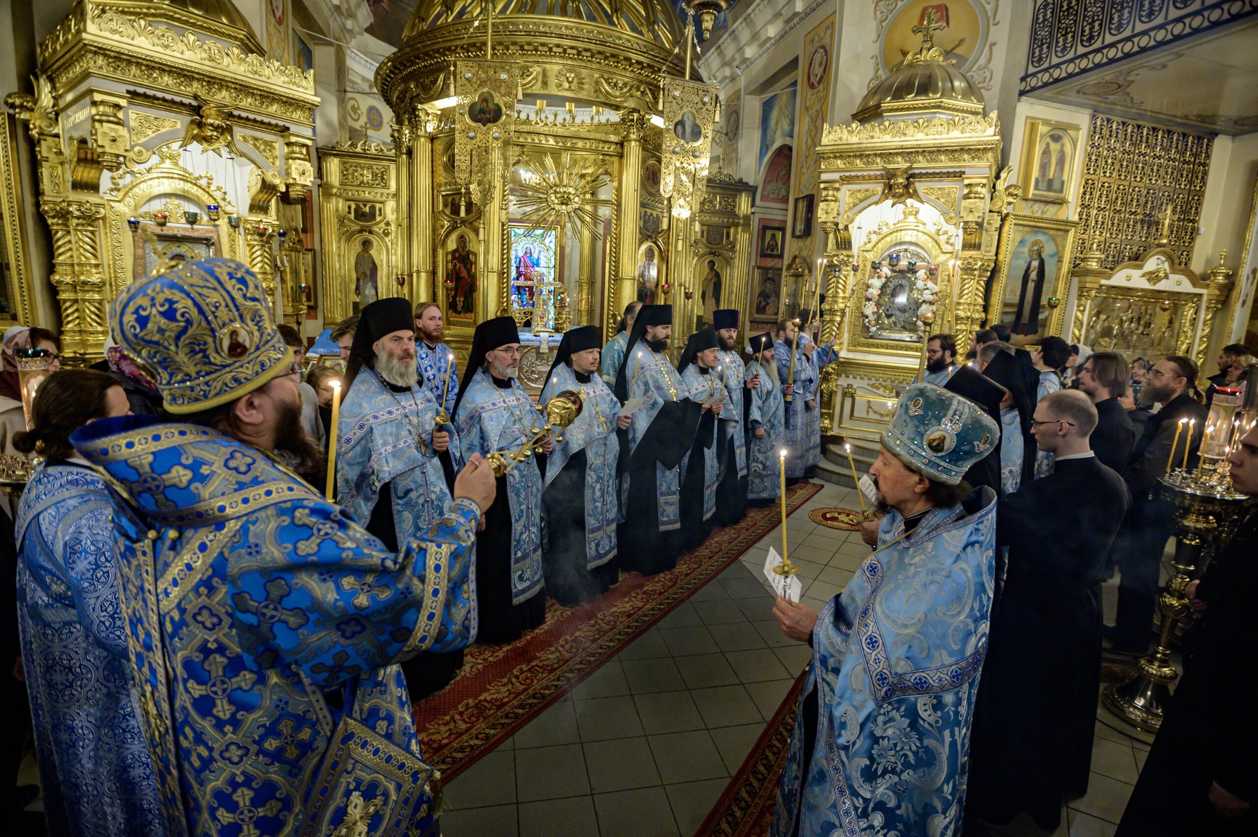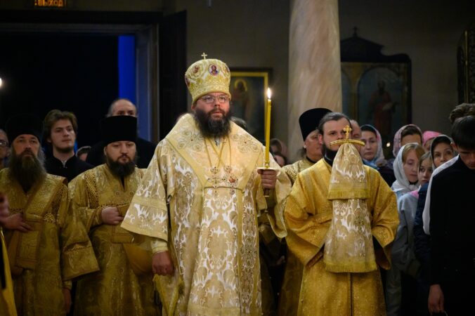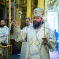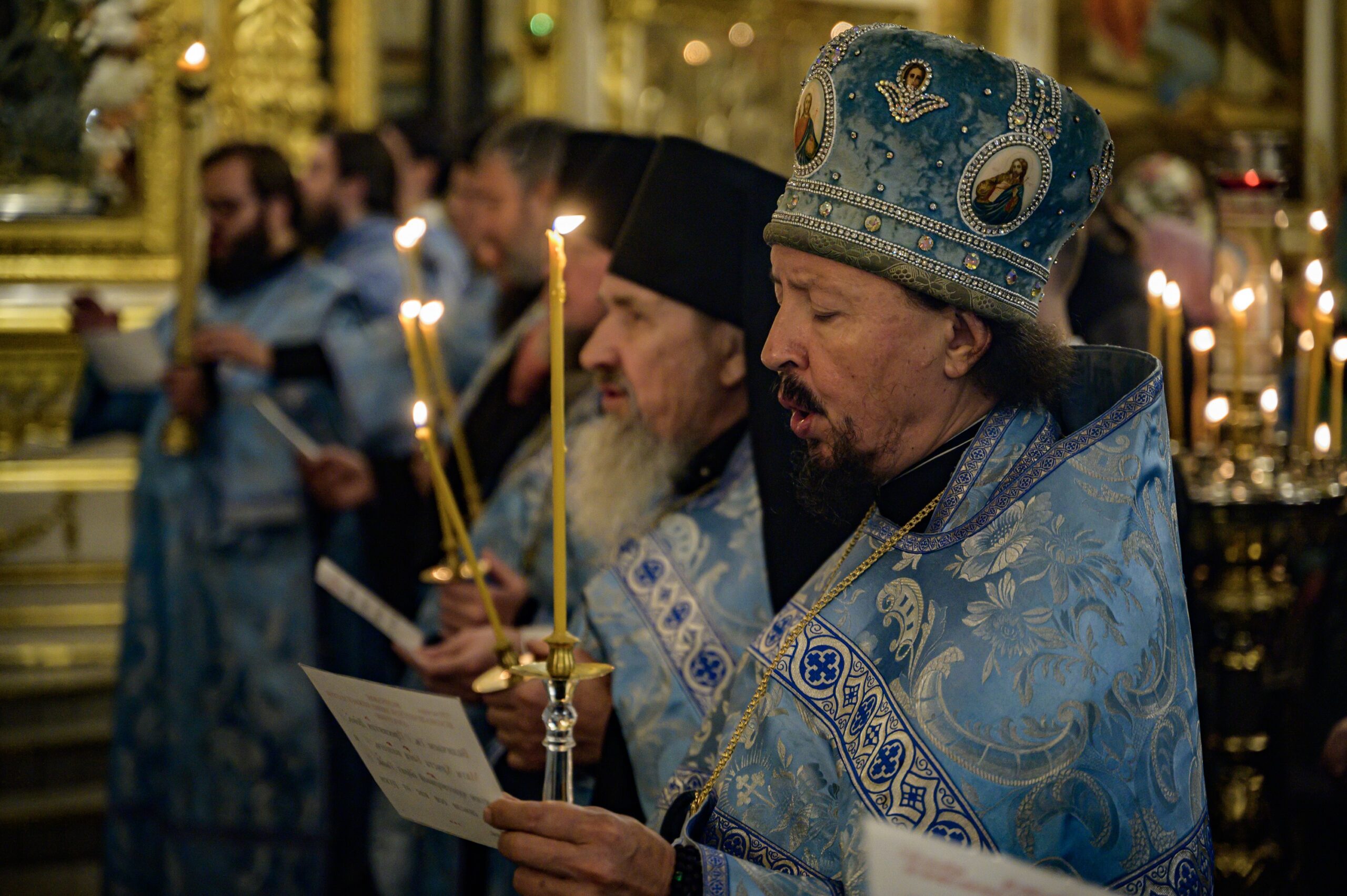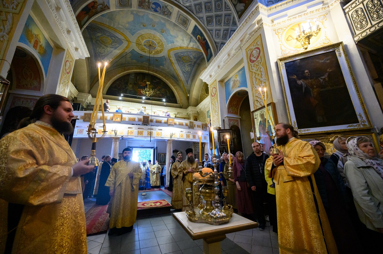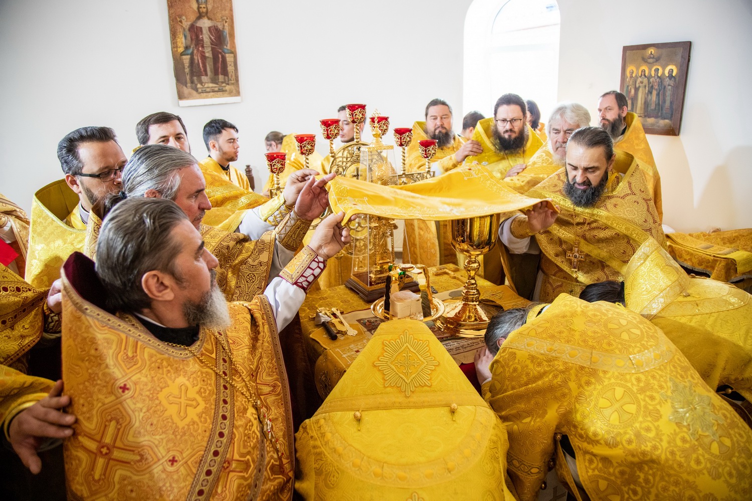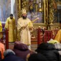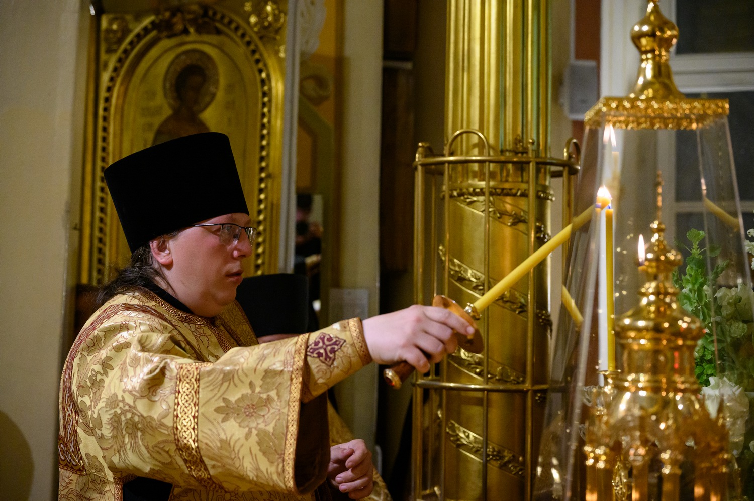 За Литургией Его Святейшеству сослужили: митрополит Воскресенский Григорий, управляющий делами Московской Патриархии, первый викарий Патриарха Московского и всея Руси по городу Москве, наместник Новоспасского ставропигиального монастыря; митрополит Владимирский и Суздальский Никандр, председатель Финансово-хозяйственного управления Московского Патриархата; митрополит Псковский и Порховский Матфей, бывший управляющий Северо-Восточным викариатством, распоряжением Святейшего Патриарха Кирилла от 2 августа 2024 года назначенный, в дополнение к несомым послушаниям, ответственным за строительство Успенского храма в Останкине; митрополит Звенигородский Арсений; епископ Раменский Алексий, личный секретарь Его Святейшества; епископ Бронницкий Иоанн, наместник Высоко-Петровского ставропигиального монастыря; протопресвитер Владимир Диваков, секретарь Патриарха Московского и всея Руси по г. Москве; протоиерей Анатолий Алефиров; протоиерей Георгий Климов; столичное духовенство.
