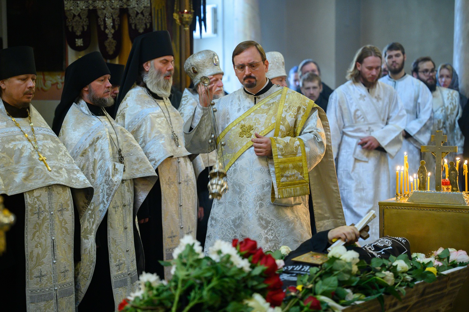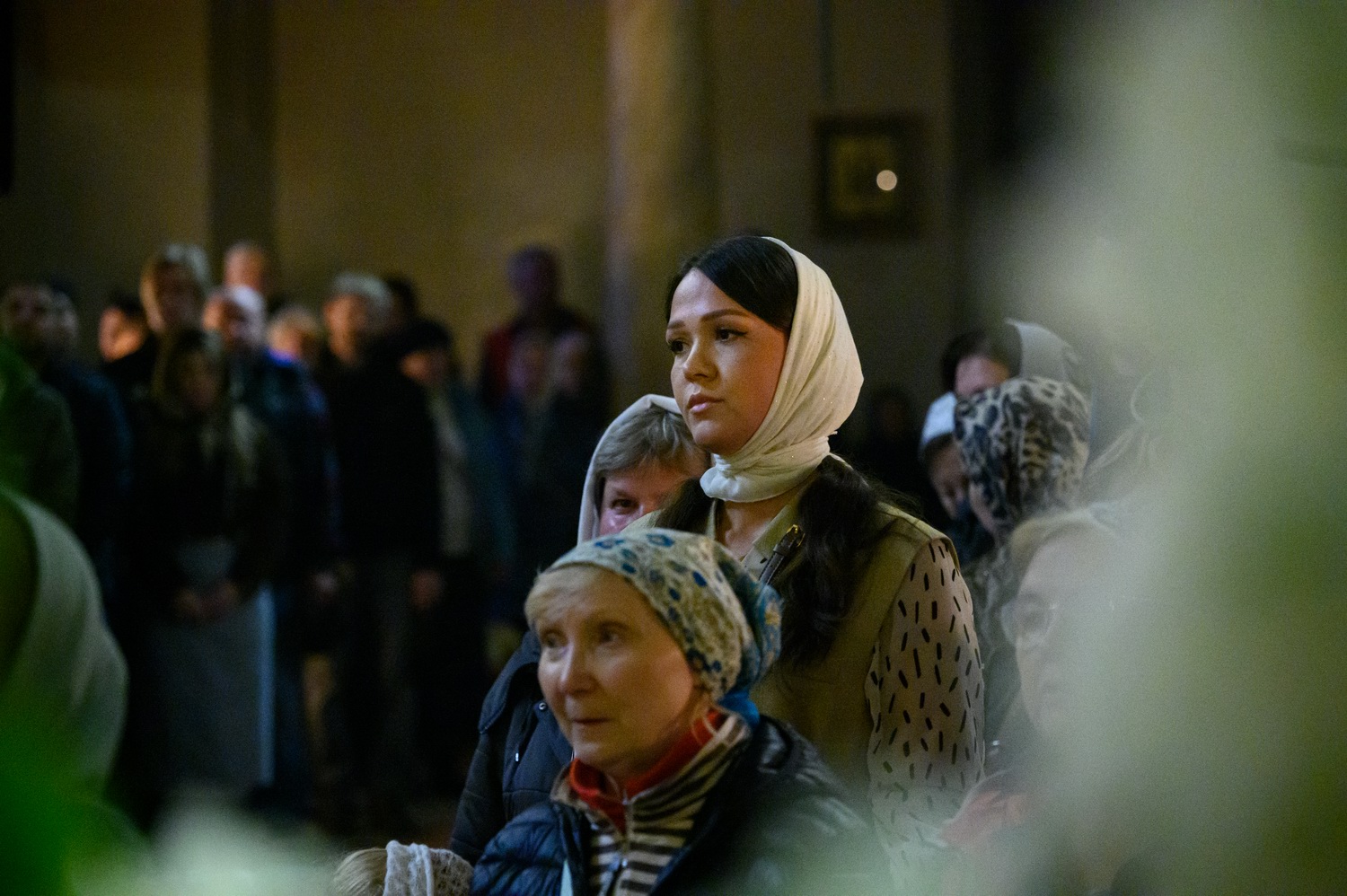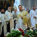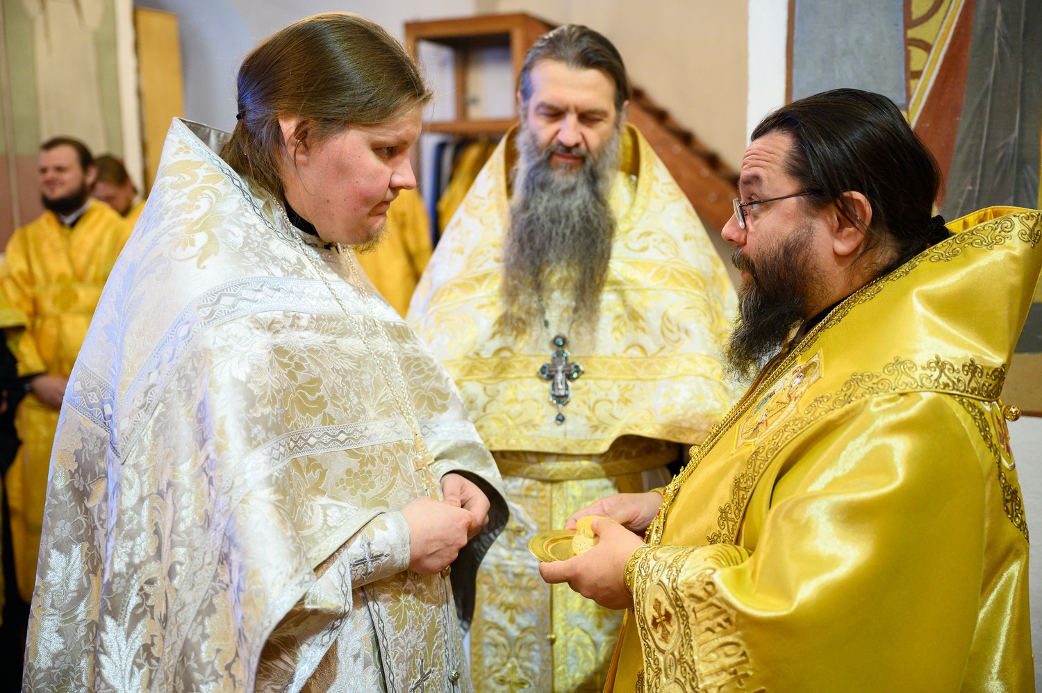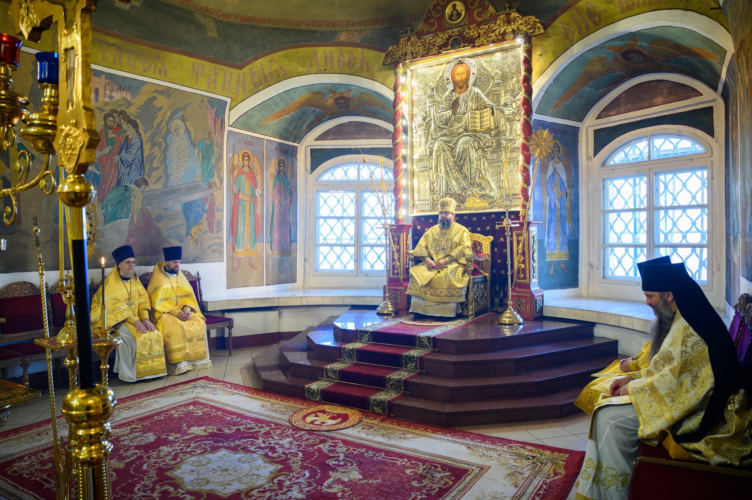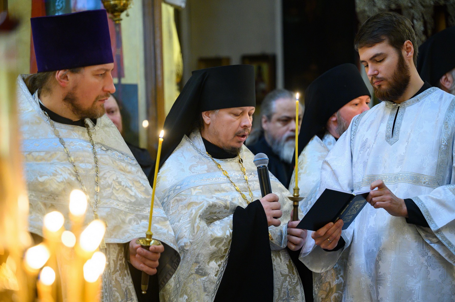 За Литургией Его Святейшеству сослужили: митрополит Воскресенский Григорий, управляющий делами Московской Патриархии, первый викарий Патриарха Московского и всея Руси по городу Москве, наместник Новоспасского ставропигиального монастыря; митрополит Владимирский и Суздальский Никандр, председатель Финансово-хозяйственного управления Московского Патриархата; митрополит Псковский и Порховский Матфей, бывший управляющий Северо-Восточным викариатством, распоряжением Святейшего Патриарха Кирилла от 2 августа 2024 года назначенный, в дополнение к несомым послушаниям, ответственным за строительство Успенского храма в Останкине; митрополит Звенигородский Арсений; епископ Раменский Алексий, личный секретарь Его Святейшества; епископ Бронницкий Иоанн, наместник Высоко-Петровского ставропигиального монастыря; протопресвитер Владимир Диваков, секретарь Патриарха Московского и всея Руси по г. Москве; протоиерей Анатолий Алефиров; протоиерей Георгий Климов; столичное духовенство.