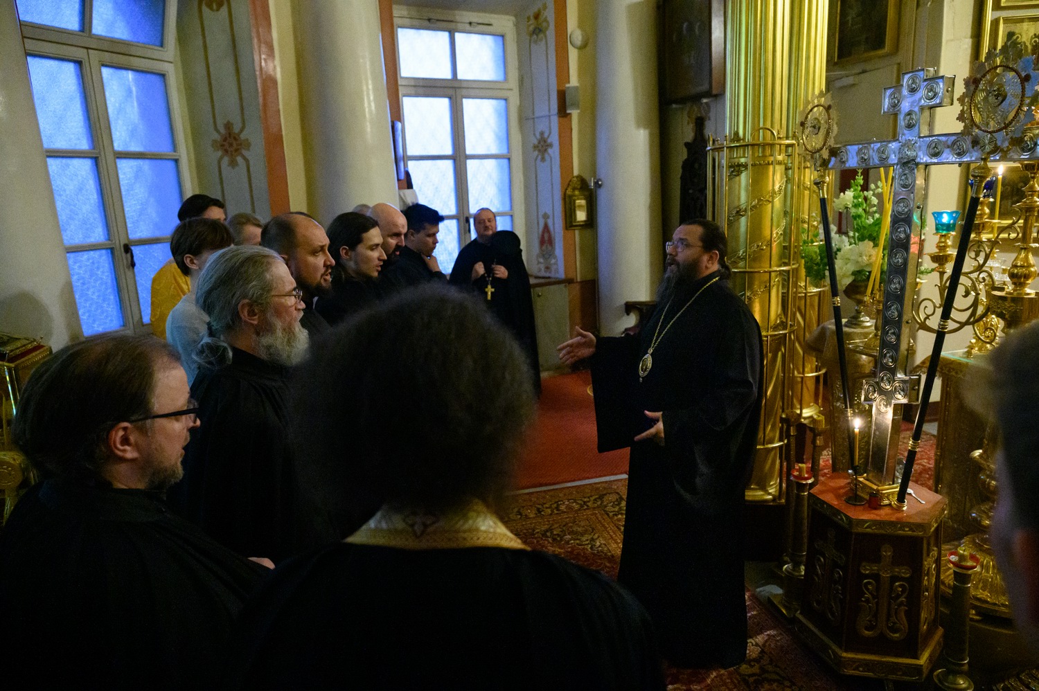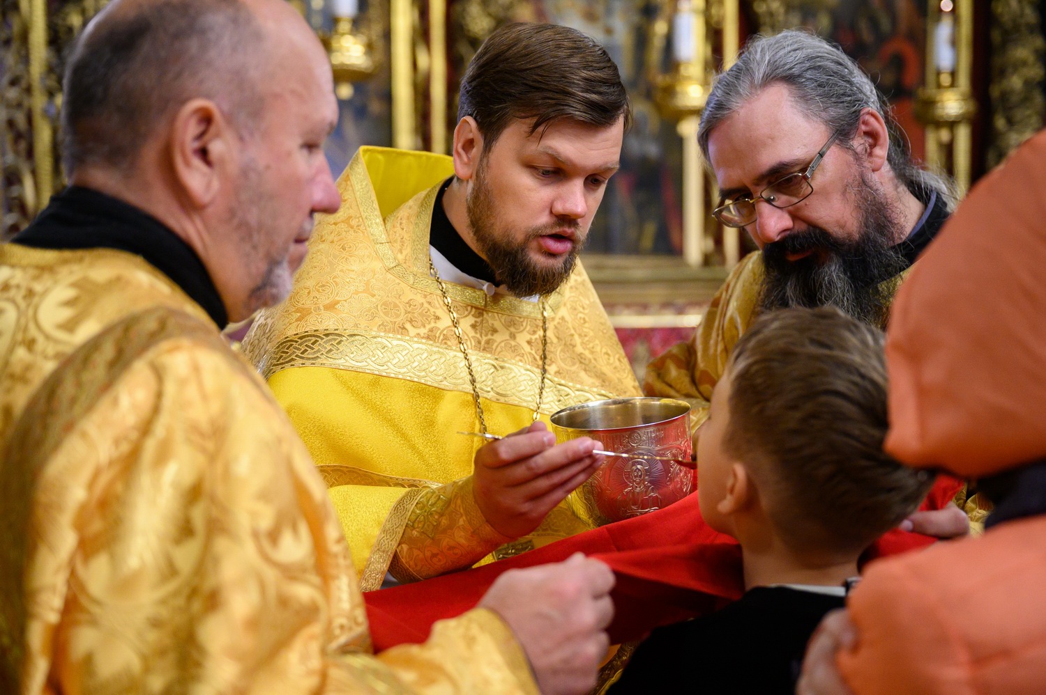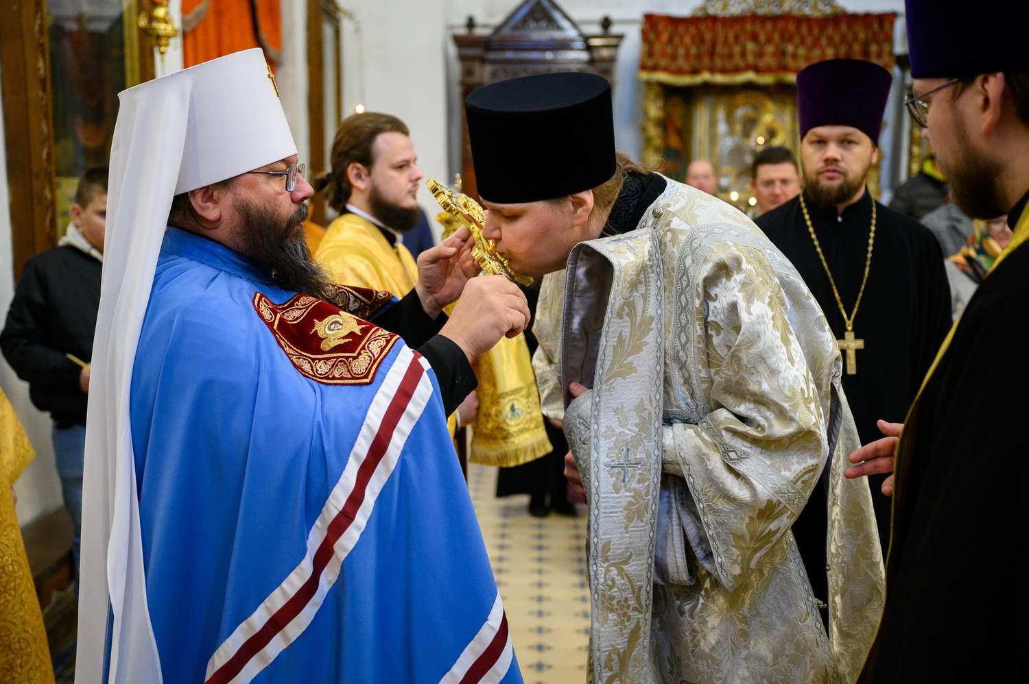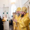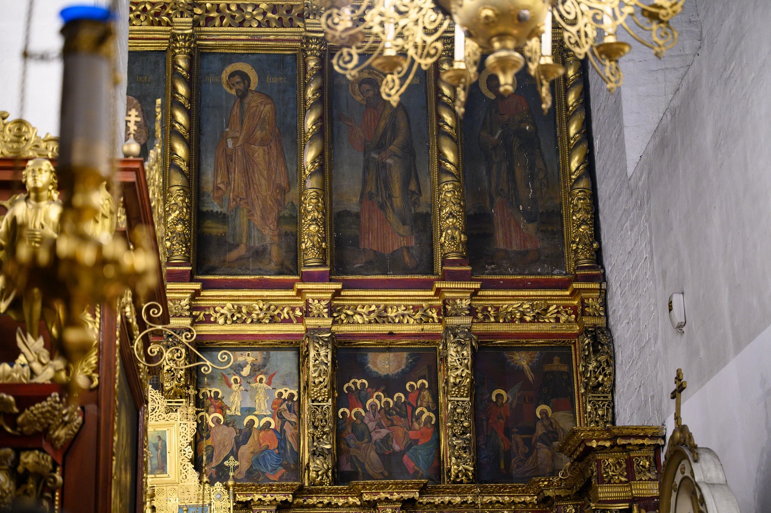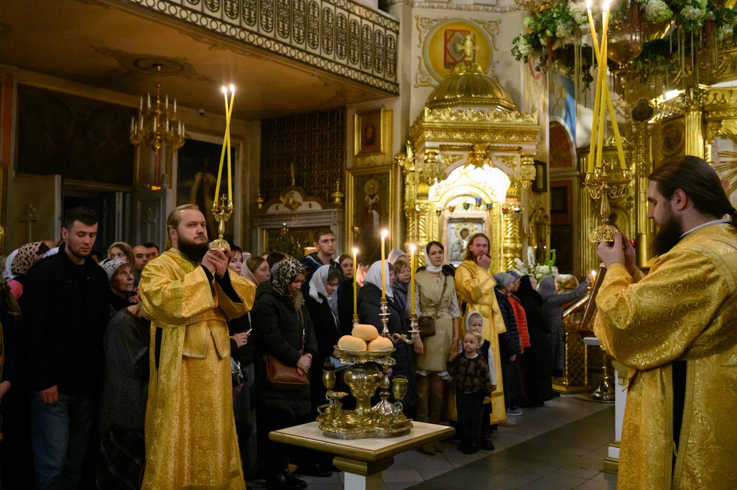 За Литургией Его Святейшеству сослужили: митрополит Воскресенский Григорий, управляющий делами Московской Патриархии, первый викарий Патриарха Московского и всея Руси по городу Москве, наместник Новоспасского ставропигиального монастыря; митрополит Владимирский и Суздальский Никандр, председатель Финансово-хозяйственного управления Московского Патриархата; митрополит Псковский и Порховский Матфей, бывший управляющий Северо-Восточным викариатством, распоряжением Святейшего Патриарха Кирилла от 2 августа 2024 года назначенный, в дополнение к несомым послушаниям, ответственным за строительство Успенского храма в Останкине; митрополит Звенигородский Арсений; епископ Раменский Алексий, личный секретарь Его Святейшества; епископ Бронницкий Иоанн, наместник Высоко-Петровского ставропигиального монастыря; протопресвитер Владимир Диваков, секретарь Патриарха Московского и всея Руси по г. Москве; протоиерей Анатолий Алефиров; протоиерей Георгий Климов; столичное духовенство.
