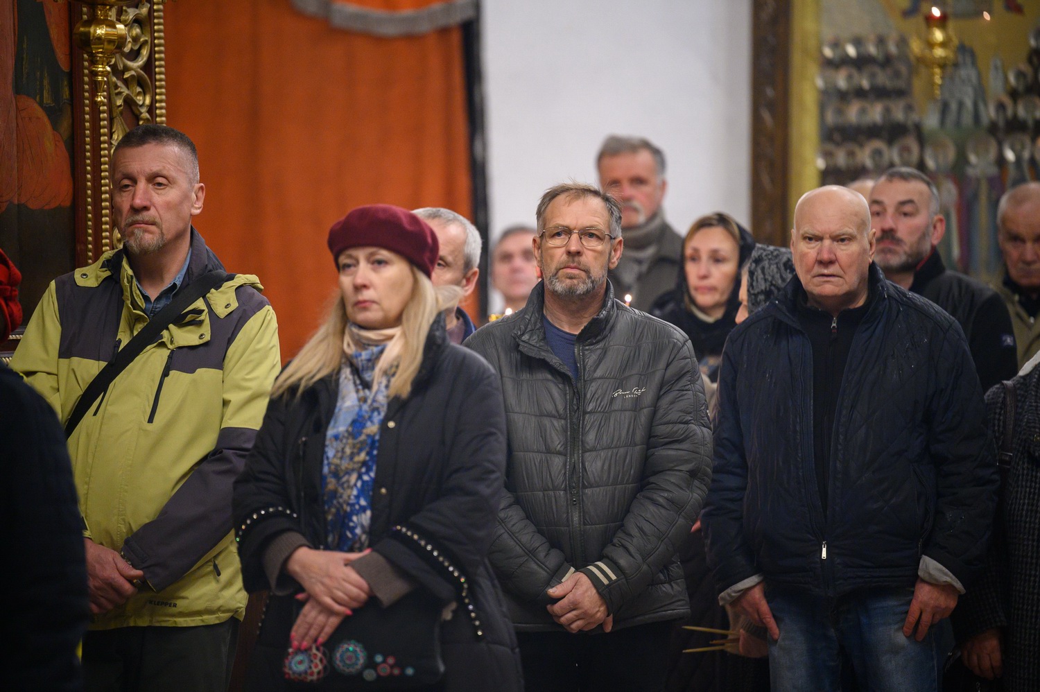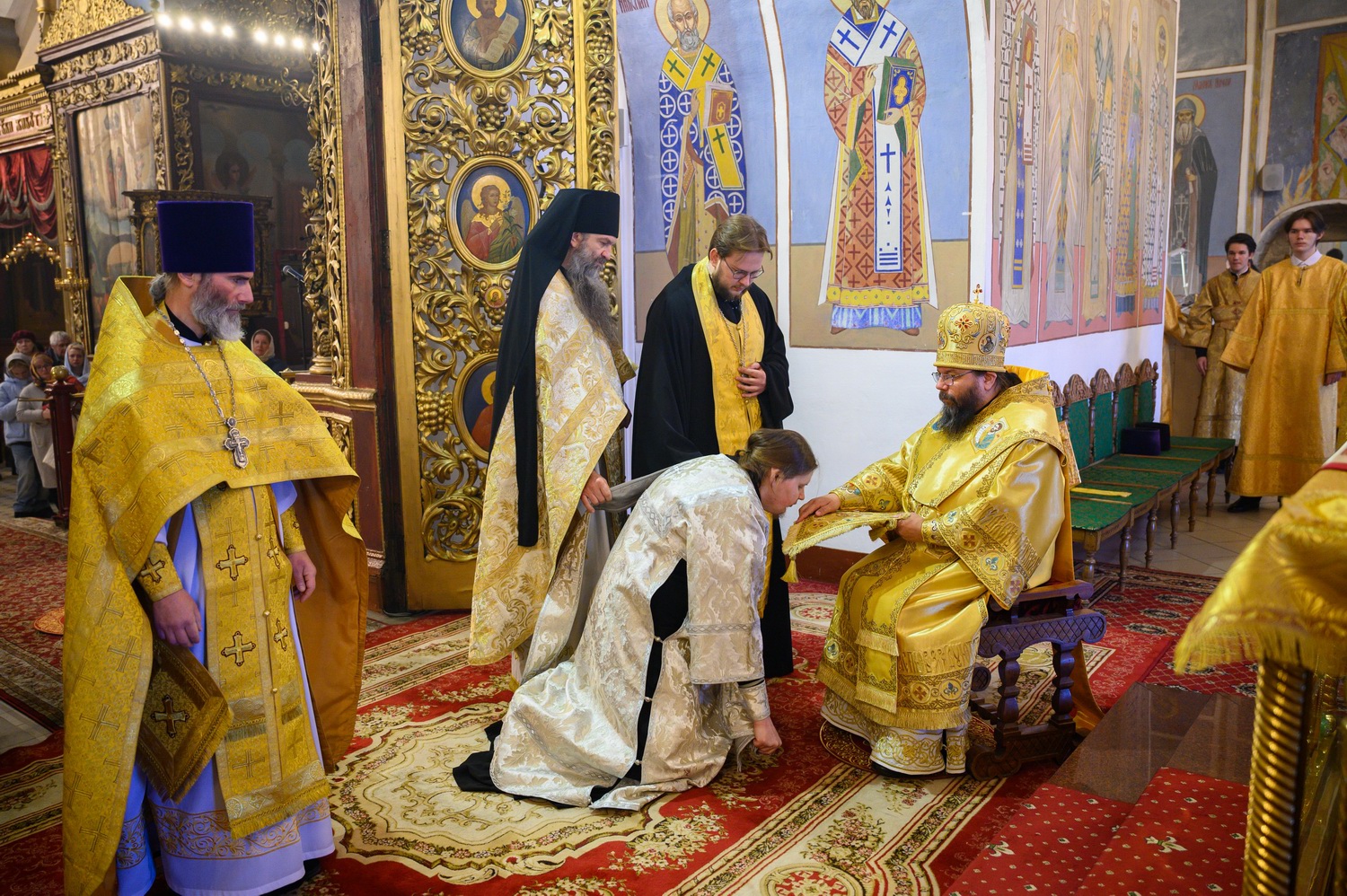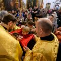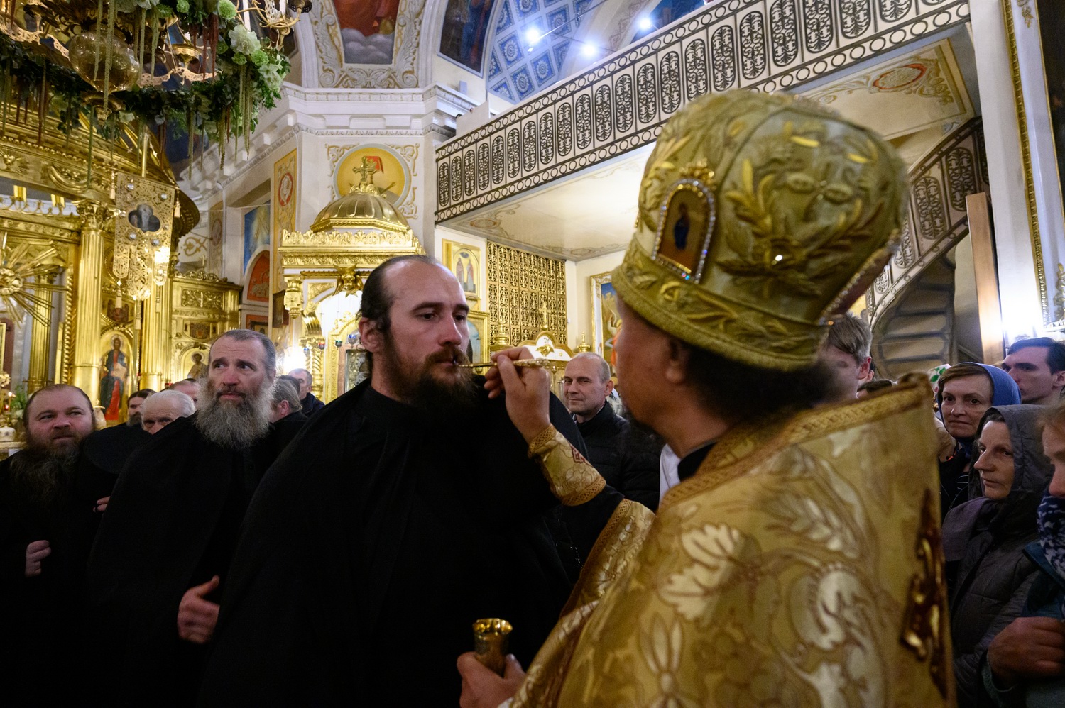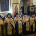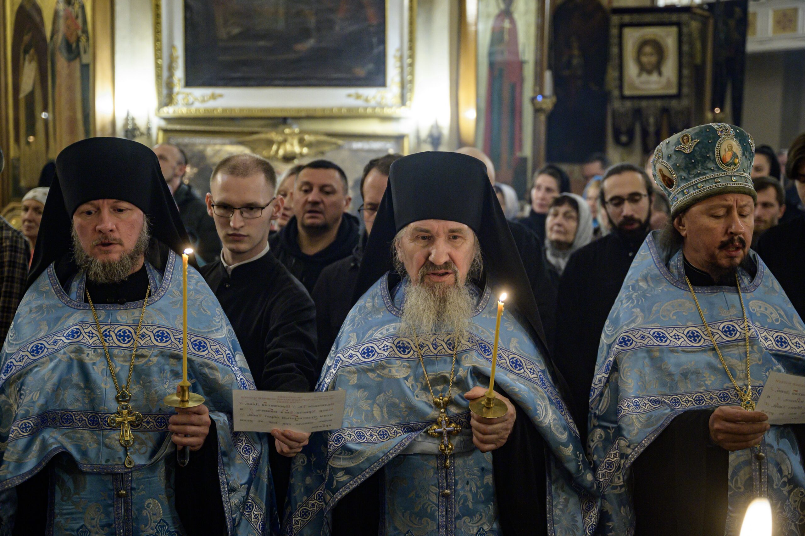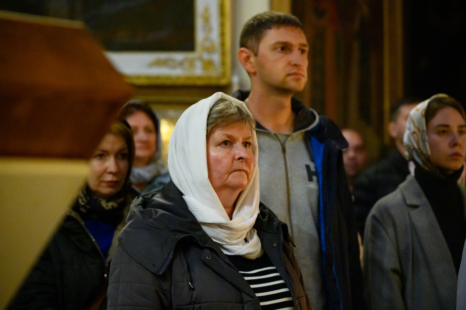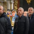 За Литургией Его Святейшеству сослужили: митрополит Воскресенский Григорий, управляющий делами Московской Патриархии, первый викарий Патриарха Московского и всея Руси по городу Москве, наместник Новоспасского ставропигиального монастыря; митрополит Владимирский и Суздальский Никандр, председатель Финансово-хозяйственного управления Московского Патриархата; митрополит Псковский и Порховский Матфей, бывший управляющий Северо-Восточным викариатством, распоряжением Святейшего Патриарха Кирилла от 2 августа 2024 года назначенный, в дополнение к несомым послушаниям, ответственным за строительство Успенского храма в Останкине; митрополит Звенигородский Арсений; епископ Раменский Алексий, личный секретарь Его Святейшества; епископ Бронницкий Иоанн, наместник Высоко-Петровского ставропигиального монастыря; протопресвитер Владимир Диваков, секретарь Патриарха Московского и всея Руси по г. Москве; протоиерей Анатолий Алефиров; протоиерей Георгий Климов; столичное духовенство.