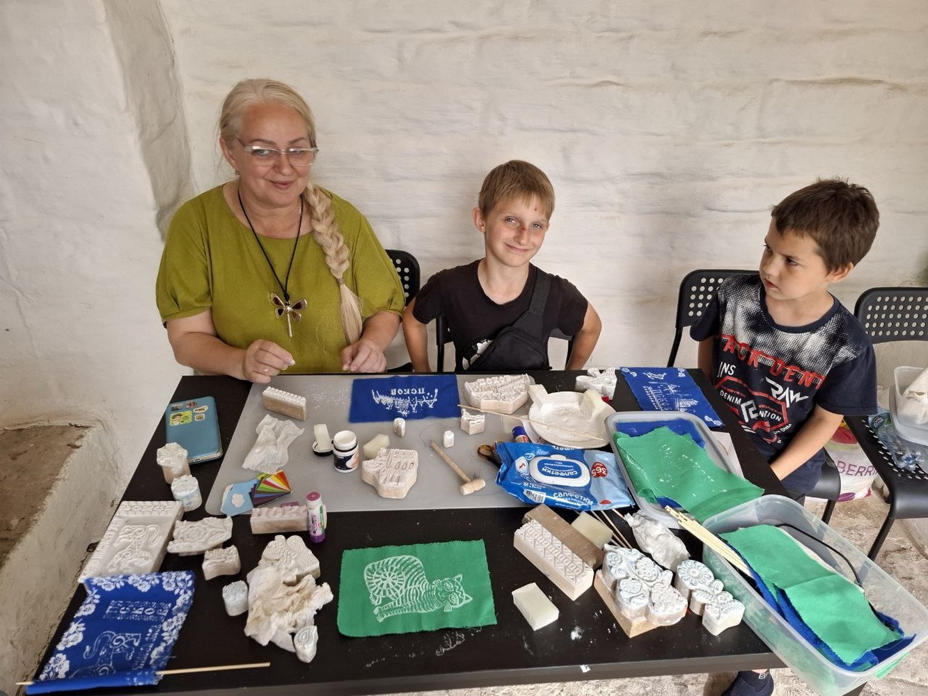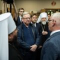 Затем Святейший Патриарх Московский и всея Руси Кирилл в сопровождении митрополита Псковского и Порховского Матфея и В.И. Ресина спустился в нижний храм в честь блаженной Ксении Петербургской, где народный художник Российской Федерации В.И. Нестеренко представил проект мозаичного убранства храма и уже исполненные мозаики.