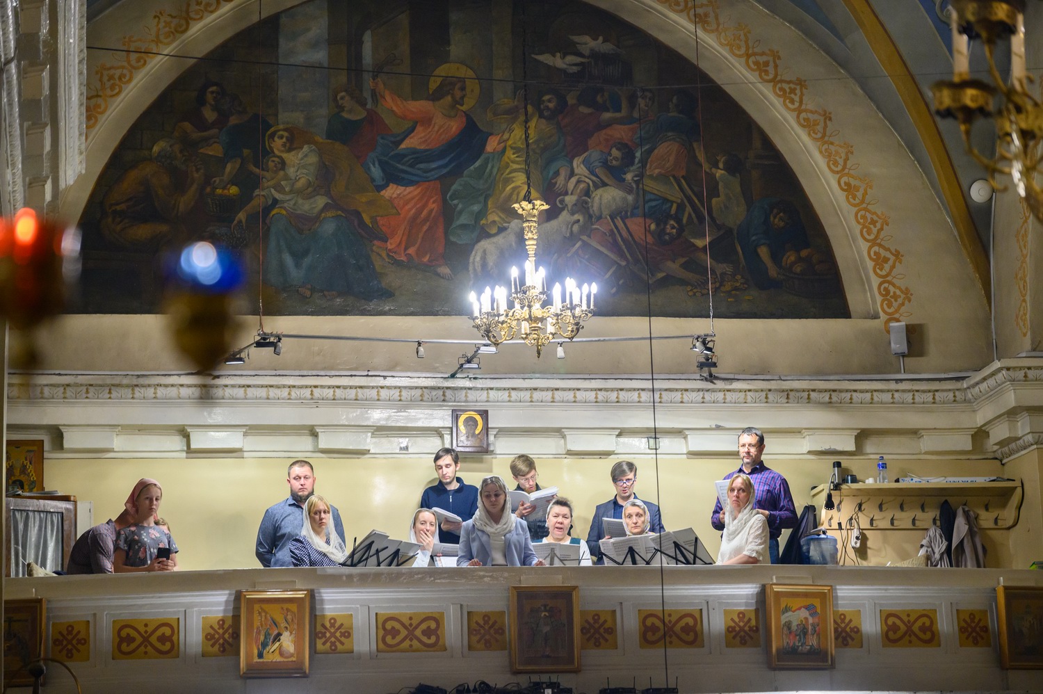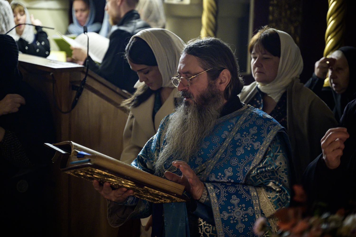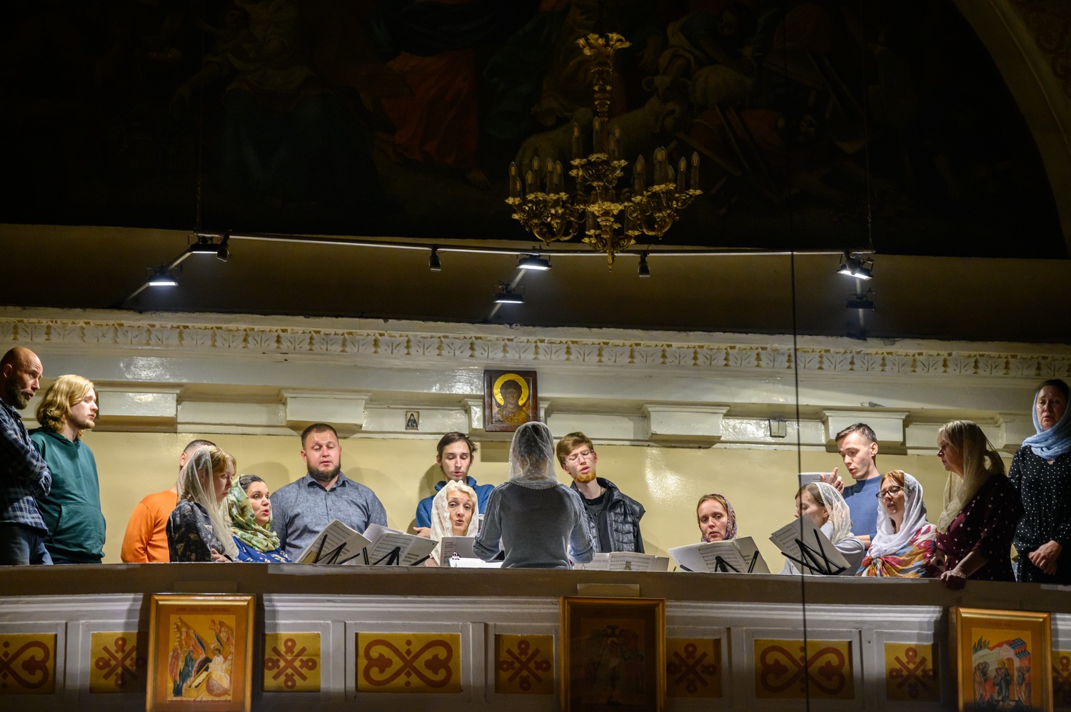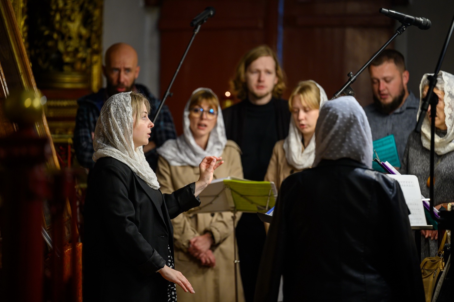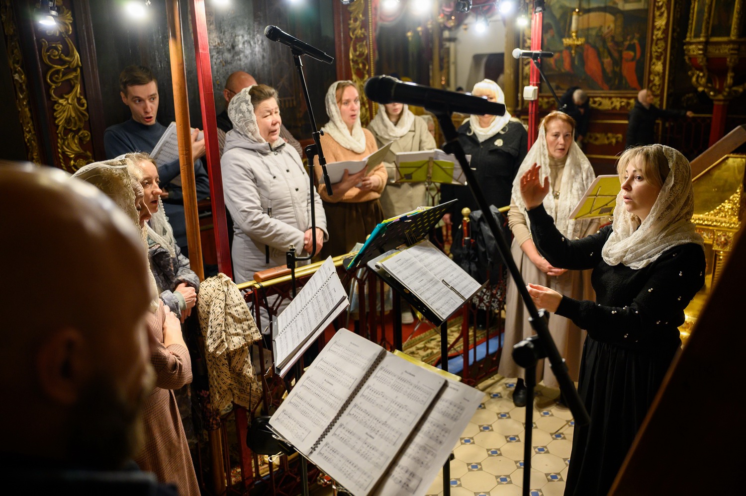 Богослужебные песнопения исполнил хор храма Живоначальной Троицы в усадьбе Свиблово г. Москвы под управлением М.А. Герего. Патриаршее богослужение транслировалось в прямом эфире телеканалов «Союз» и «Спас», а также на официальном сайте Русской Православной Церкви Патриархия.ру.