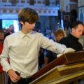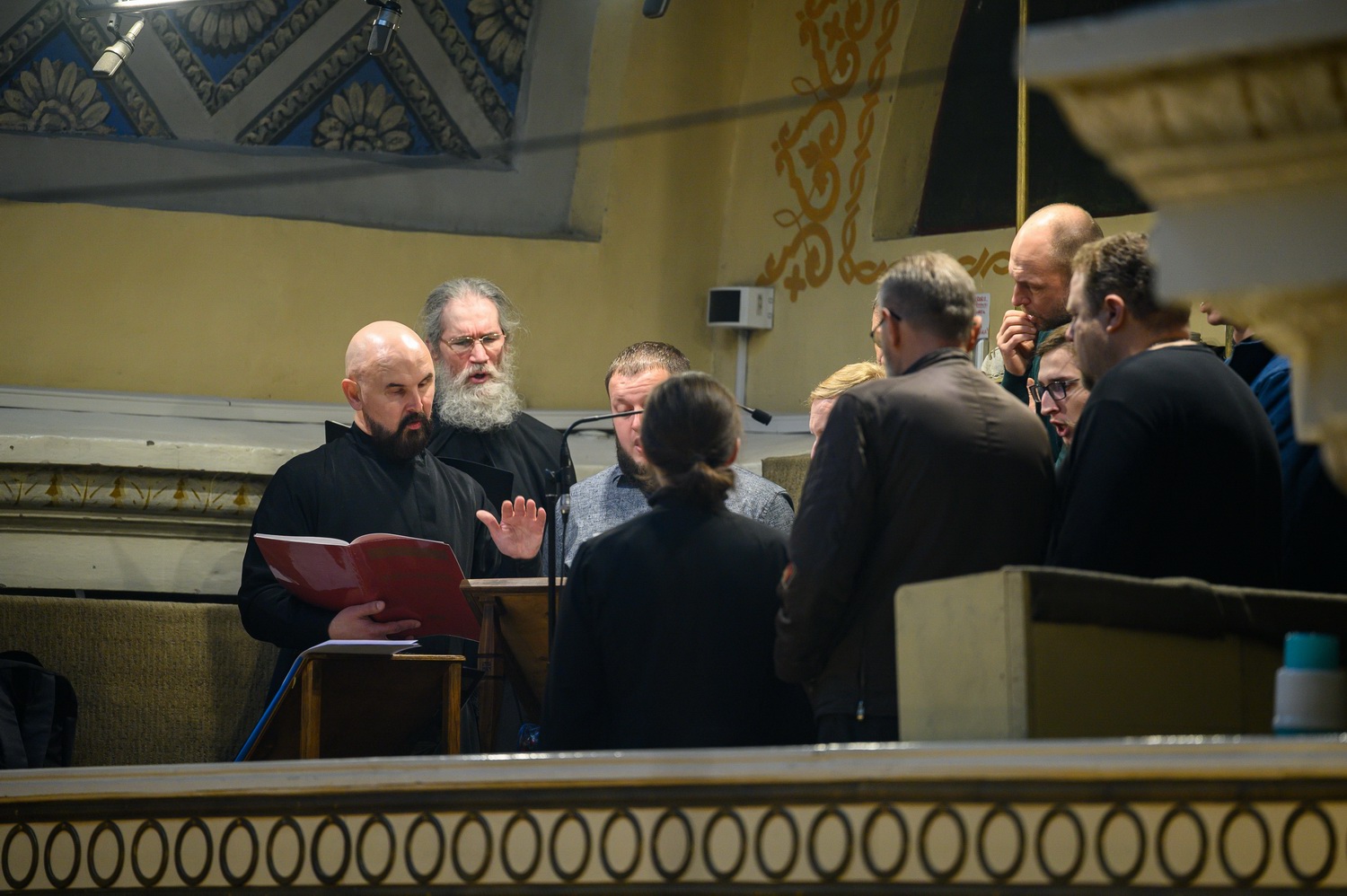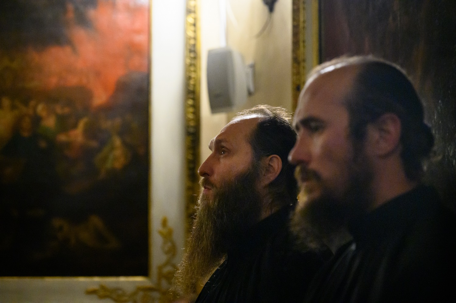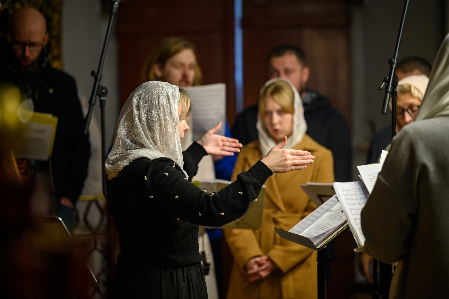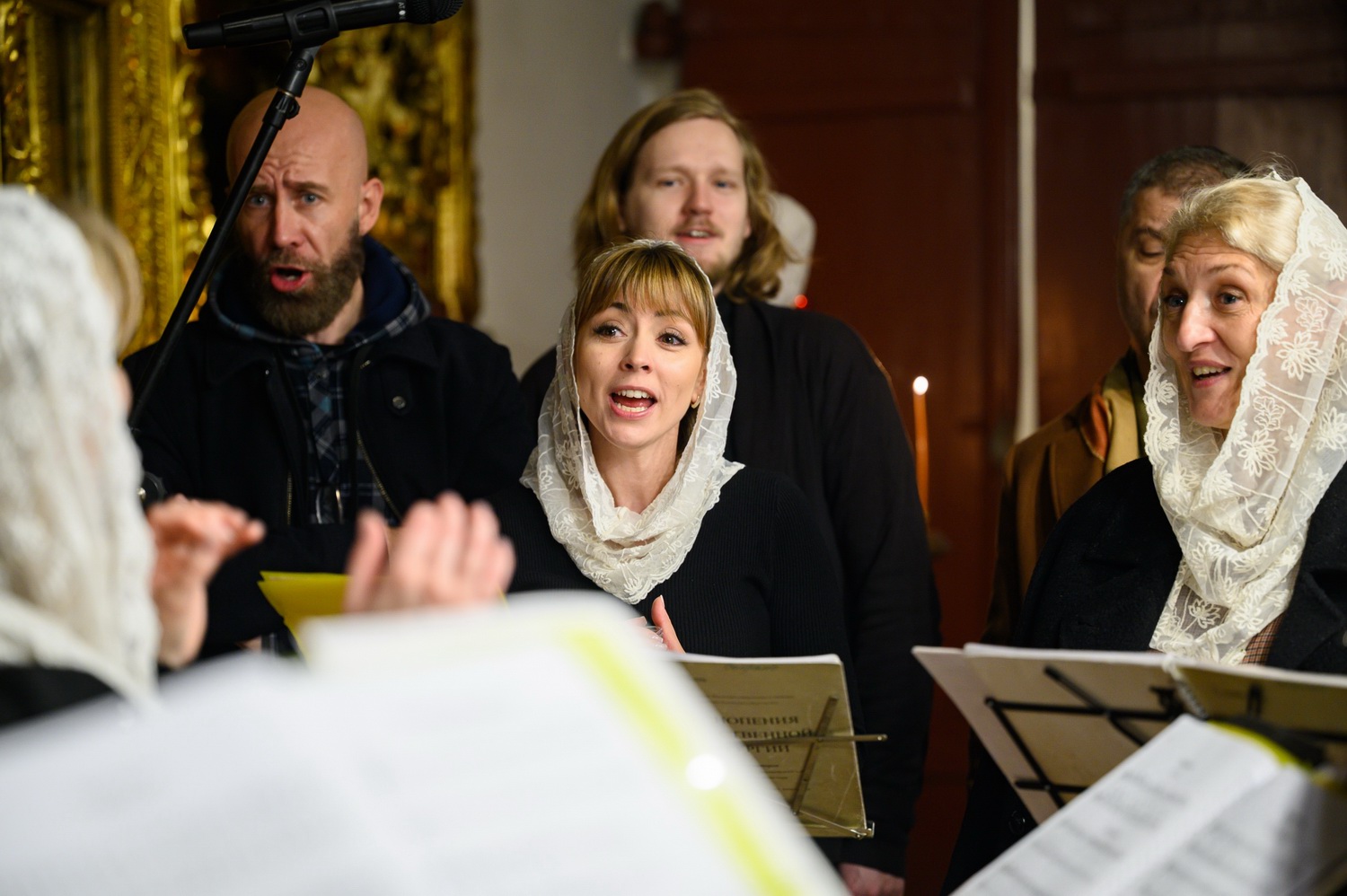 Богослужебные песнопения исполнил хор храма Живоначальной Троицы в усадьбе Свиблово г. Москвы под управлением М.А. Герего. Патриаршее богослужение транслировалось в прямом эфире телеканалов «Союз» и «Спас», а также на официальном сайте Русской Православной Церкви Патриархия.ру.