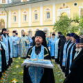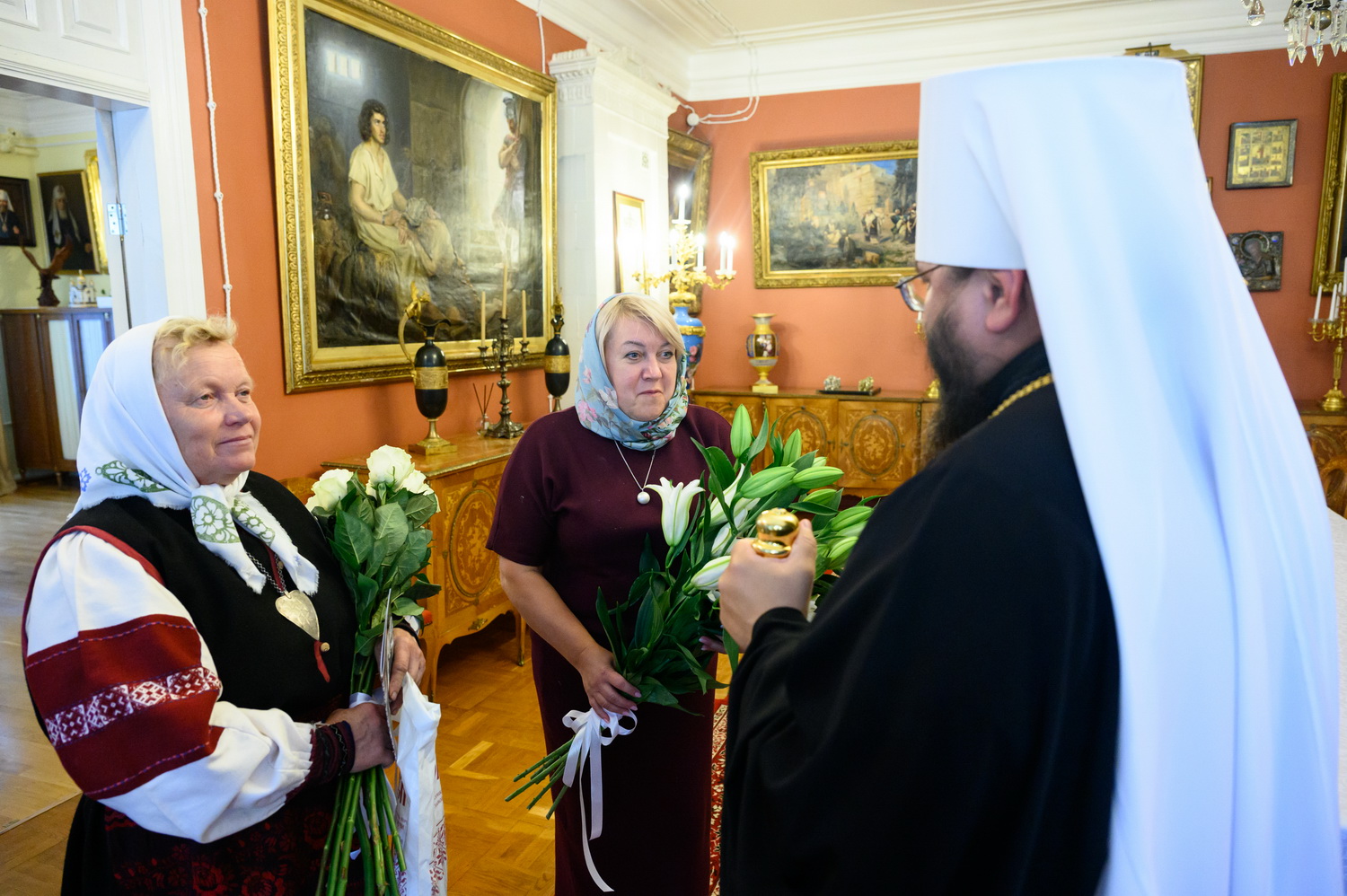 По окончании Литургии главу митрополии с днем его небесного покровителя от лица духовенства поздравил секретарь Псковского епархиального управления протоиерей Андрей Вахрушев и зачитал поздравительный адрес. В дар дорогому Владыке митрополиту клирики епархии преподнесли портрет архимандрита Наума (Байбородина), под чьим духовным руководством Владыка начинал свой монашеский путь.