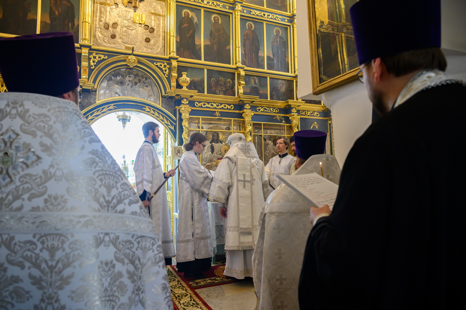 Песнопения Литургии исполнил Архиерейский хор под управлением Марии Быковой. За богослужением молились: митрополит Евсевий (Саввин), игумении женских монастырей с сестрами обителей, прихожане кафедрального собора и многочисленные паломники.