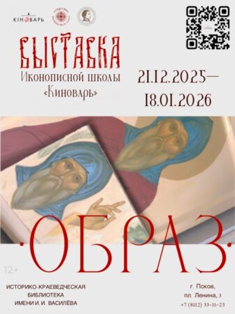 21 декабря 2025 года в историко-краеведческой библиотеке им. И.И. Василёва в рамках проекта «Свет Рождества» состоялось открытие выставки «Образ» – работ учащихся иконописной школы «Киноварь» при храме святителя Василия Великого (на Горке) города Пскова. Открыла выставку руководитель иконописной школы матушка Надежда Прокопчук.