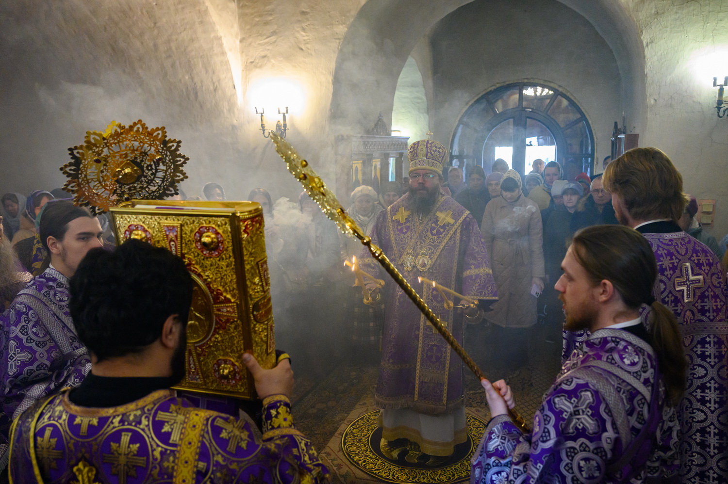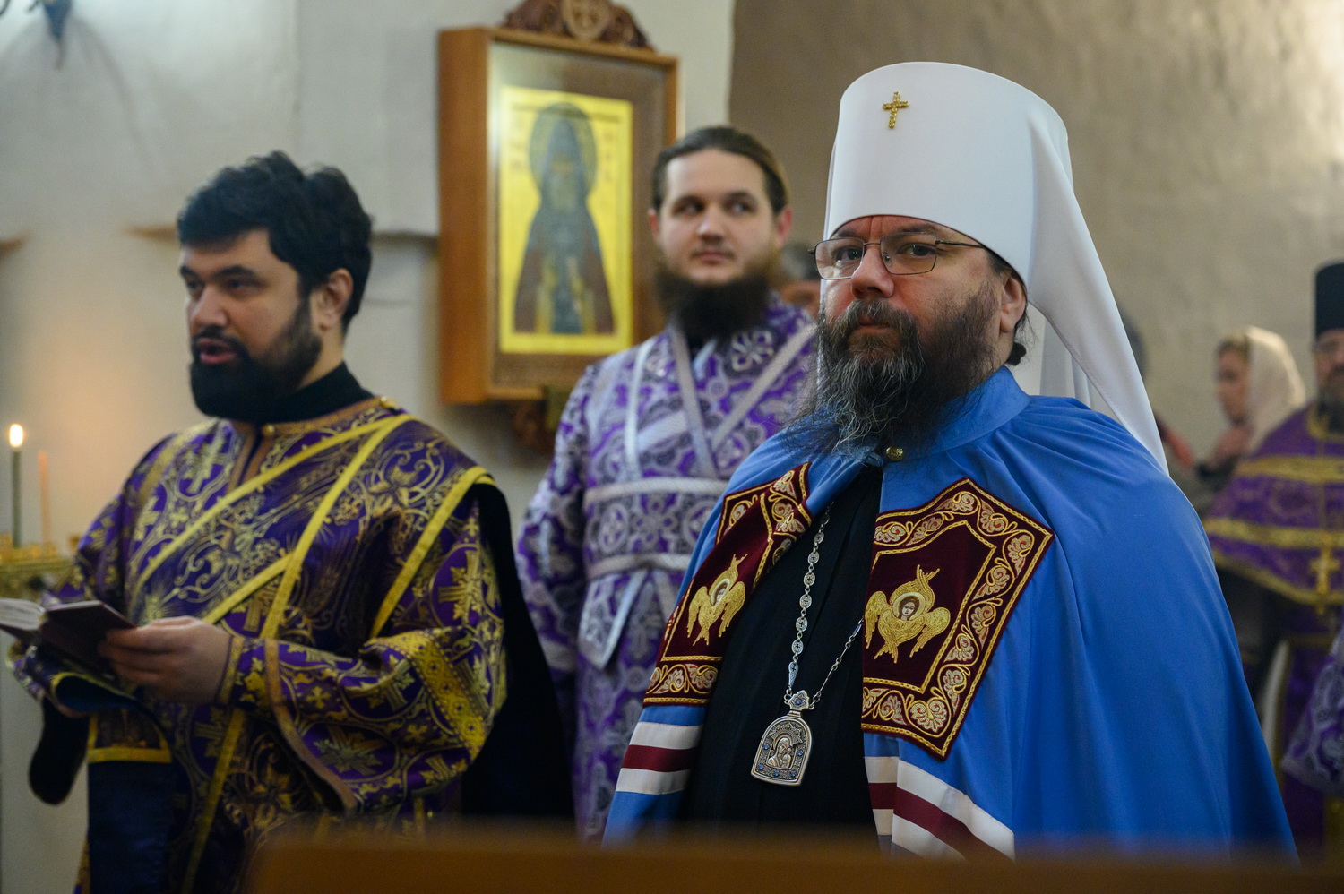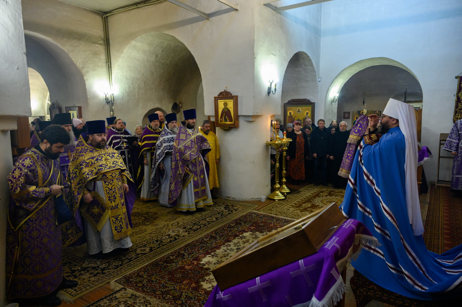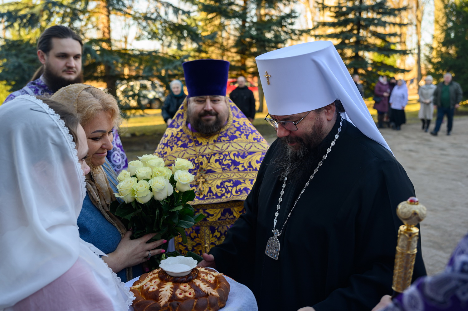 Всех вас, дорогие сестры, благодарю за то, что вы совершаете ежедневные молитвы. Это чувствуется. И земля наша особенная. Вот даже приносили мы икону Феодоровскую в конце января – сколько людей пришло! Холодно было, мороз 25 градусов, а пришло 15 тысяч человек, чтобы поклониться иконе. И ещё 5 тысяч в Великолукской епархии. То есть 20 тысяч человек пришло. В целом мы видим, что не всё потеряно, что вера в народе и живёт. Господь ради немногих, которые спасаются и идут деятельной жизнью, сохраняет всю нашу страну при всех её несовершенствах, грехах и пороках, которые есть. Поэтому ваша молитва имеет важное значение не только в вашей жизни и в ваших семьях, о которых вы молитесь, но и в судьбе страны нашей, которая также зависит от ежедневно совершаемой в монастырях молитвы. Поэтому всех вас призываю неленостно трудиться, между собой не ругаться, всем проявлять благодушие. И таким образом, через совершение добрых дел, молитву и покаяние Господь будет приближать нас к входу в Царство Небесное. Всех благодарим, помощи Божией! Спасибо за пение за монашеское такое спокойное, умиротворённое. Всех поздравляю с днём престольного торжества!