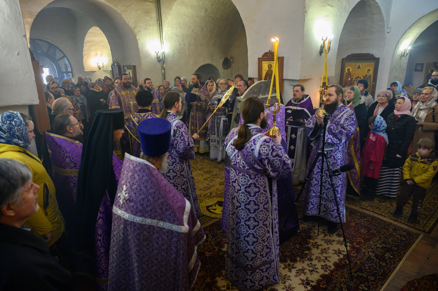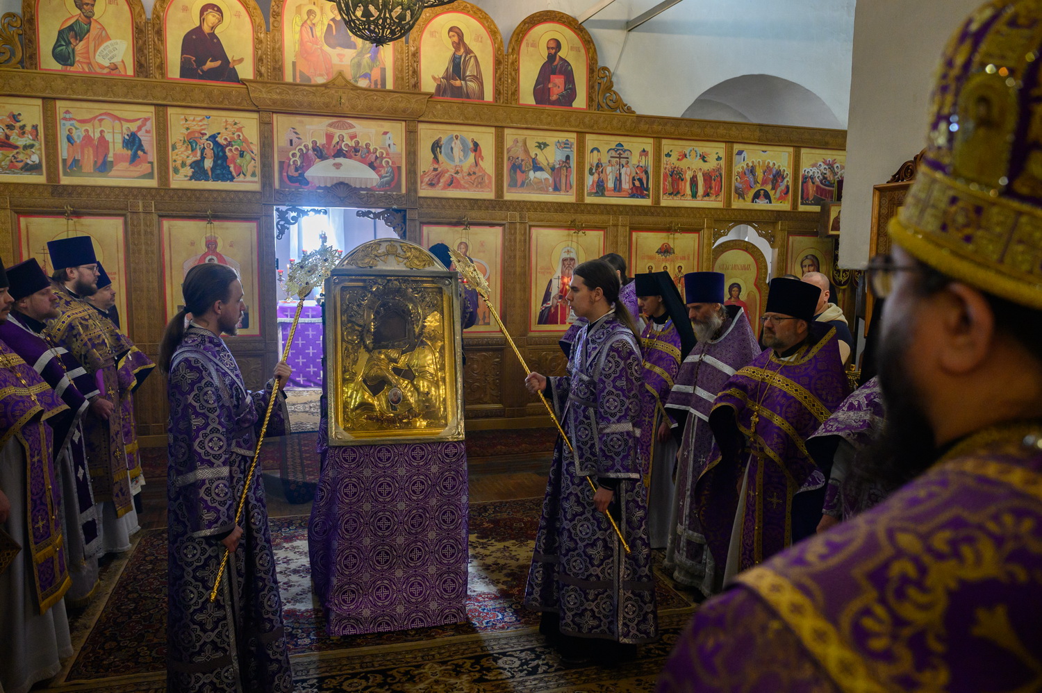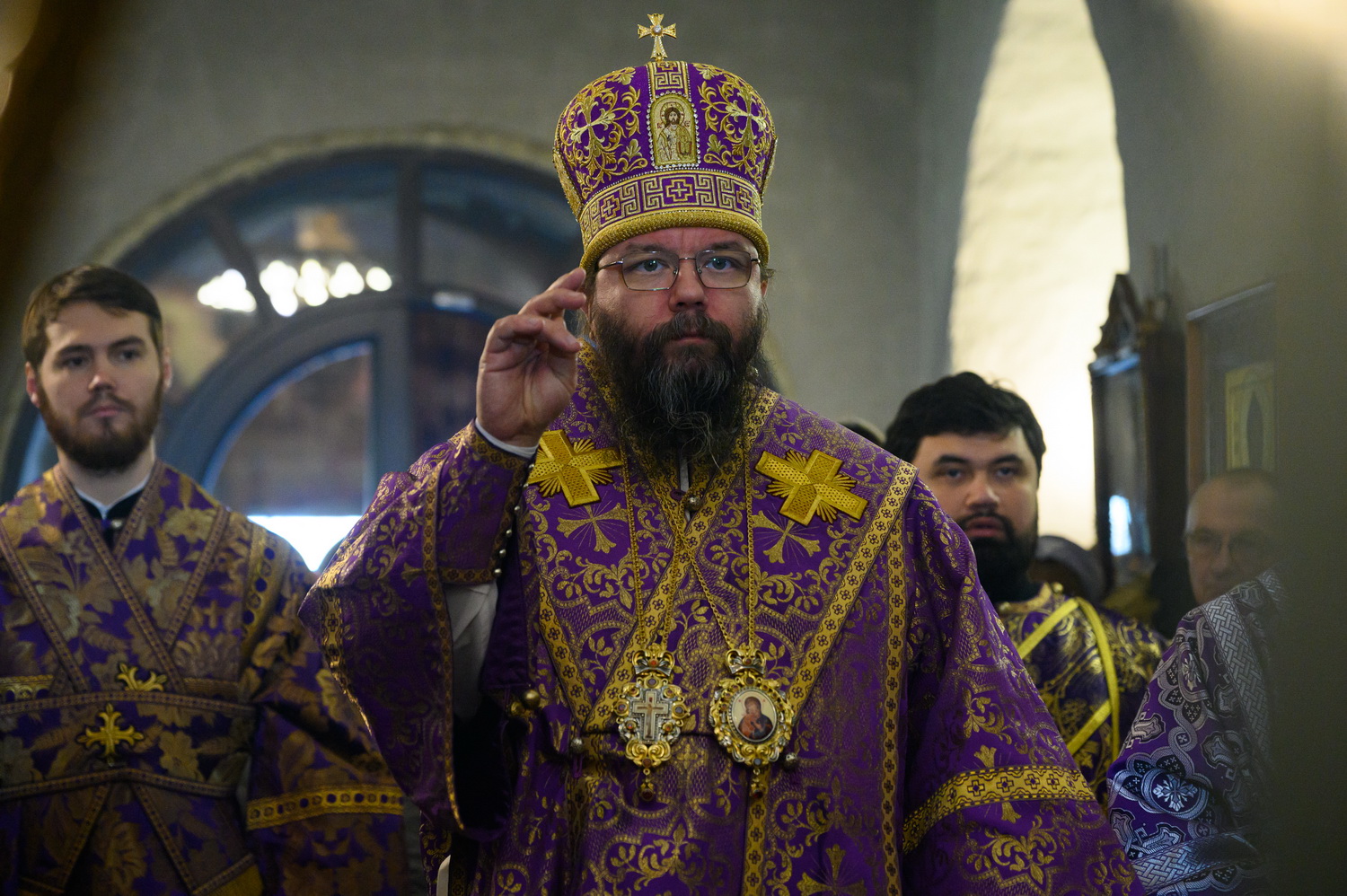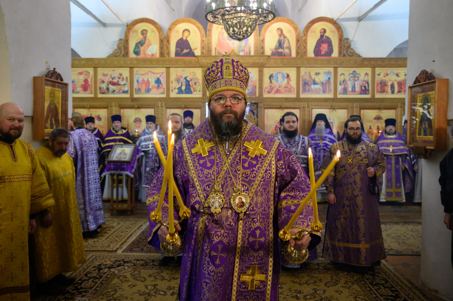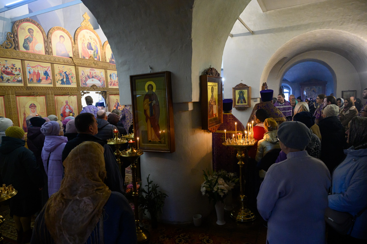 Всех вас, дорогие сестры, благодарю за то, что вы совершаете ежедневные молитвы. Это чувствуется. И земля наша особенная. Вот даже приносили мы икону Феодоровскую в конце января – сколько людей пришло! Холодно было, мороз 25 градусов, а пришло 15 тысяч человек, чтобы поклониться иконе. И ещё 5 тысяч в Великолукской епархии. То есть 20 тысяч человек пришло. В целом мы видим, что не всё потеряно, что вера в народе и живёт. Господь ради немногих, которые спасаются и идут деятельной жизнью, сохраняет всю нашу страну при всех её несовершенствах, грехах и пороках, которые есть. Поэтому ваша молитва имеет важное значение не только в вашей жизни и в ваших семьях, о которых вы молитесь, но и в судьбе страны нашей, которая также зависит от ежедневно совершаемой в монастырях молитвы. Поэтому всех вас призываю неленостно трудиться, между собой не ругаться, всем проявлять благодушие. И таким образом, через совершение добрых дел, молитву и покаяние Господь будет приближать нас к входу в Царство Небесное. Всех благодарим, помощи Божией! Спасибо за пение за монашеское такое спокойное, умиротворённое. Всех поздравляю с днём престольного торжества!