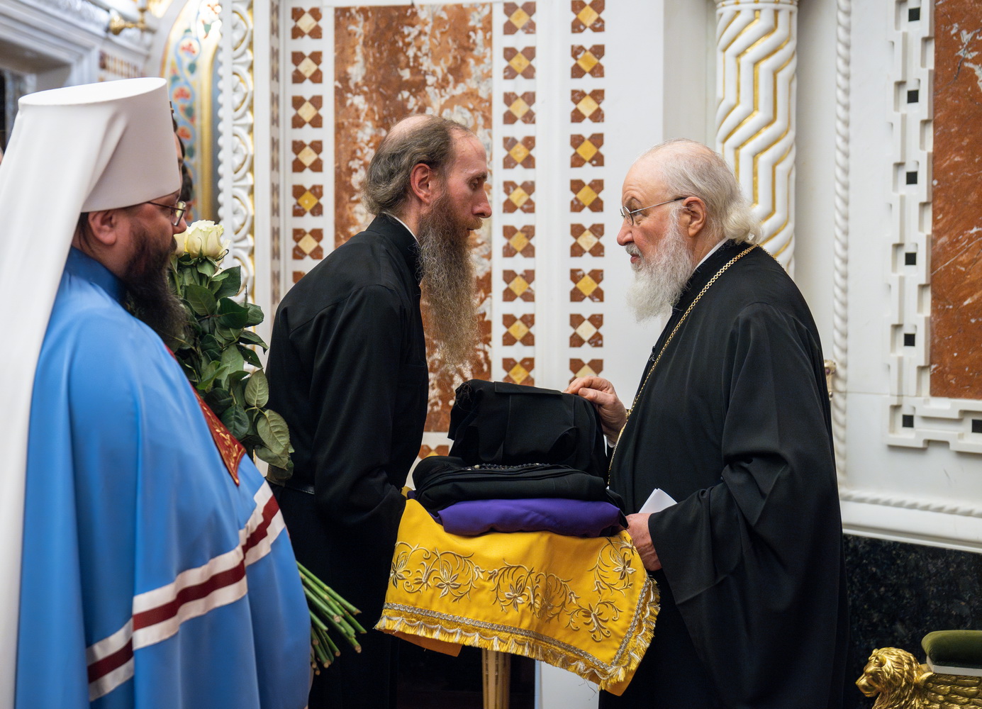 За богослужением была совершена хиротония архимандрита Варнавы (Снытко), клирика Великолукской епархии, во епископа Великолукского и Невельского. Новорукоположенный иерарх, избранный к епископскому служению решением Священного Синода от 30 октября 2025 г. (журнал № 91), стал правящим архиереем Великолукской епархии Псковской митрополии.