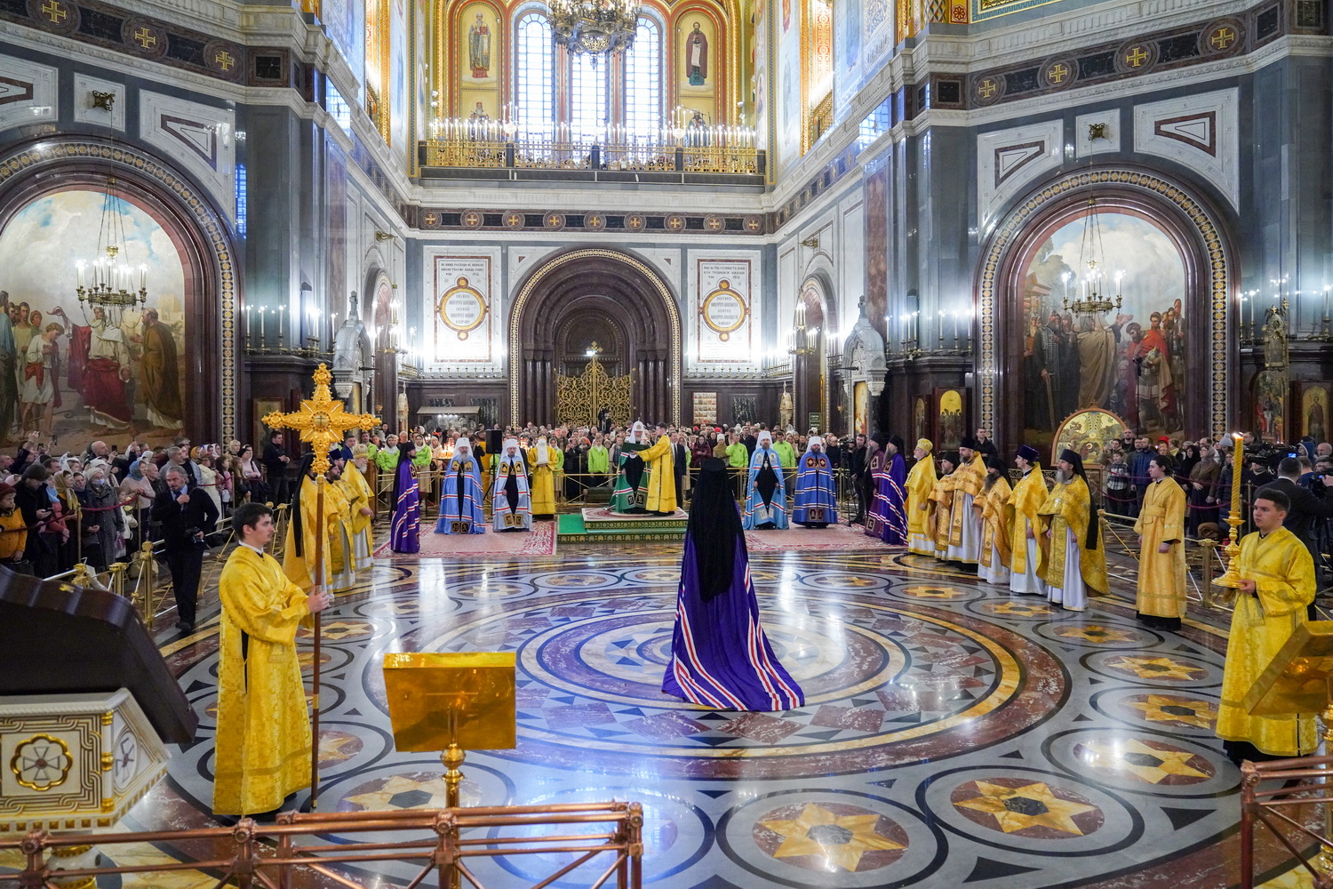 На сугубой ектении были вознесены особые прошения, Святейший Владыка прочитал молитву о Святой Руси. Проповедь перед причастием произнес иерей Илия Тягин, клирик храма святых апостолов Петра и Павла в Лефортове г. Москвы.