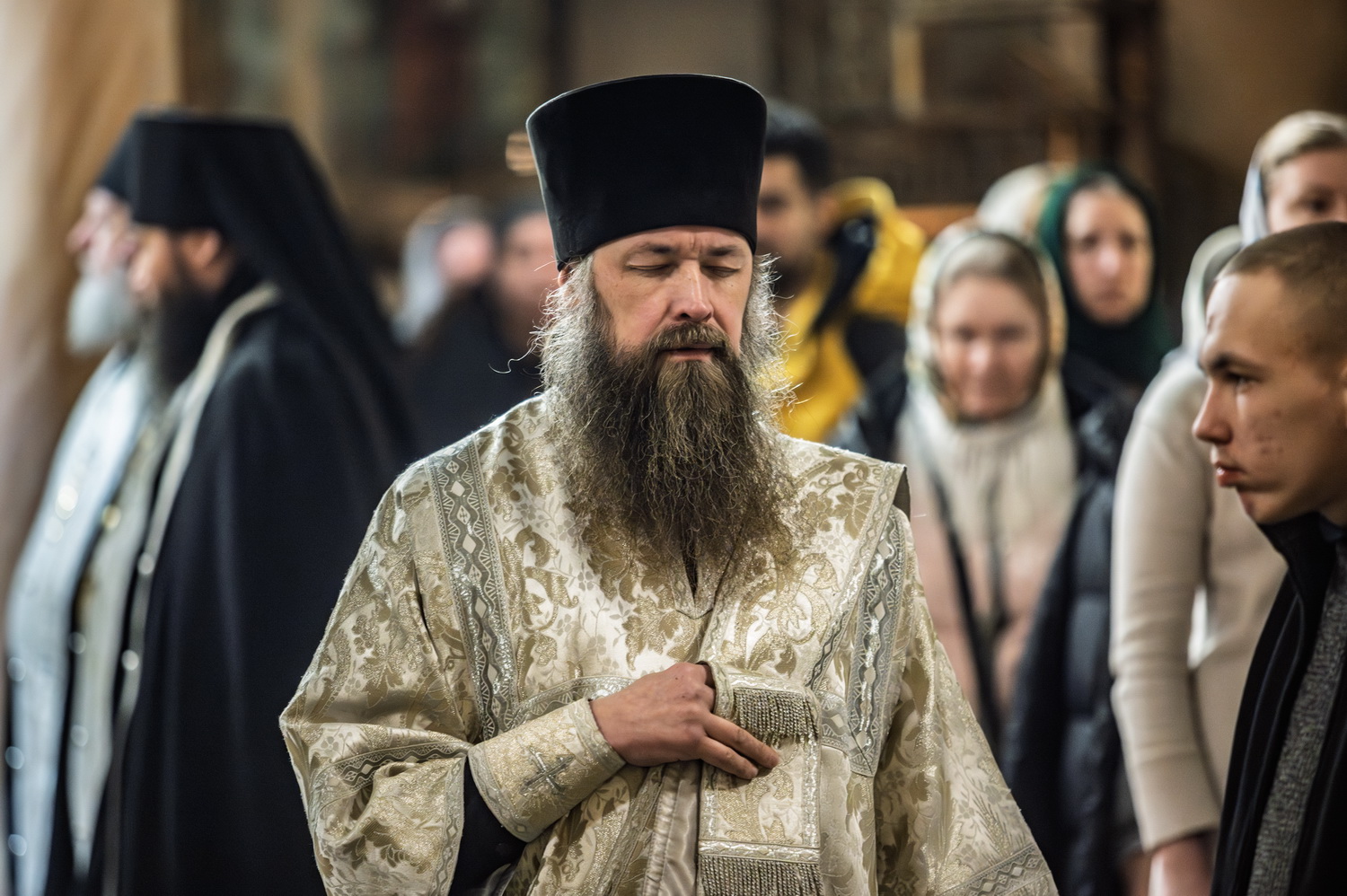 Перед началом богослужения митрополит Матфей вручил подрясники студентам начального курса Псково-Печерской духовной семинарии и совершил постриг во чтецы студентов четвертого, выпускного курса семинарии.
