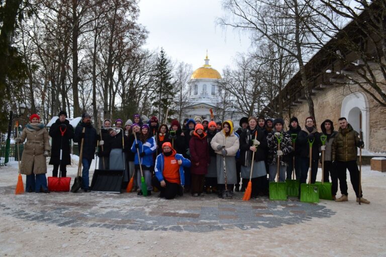 С 21 по 22 февраля 2026 года в Печорах студенческие отряды Псковской области трудом отпраздновали день основания движения Российских студенческих отрядов. В рамках акции «Ольгинский десант» участники расчищали от снега дороги и подходы к Святым вратам Свято-Успенского Псково-Печерского монастыря, убирали территорию у Никольского храма и